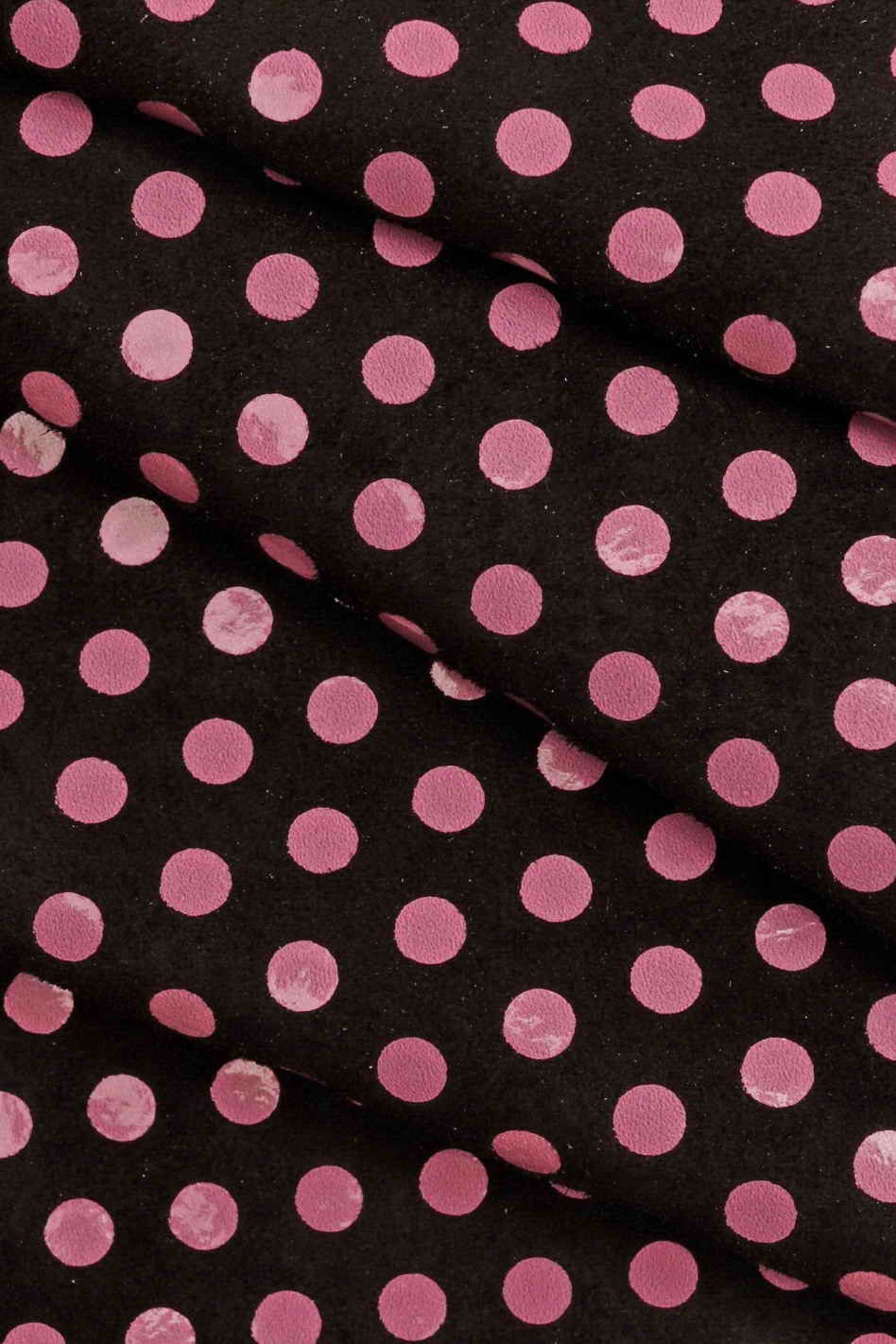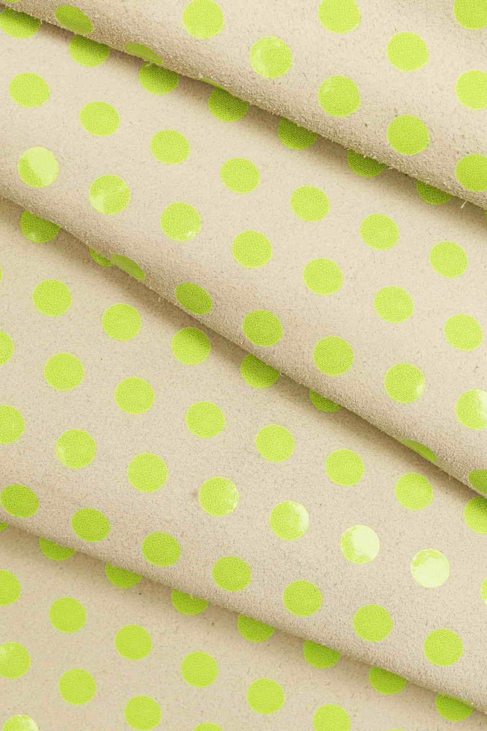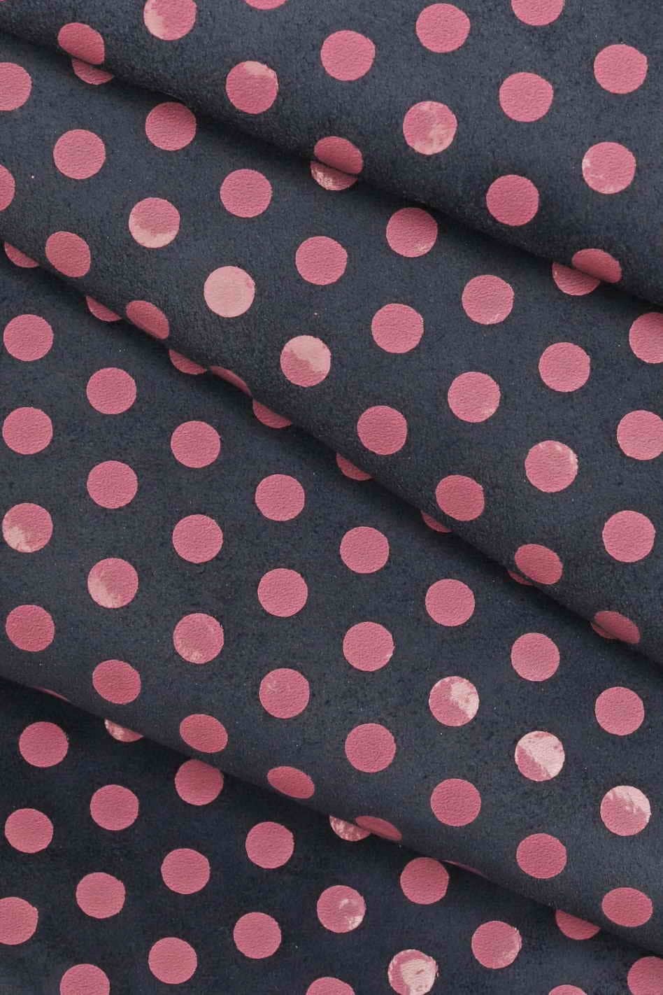 Italian leather, suede calf with polka dots print, bright, soft, sporty/distressed look, available in four colors combinations.