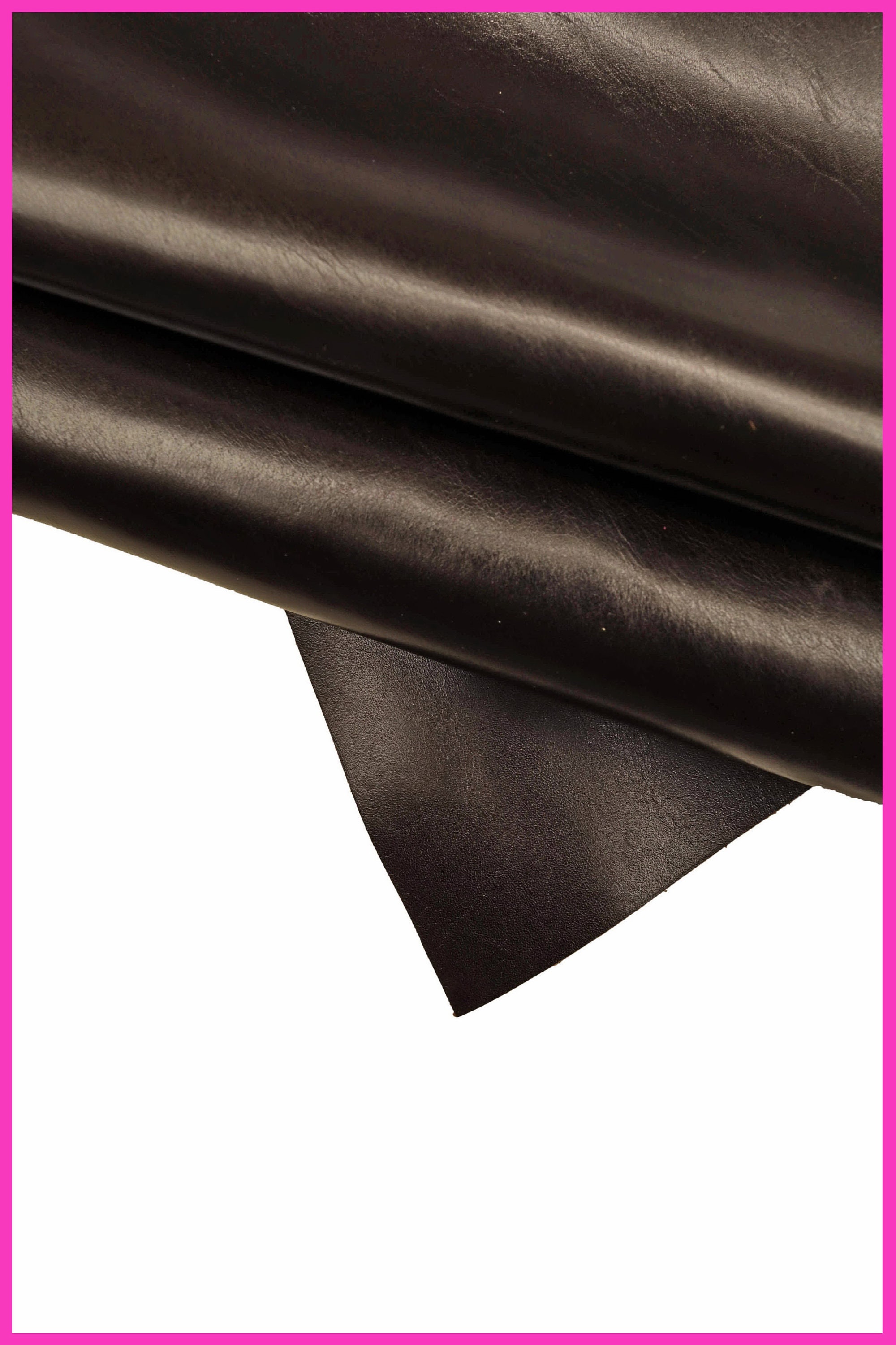 Beautiful dark brown leather hide, smooth, glossy, semi stiff calfskin, ideal for shoes, bags, wallets.