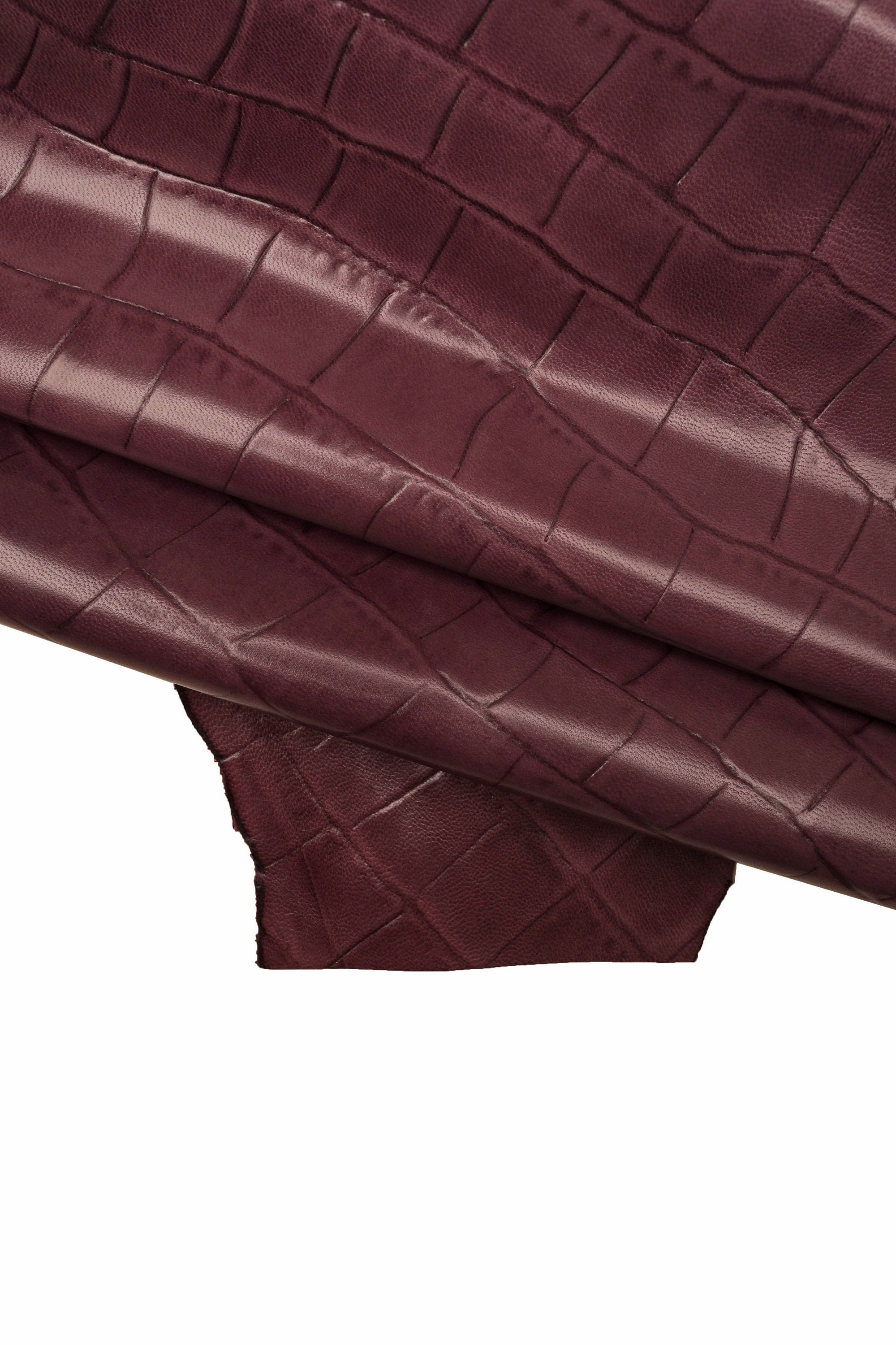 Fabulous purple goatskin with crocodile print, rigid.