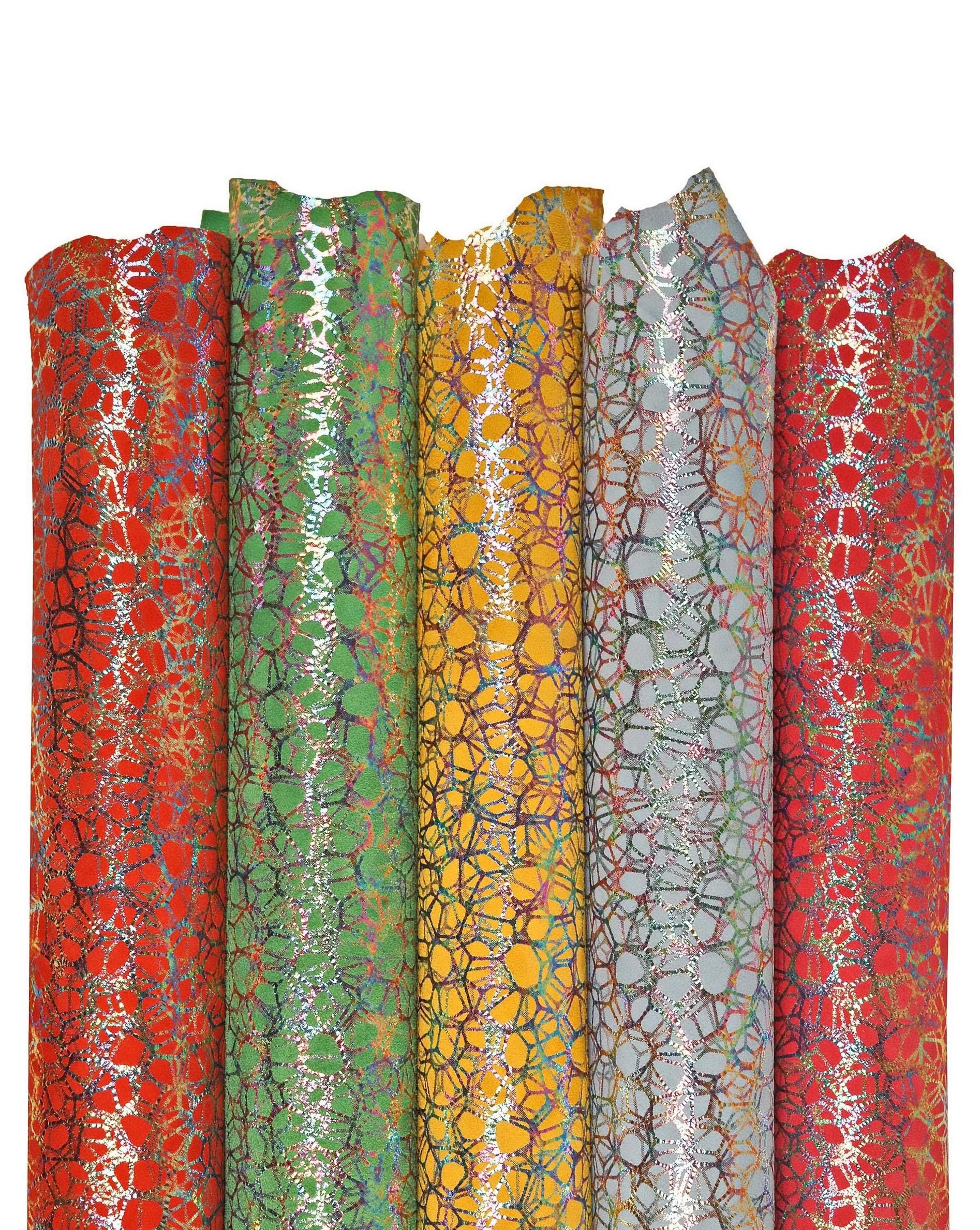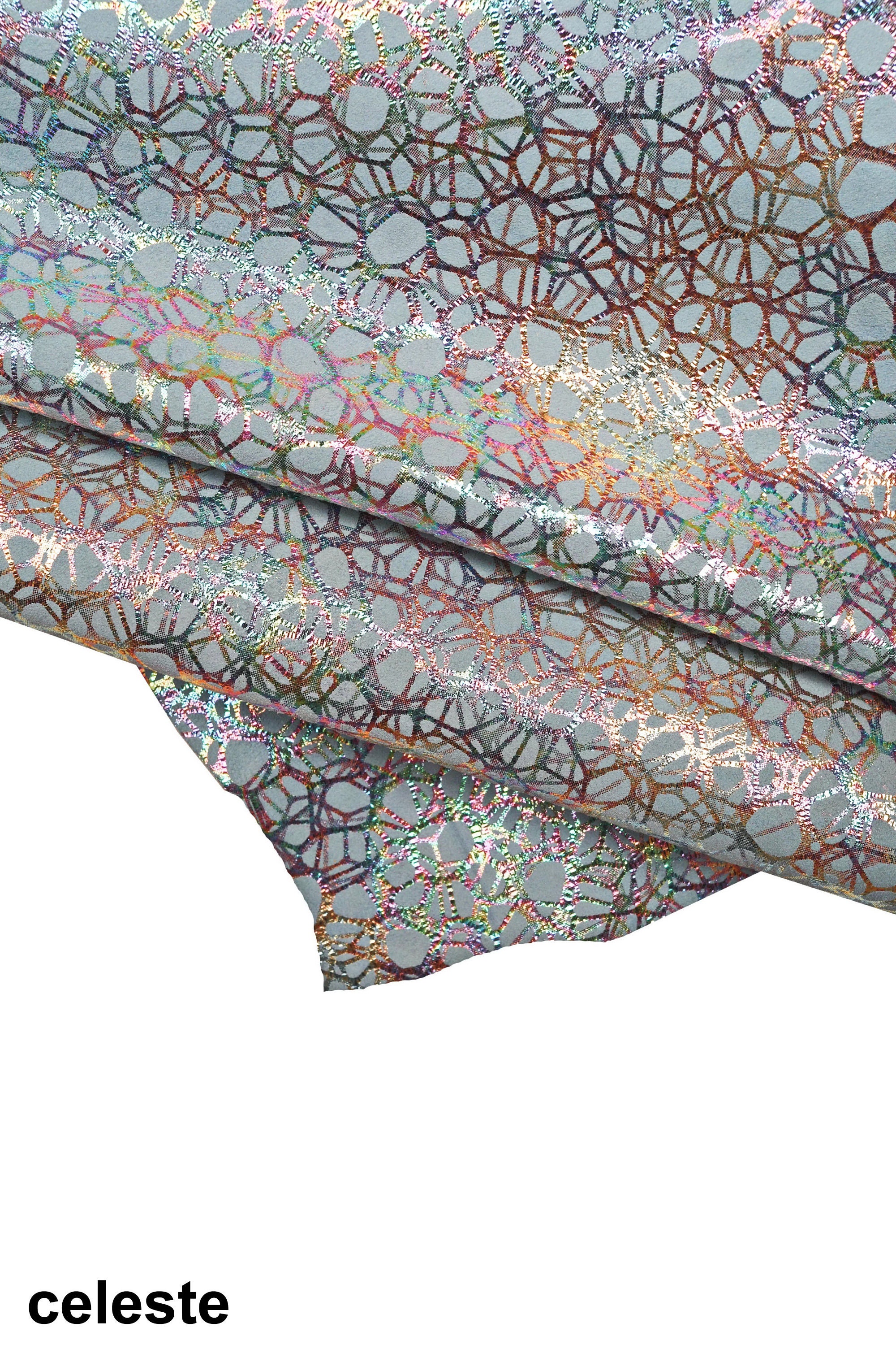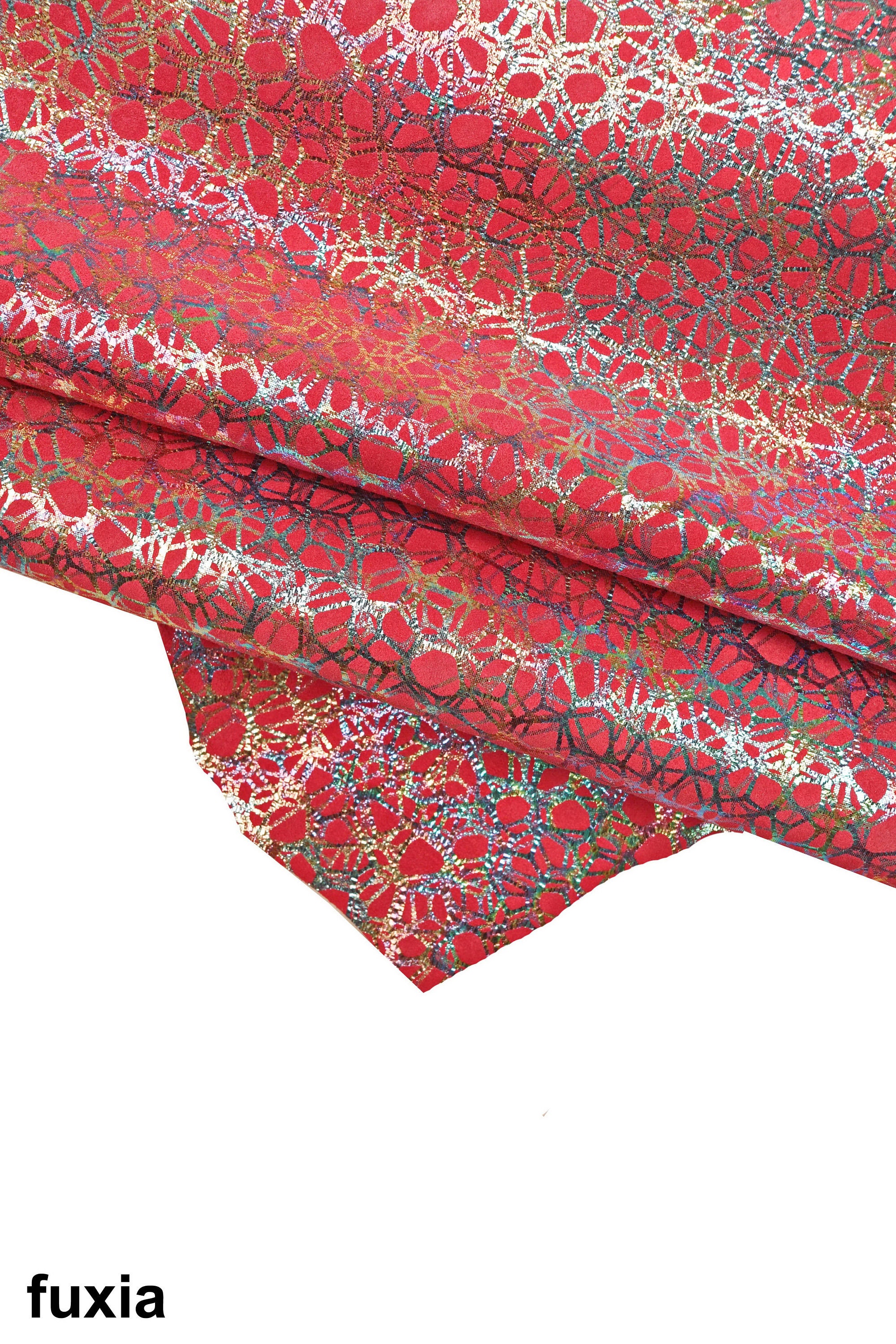 Fabulous iridescent printed leather skins, suede basis, available in five different colors, bright and soft leather skins.