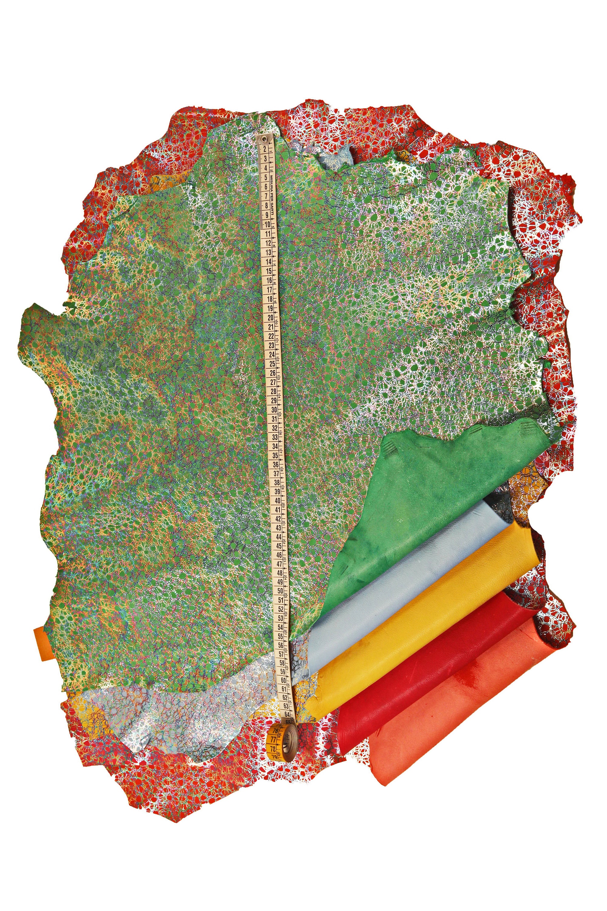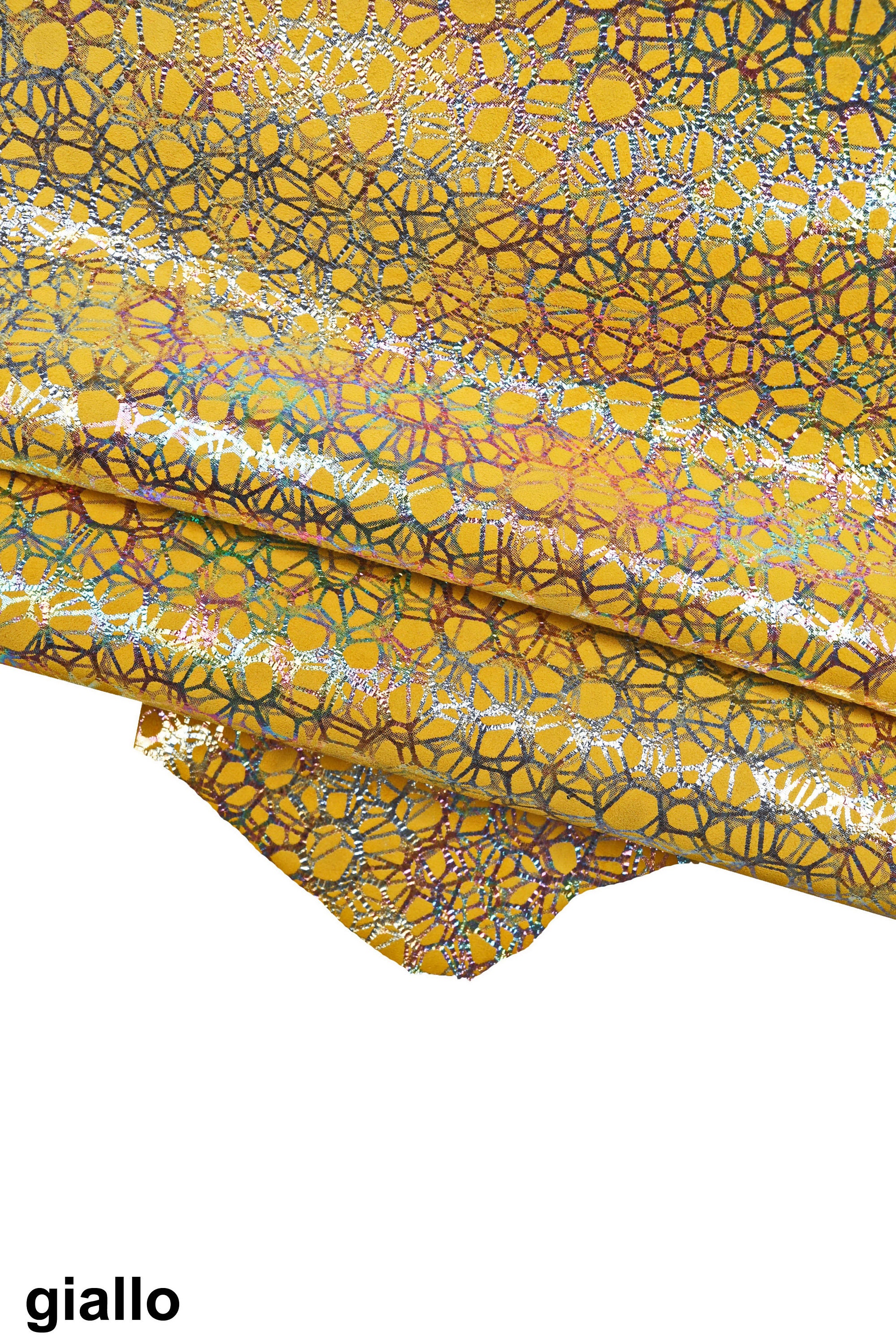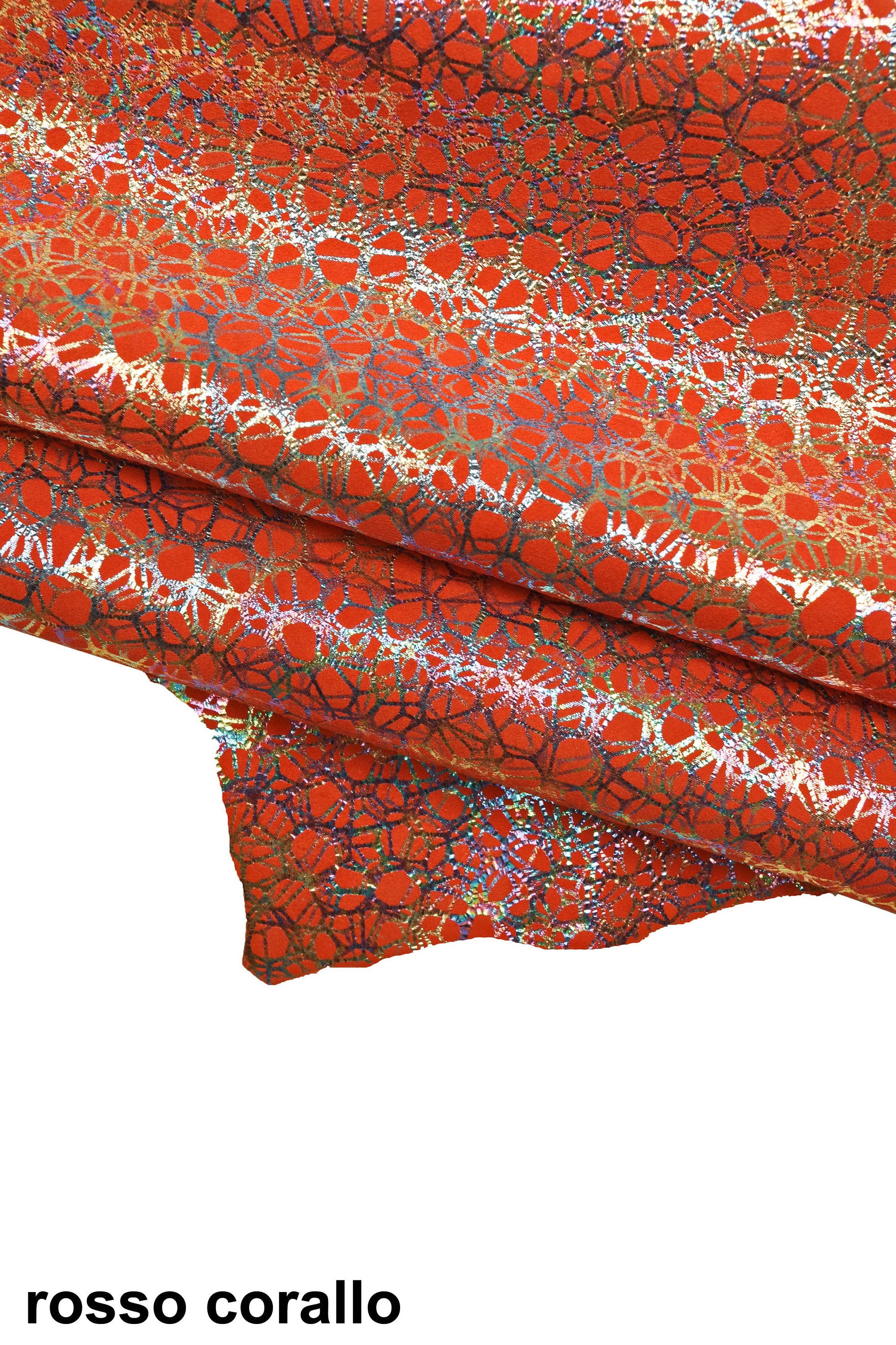 Fabulous iridescent printed leather skins, suede basis, available in five different colors, bright and soft leather skins.