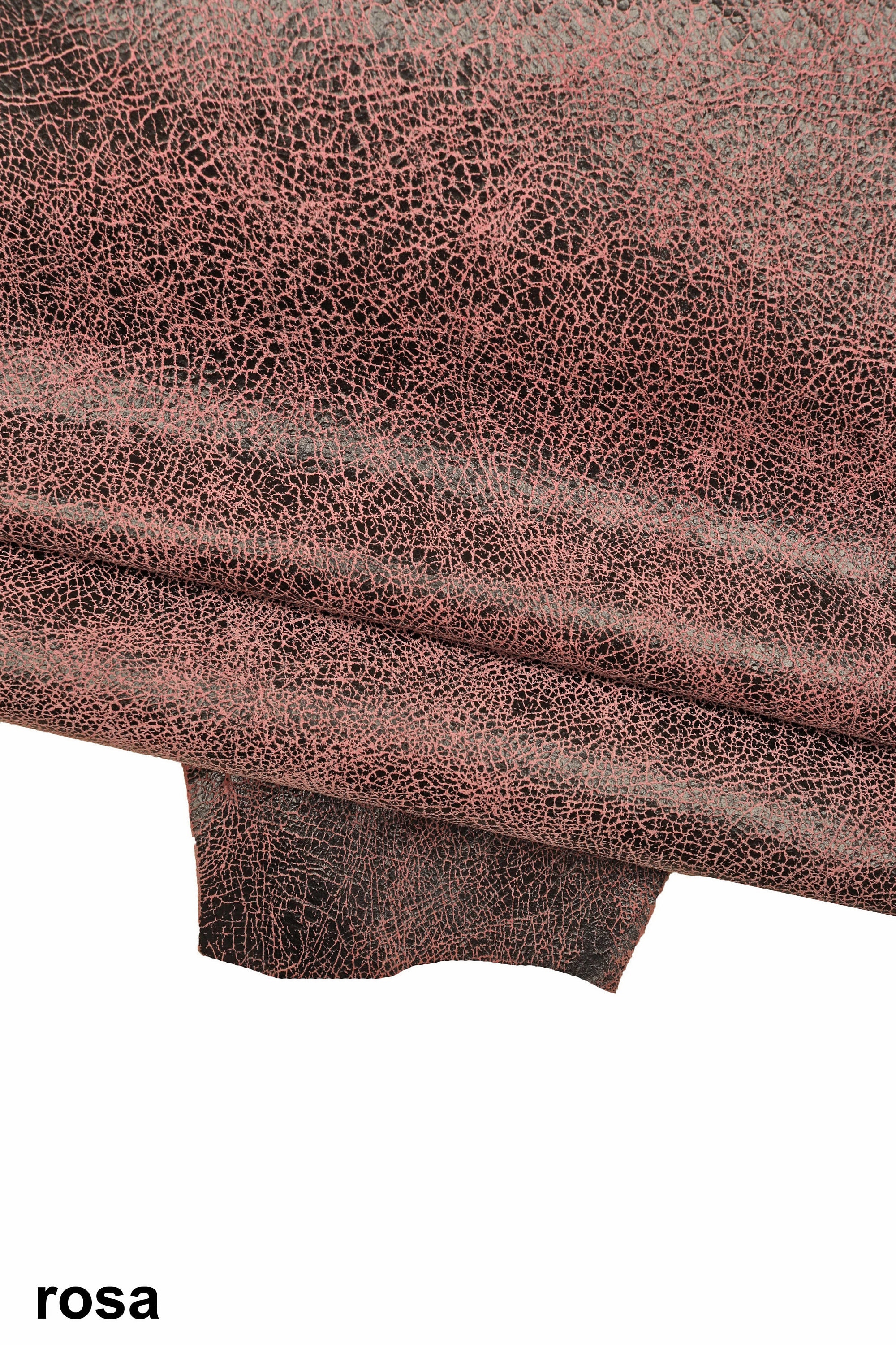 Particular brown, grey, pink suede goatskin with crackle print, soft, available in 3 colours.
