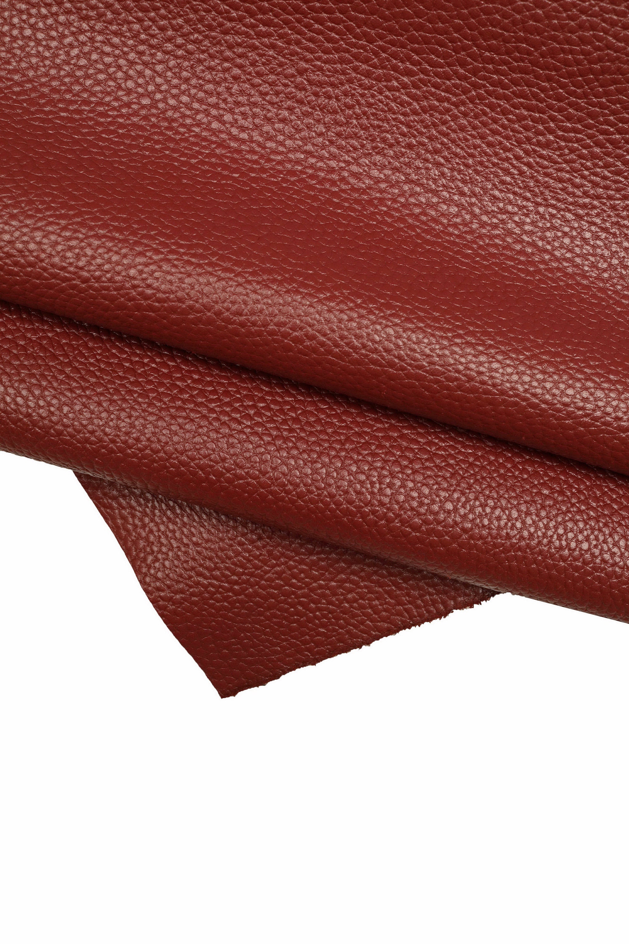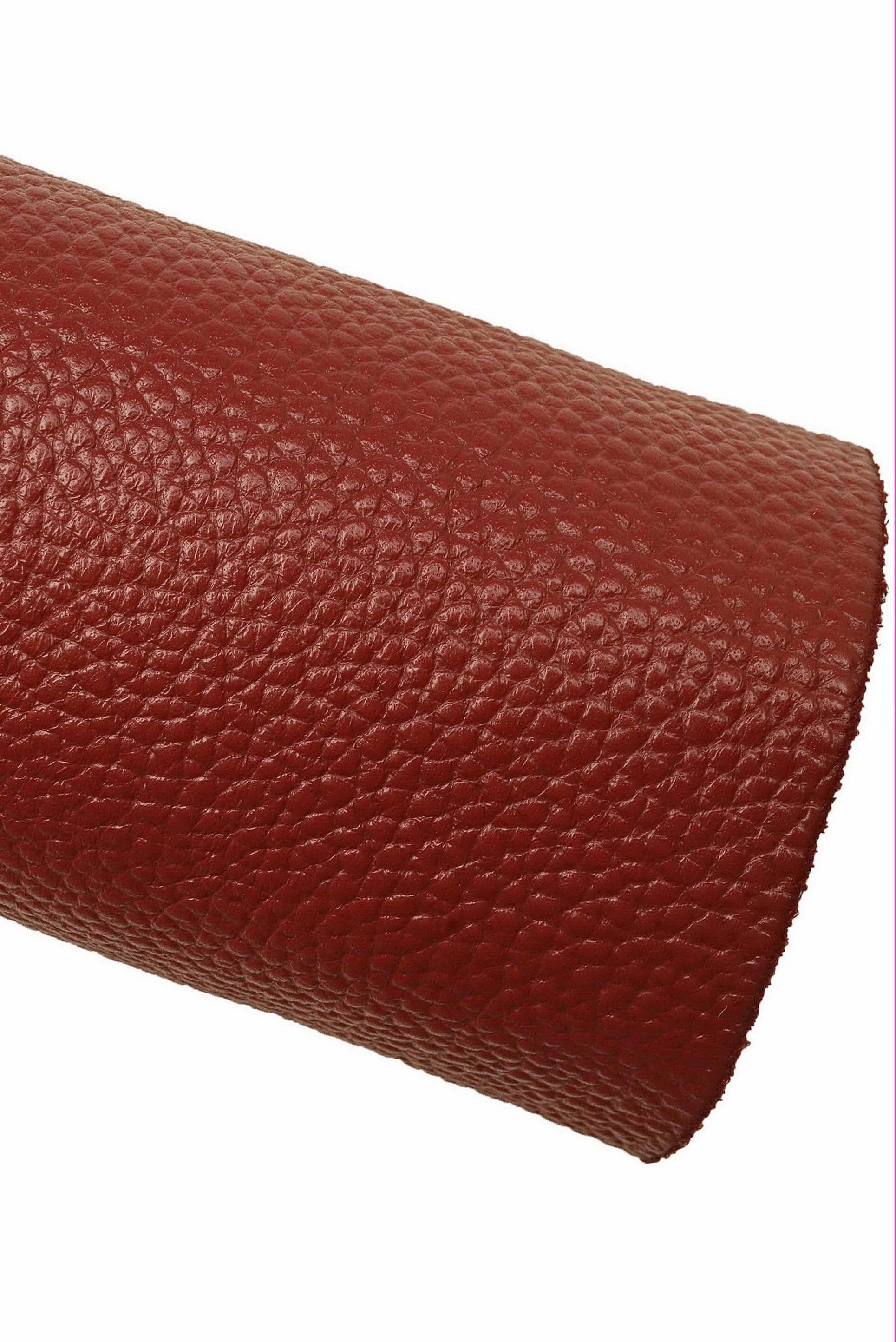Fabulous burgundy dollar pebble grain embossed calfskin, sporty, quite glossy and a little bit stiff.