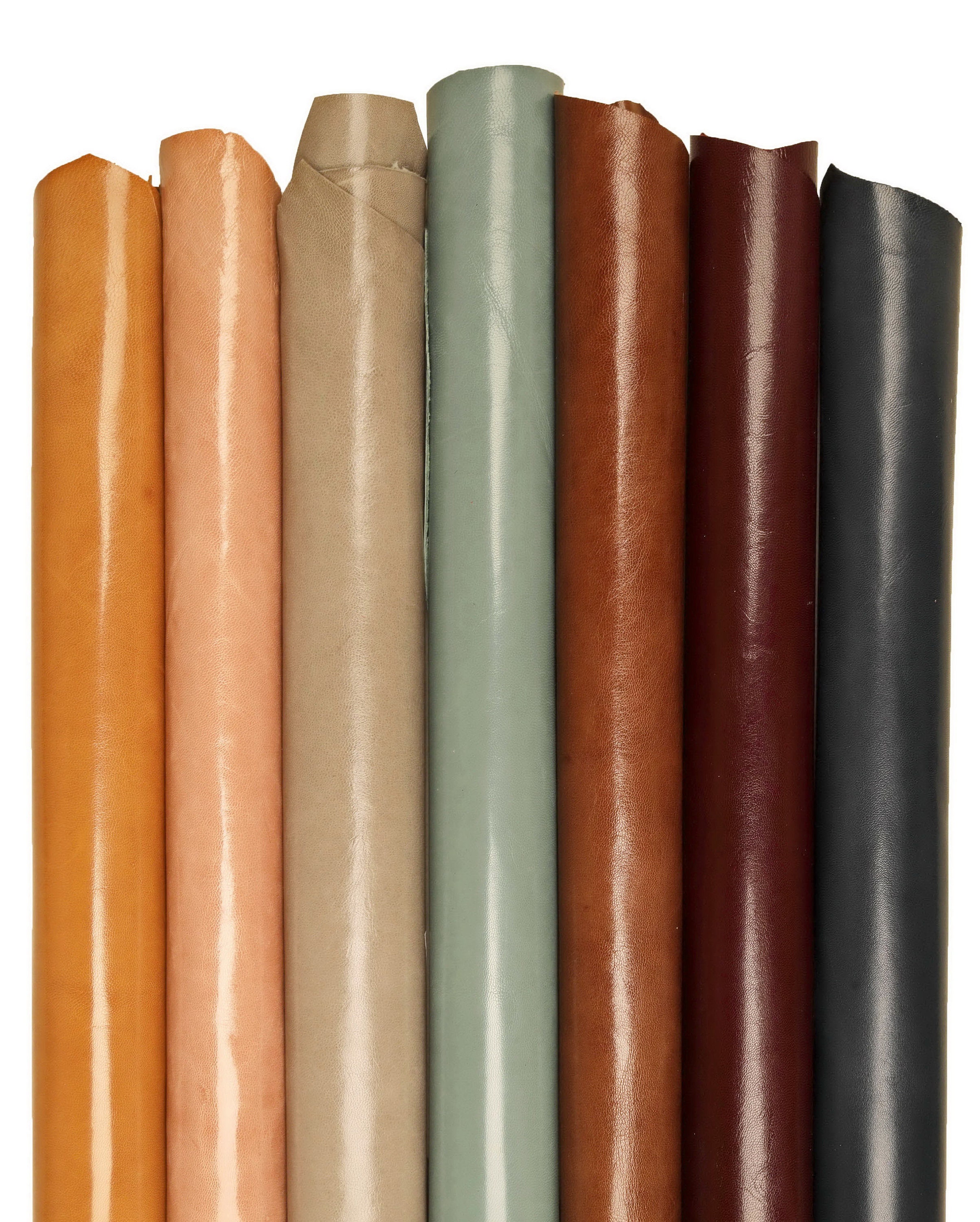 Fabulous random assortment of 5 or 7 solid color shiny goatskins.