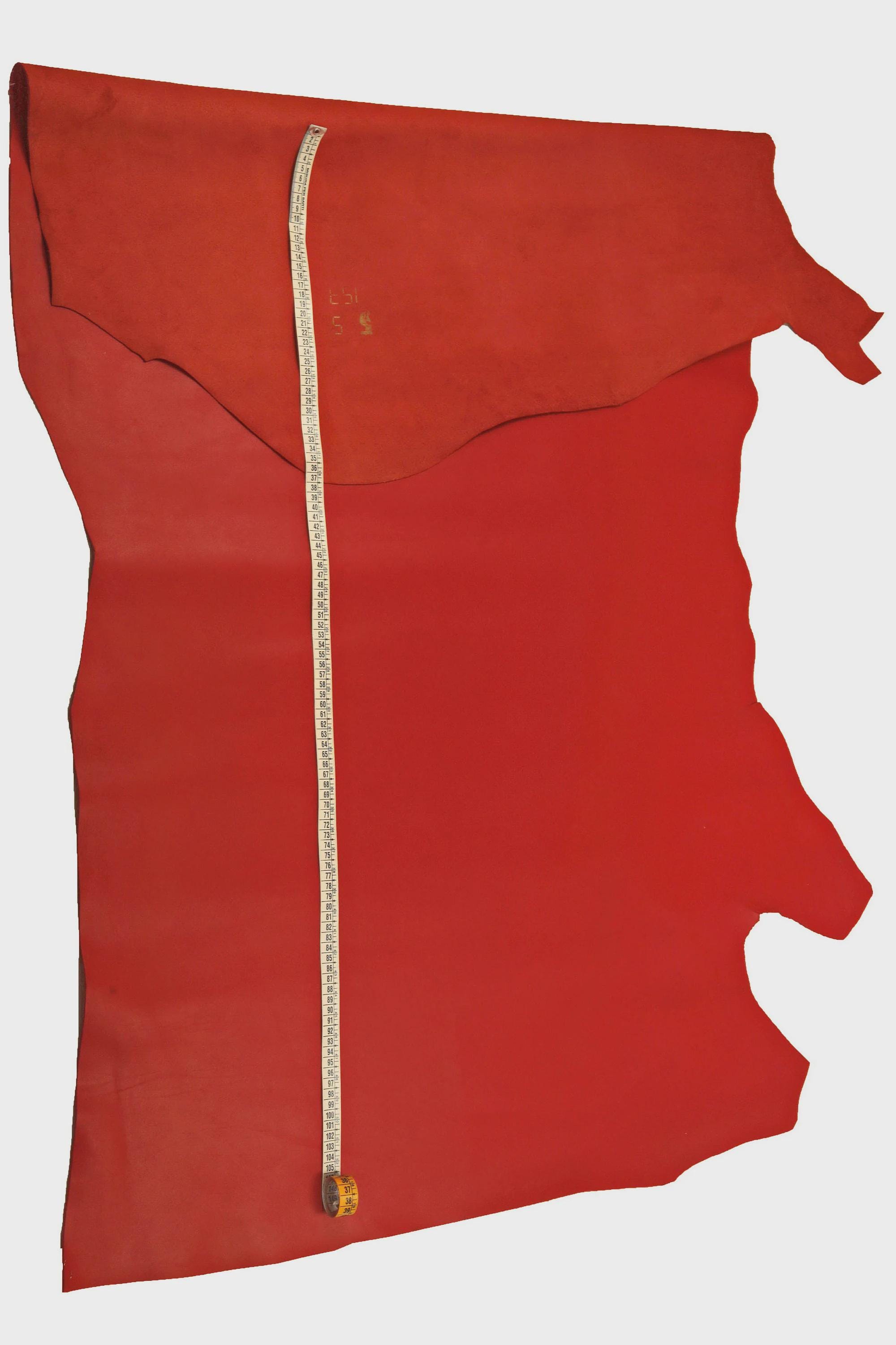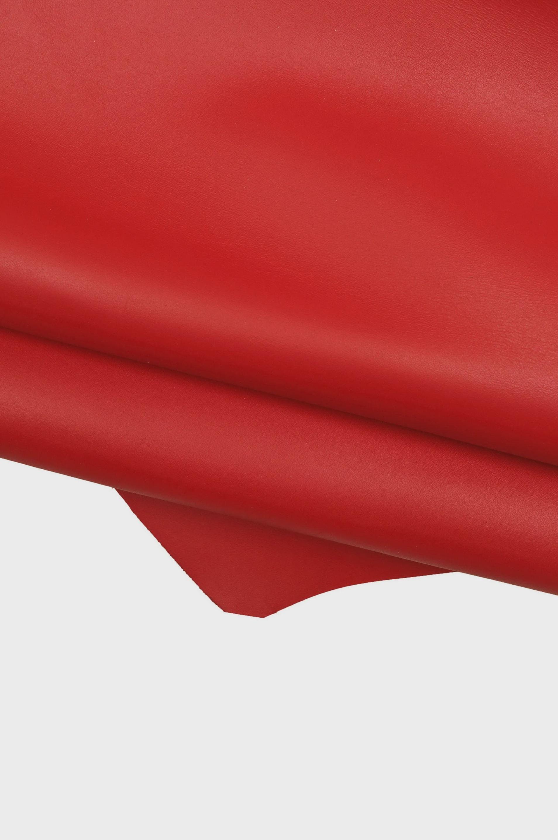 Fabulous red smooth leather hide, full grain soft cowhide, glossy calfskin 1.2 - 1.4 mm for crafting.