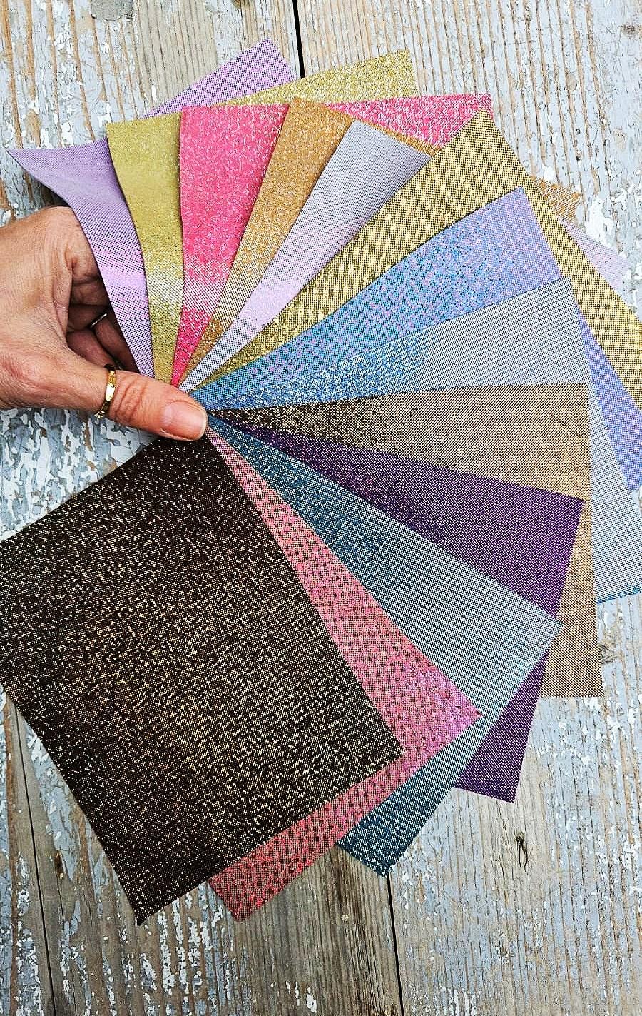 Gorgeous fancy leather scraps for lovers of glittery textures!