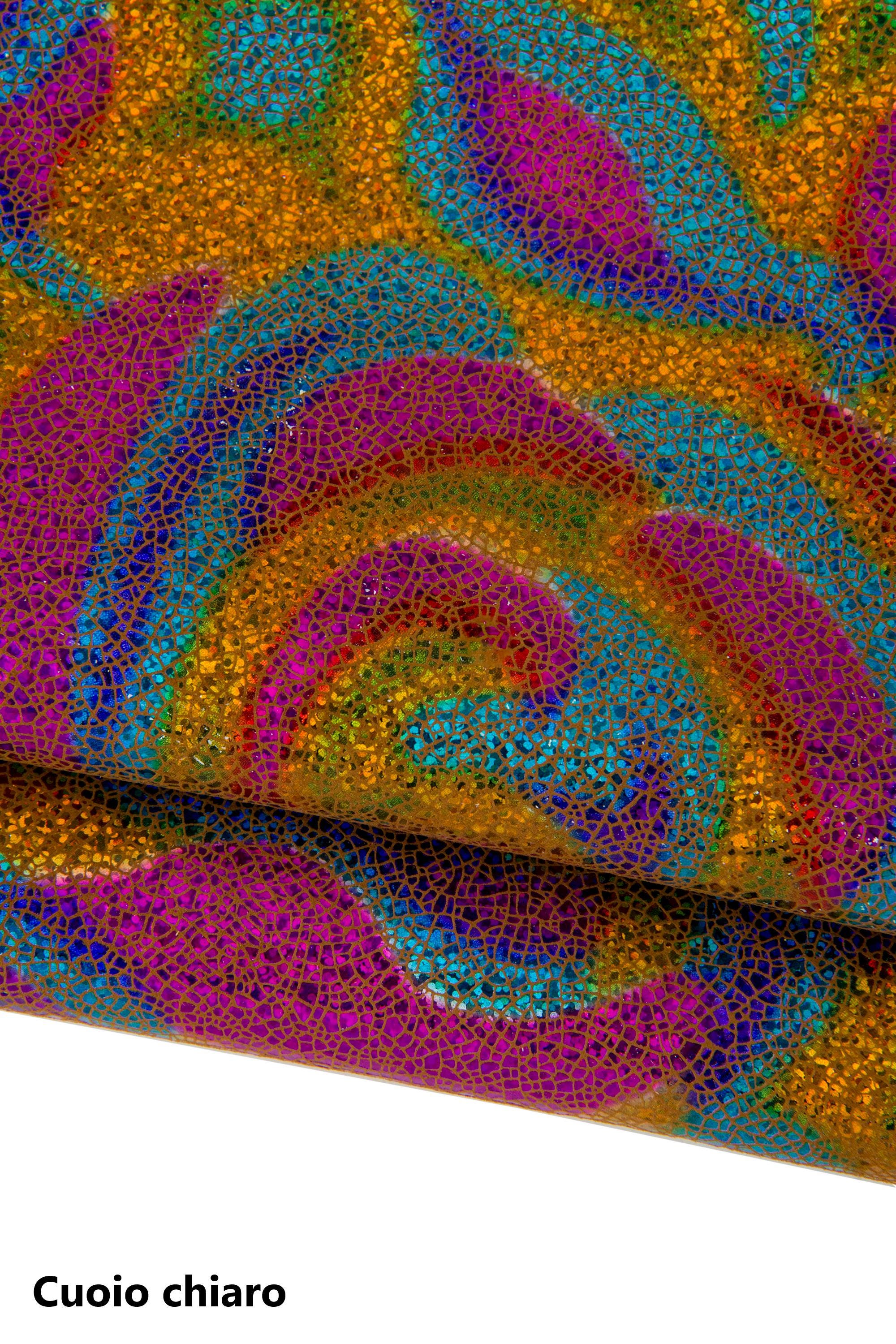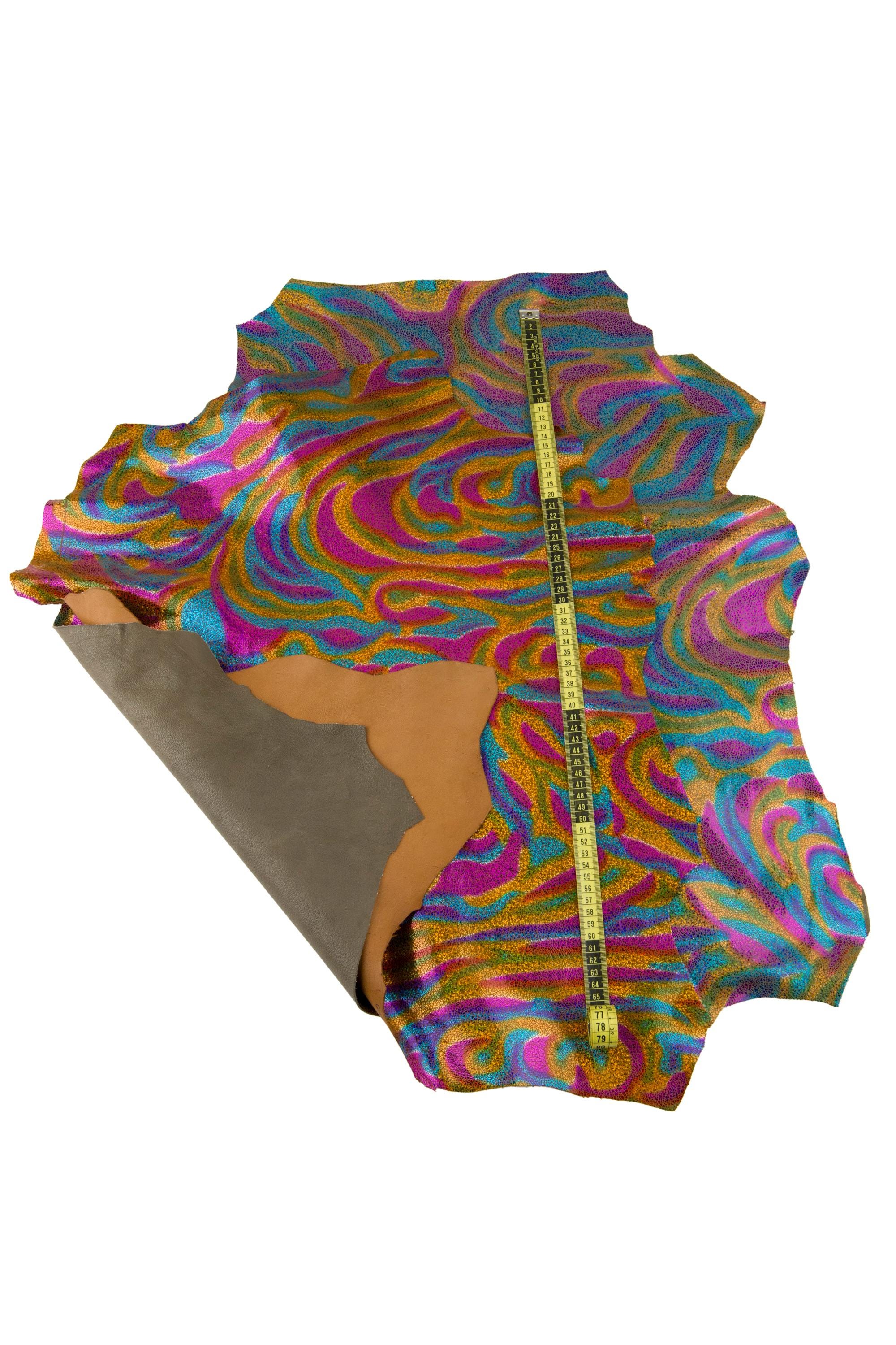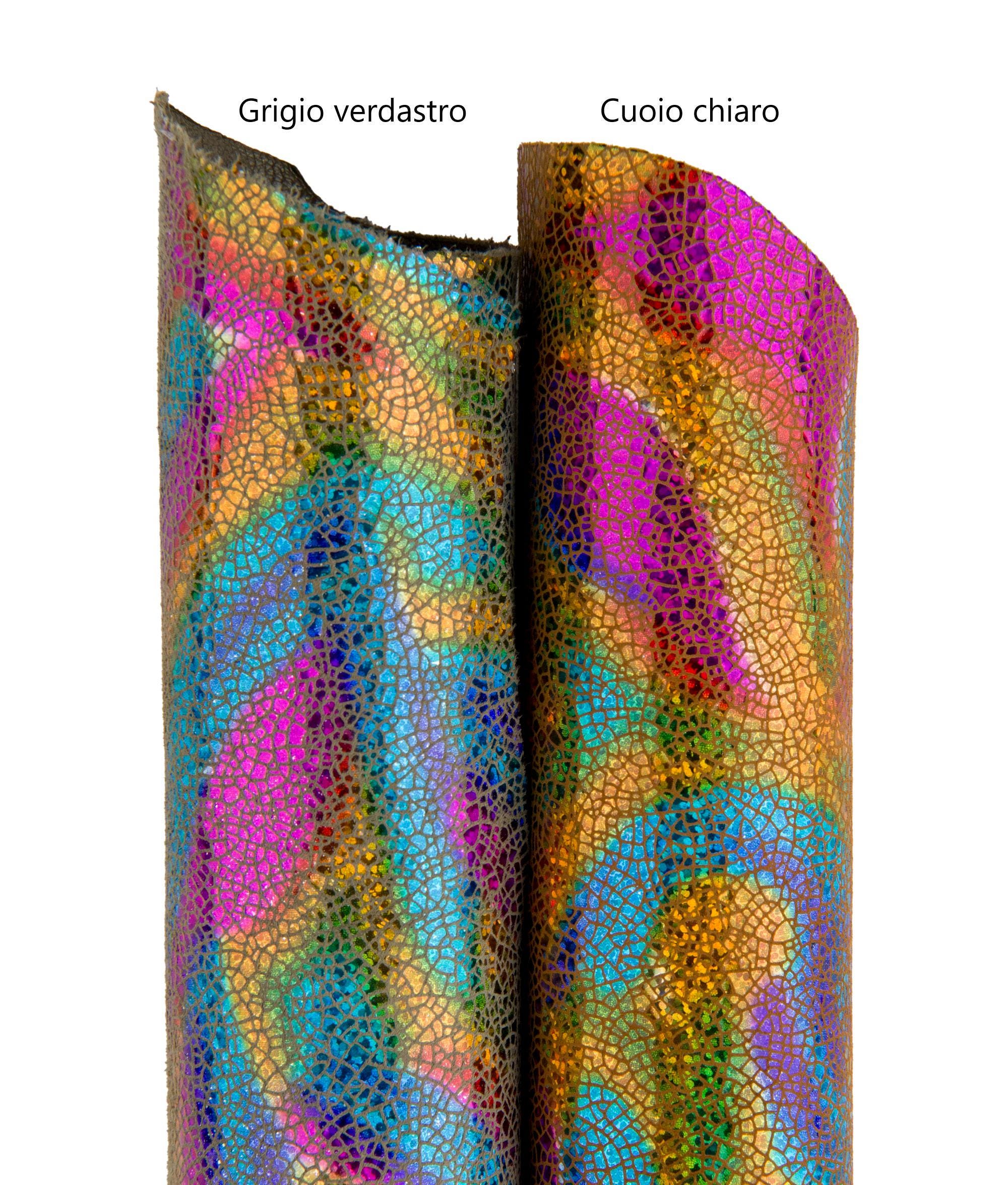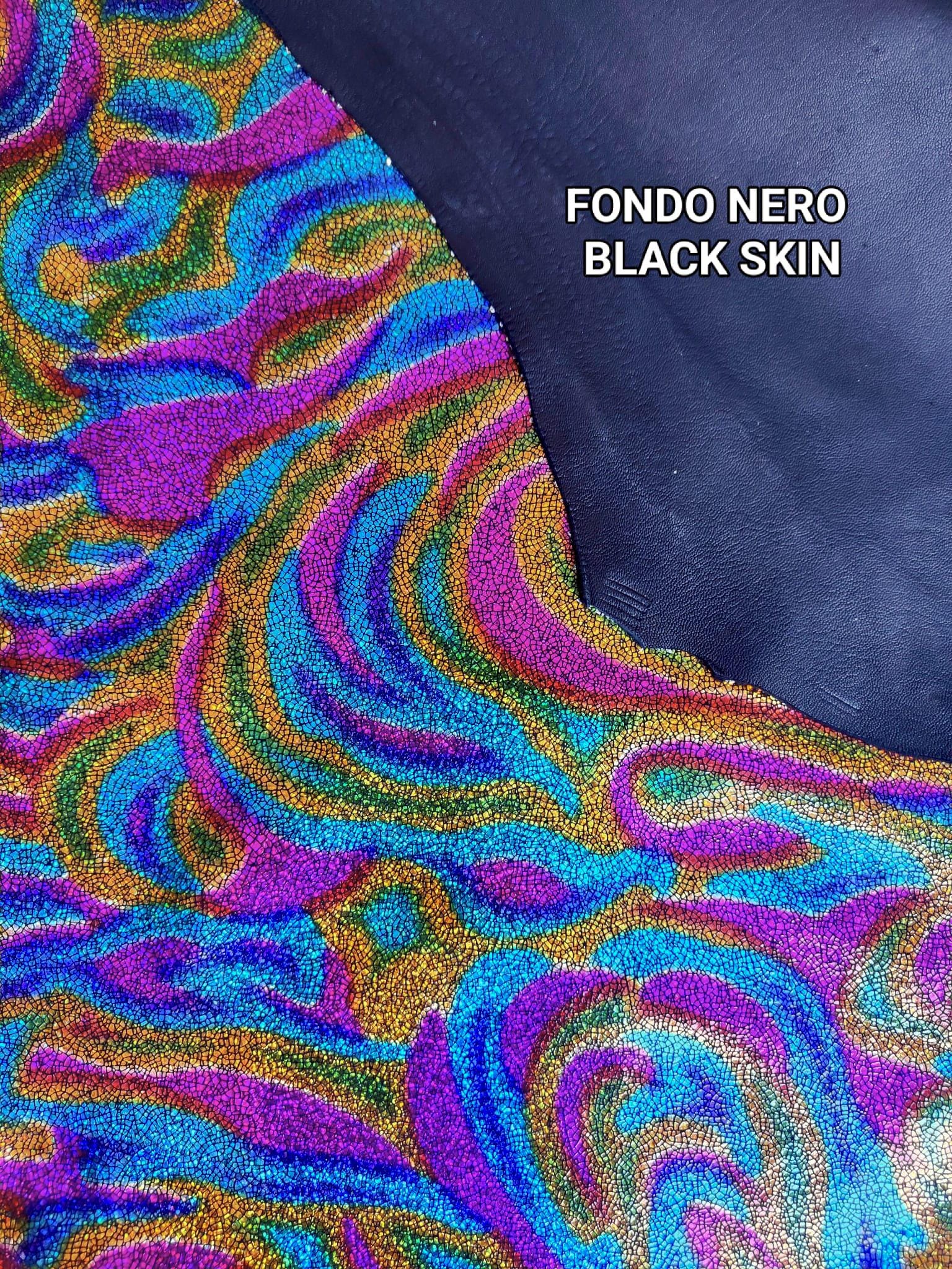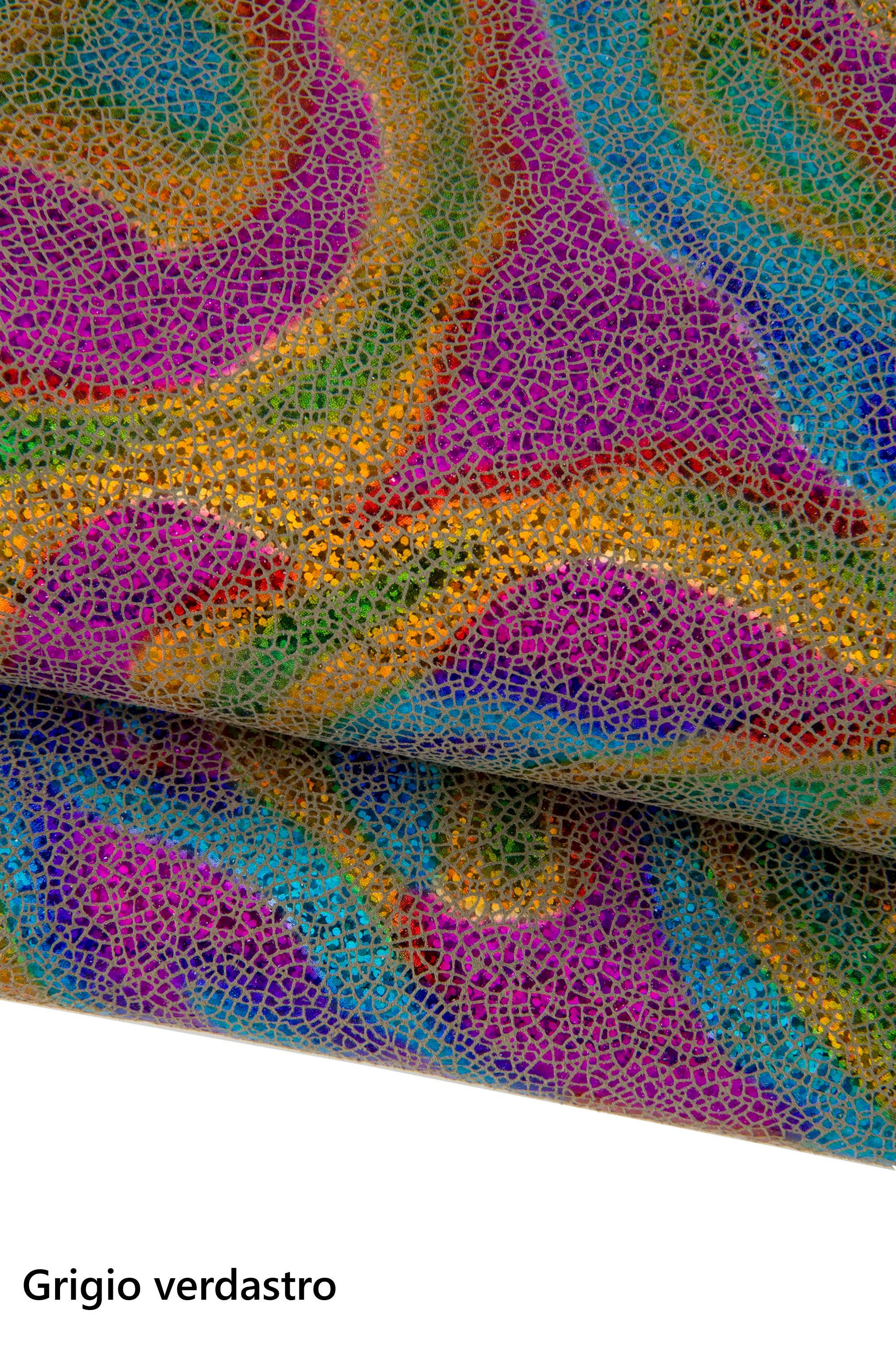 Fabulous iridescent laminated goatskin with crackle print, vibrant for DIY.