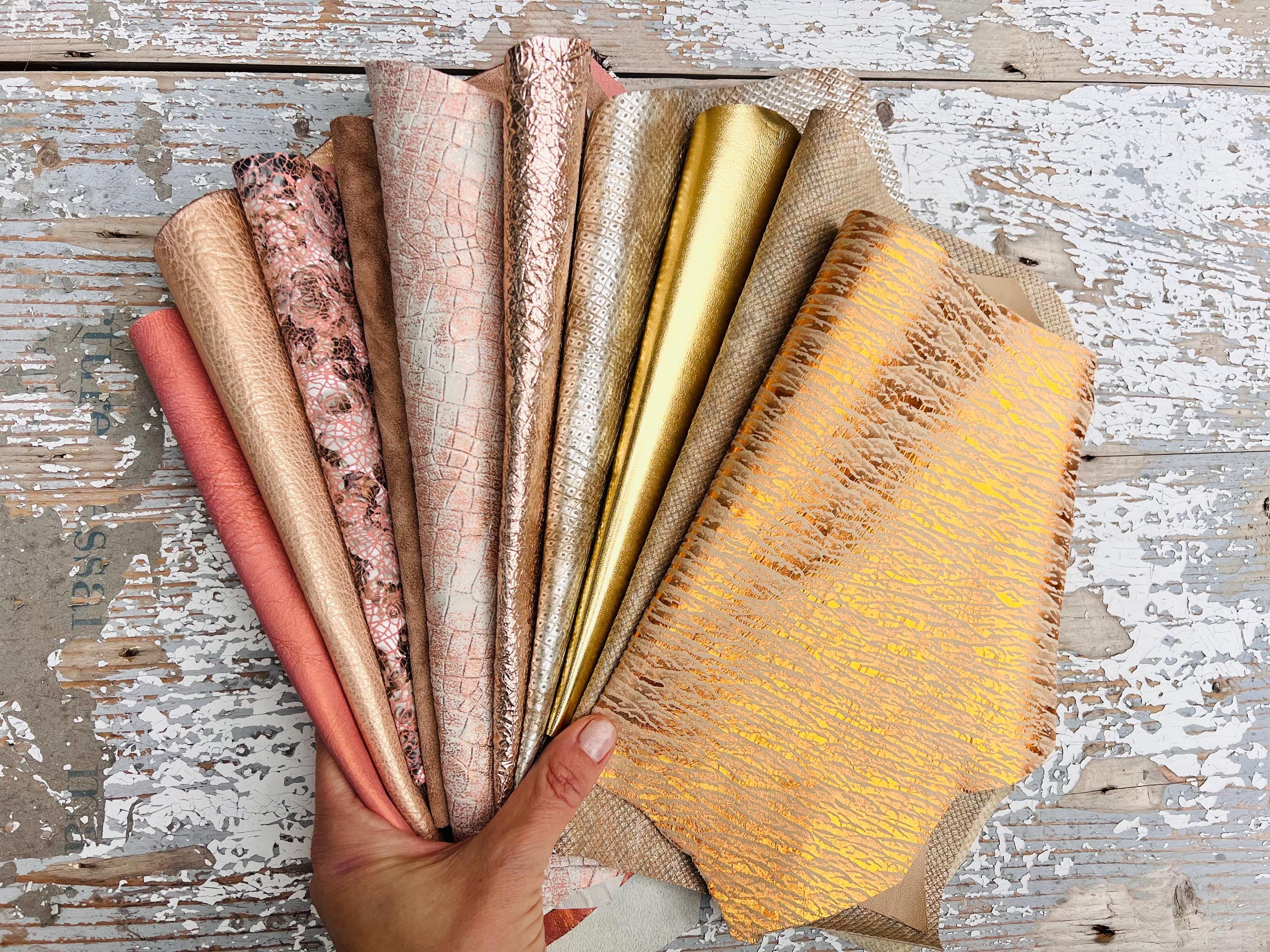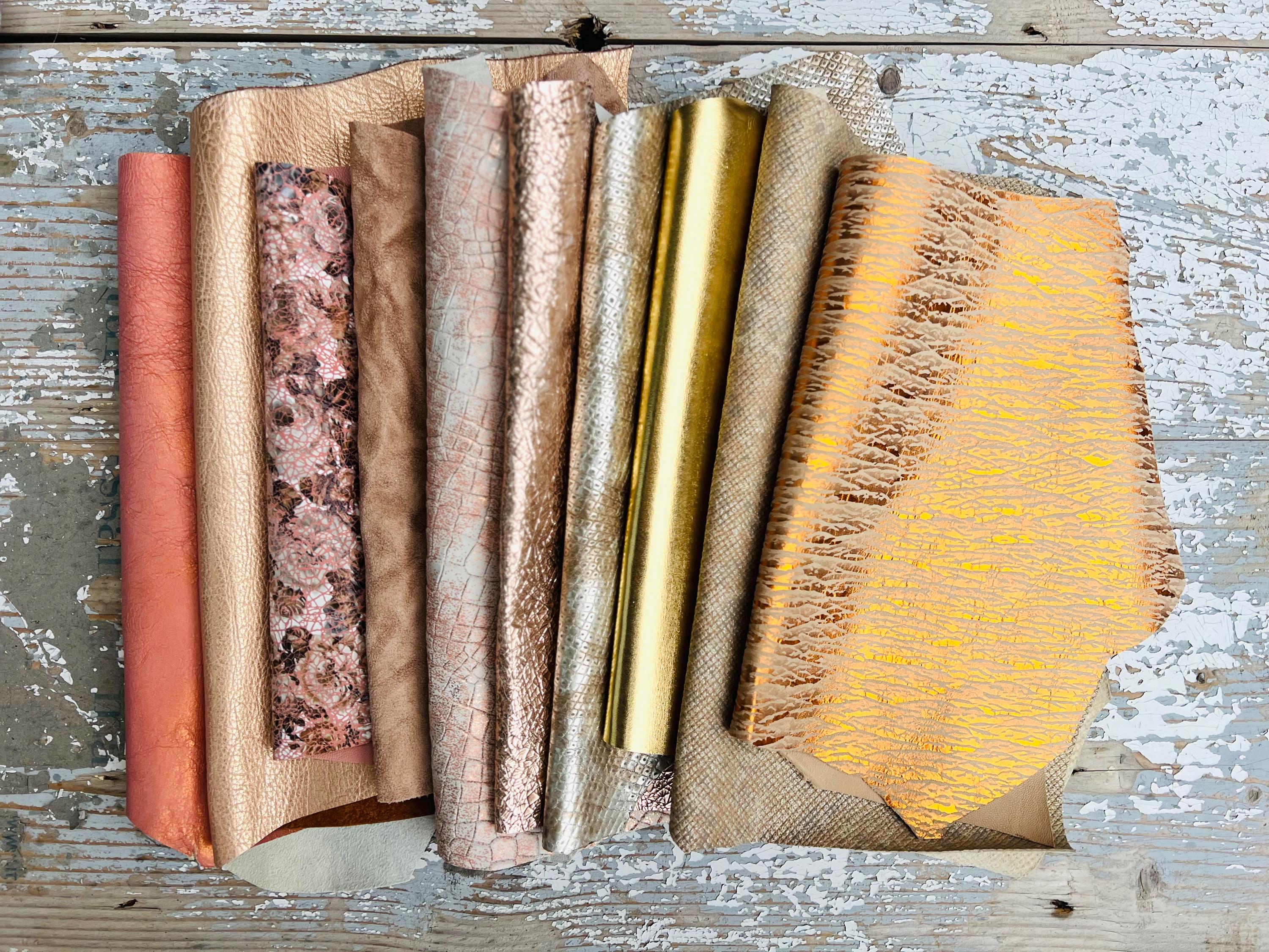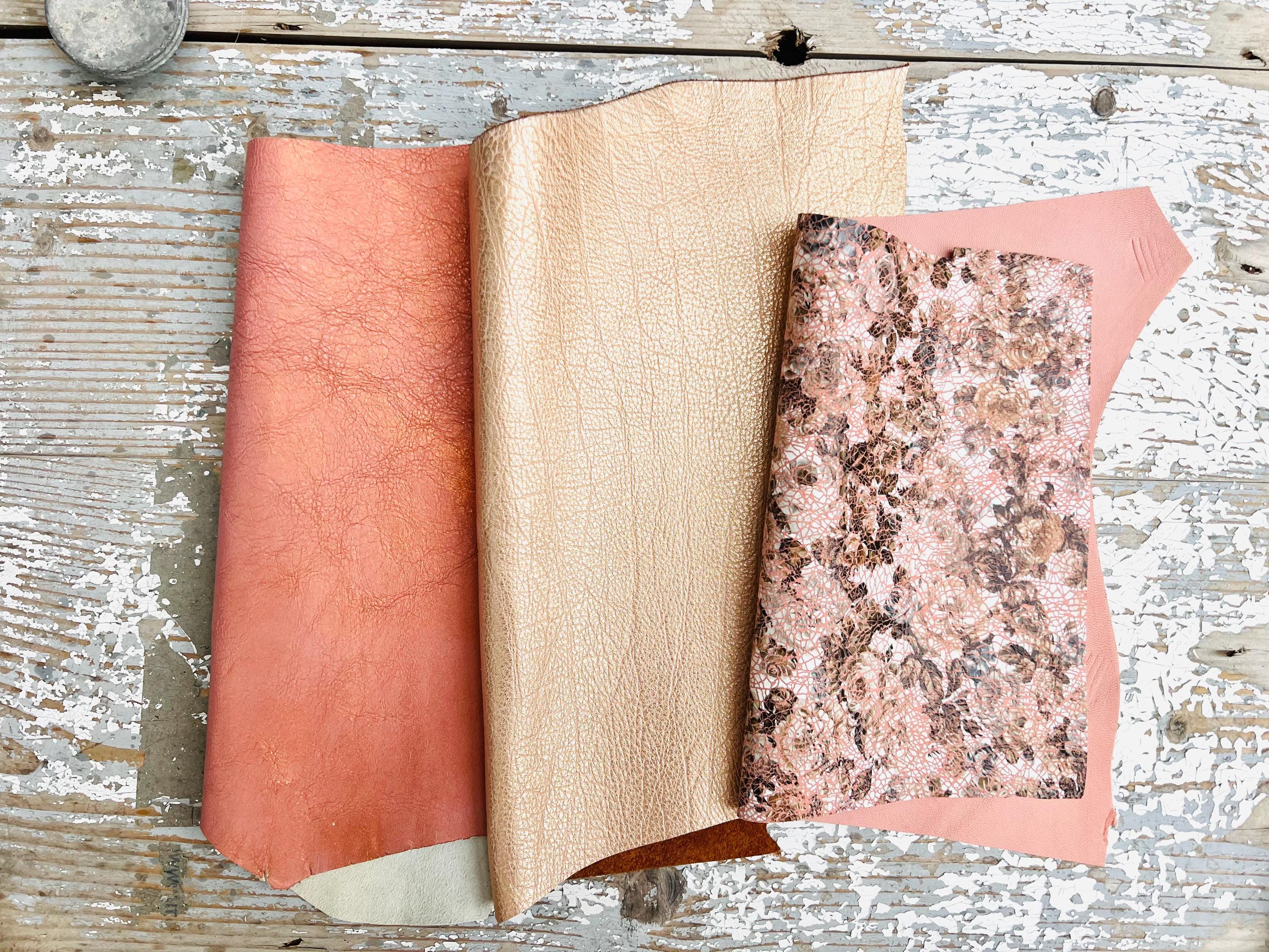 Gorgeous fancy leather scraps for lovers of pink, light gold tones!