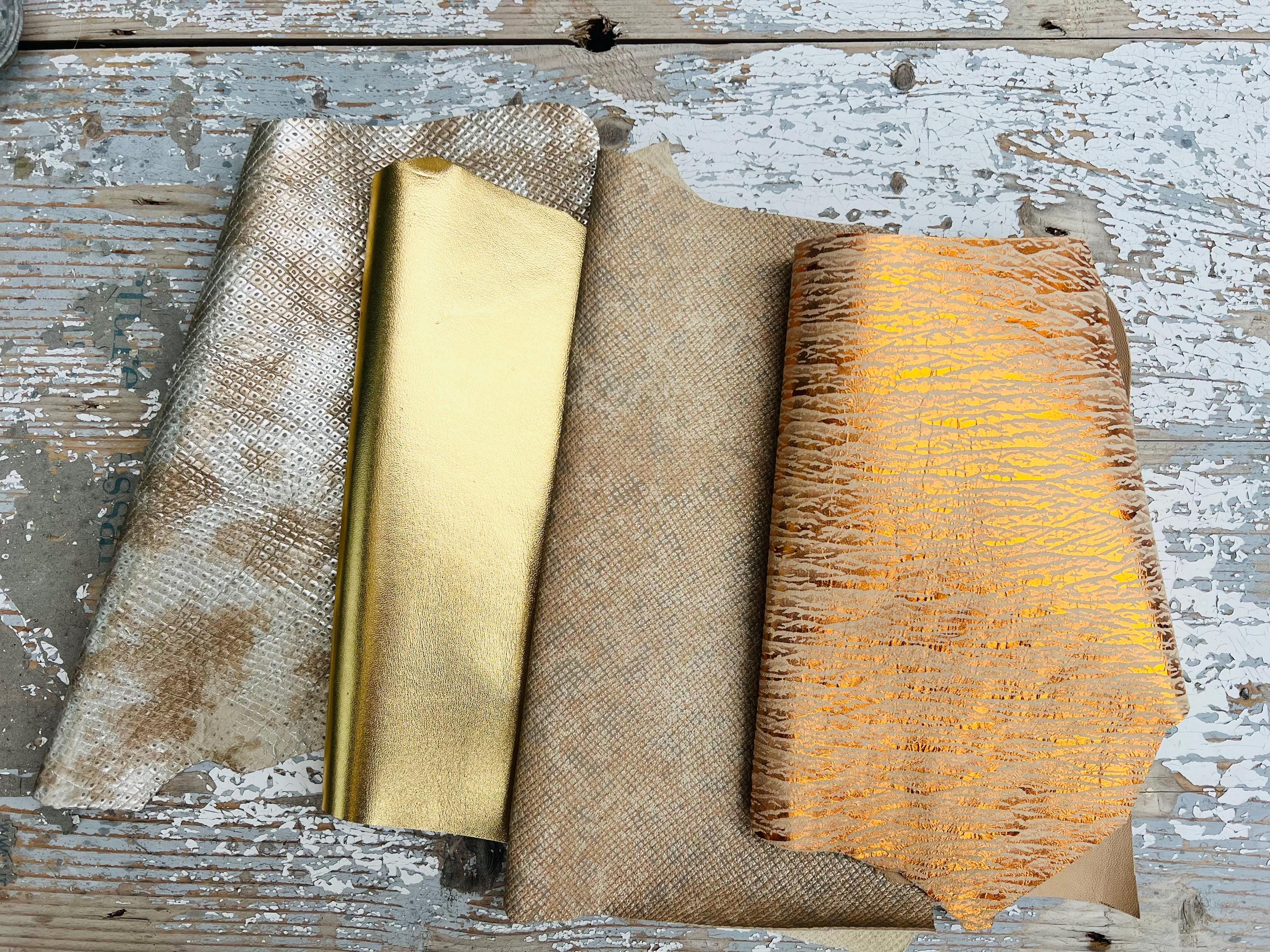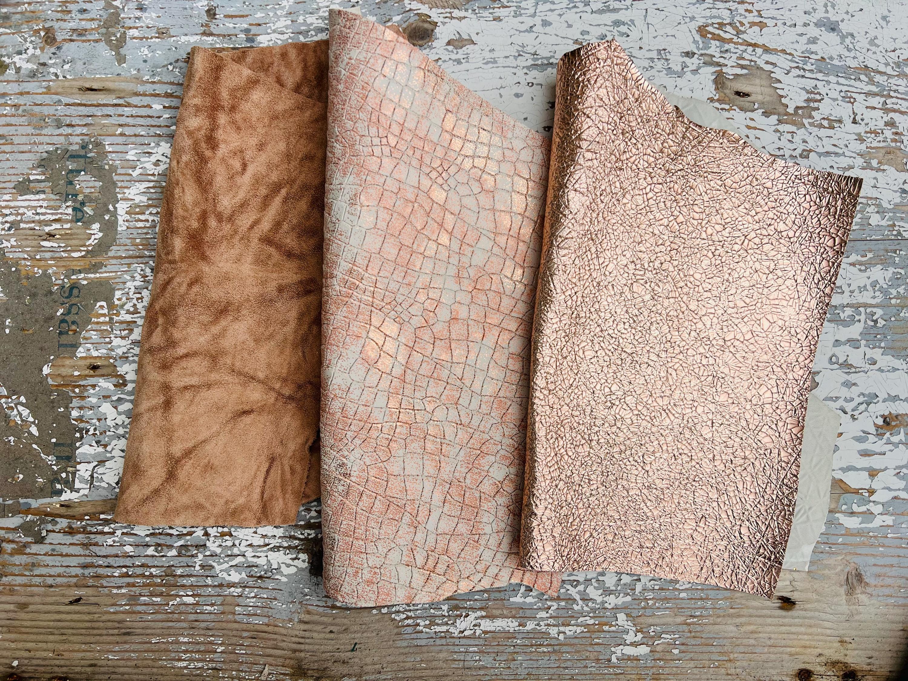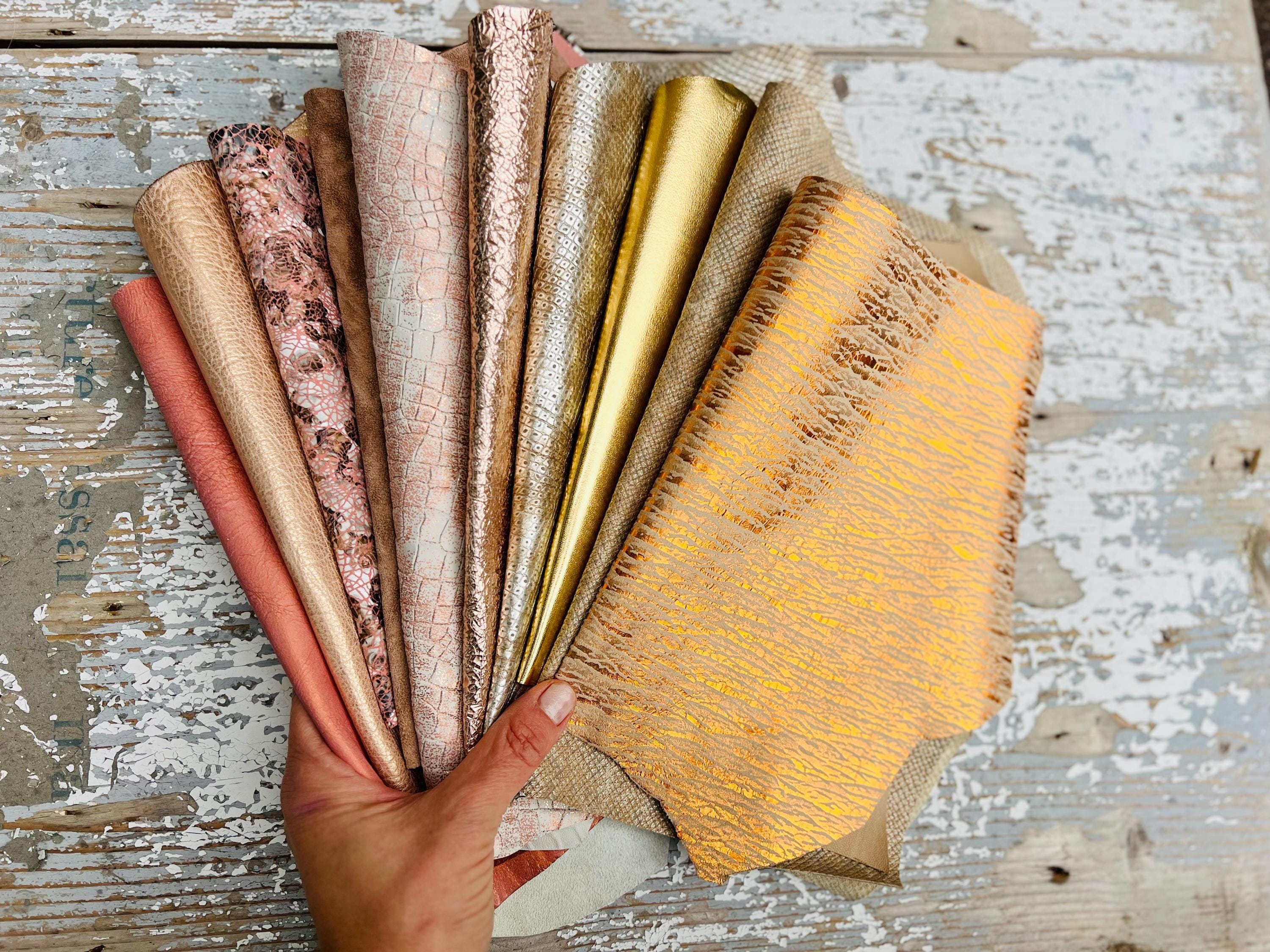 Gorgeous fancy leather scraps for lovers of pink, light gold tones!