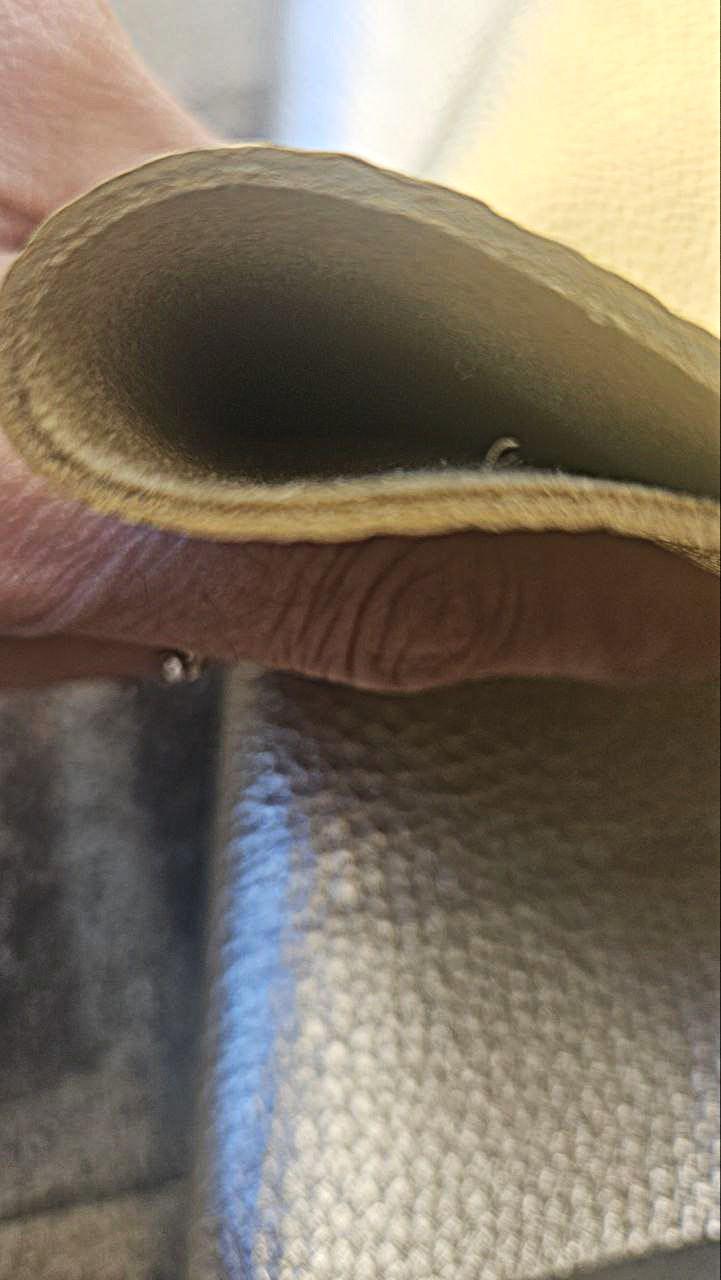 Some minor surface defects (holes, light stains, scars, blemishes) and thinner/softer edges of leather are expected as for most full hide leather. If need more details info on this, feel free to contact us. The visible defects or little holes are shown in the pictures.