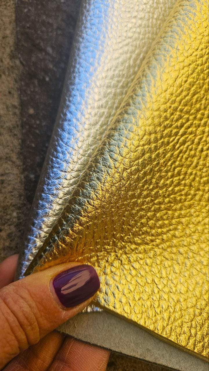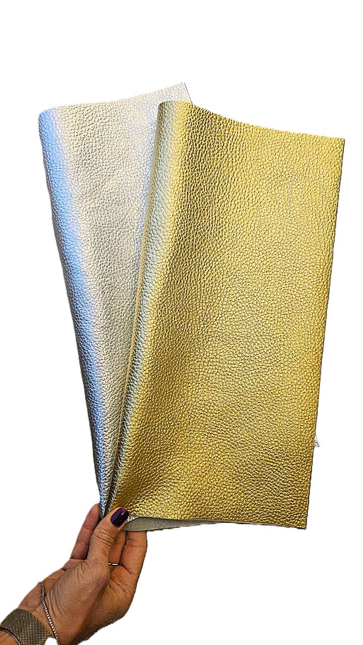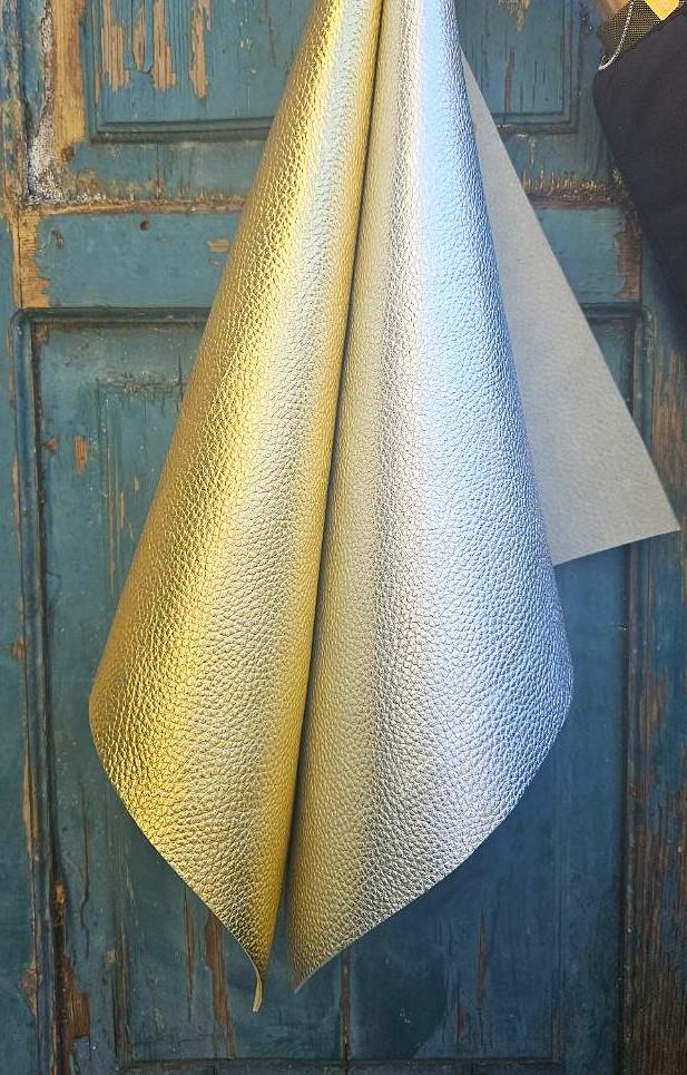 Leather calf pieces, gold and silver, very soft.