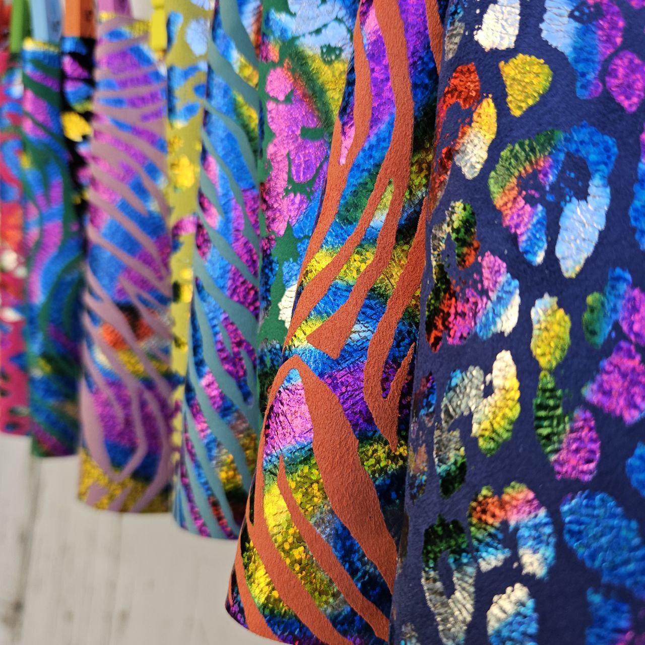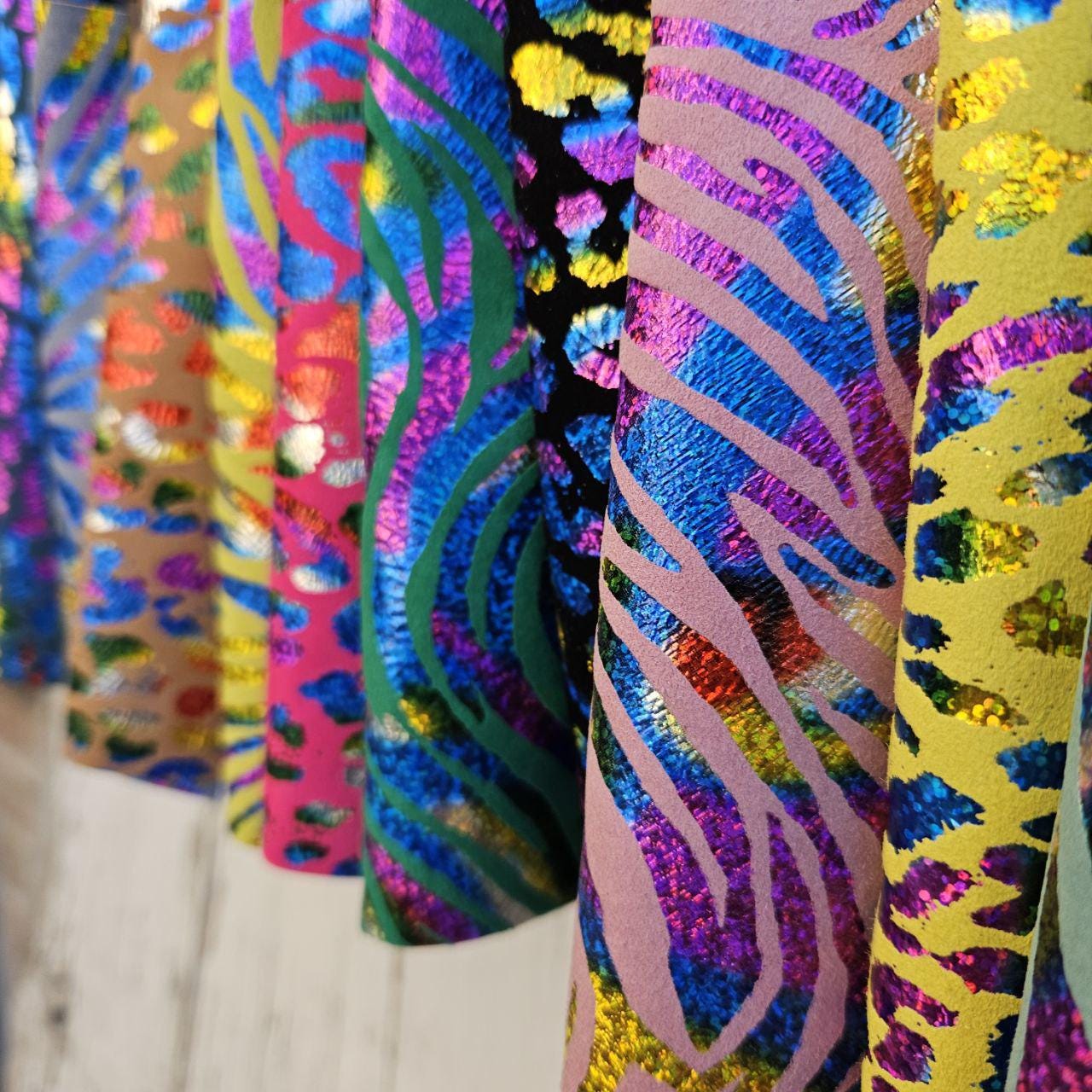 Gorgeous fancy leather scraps for lovers of multicolor zebra and leopard textures!