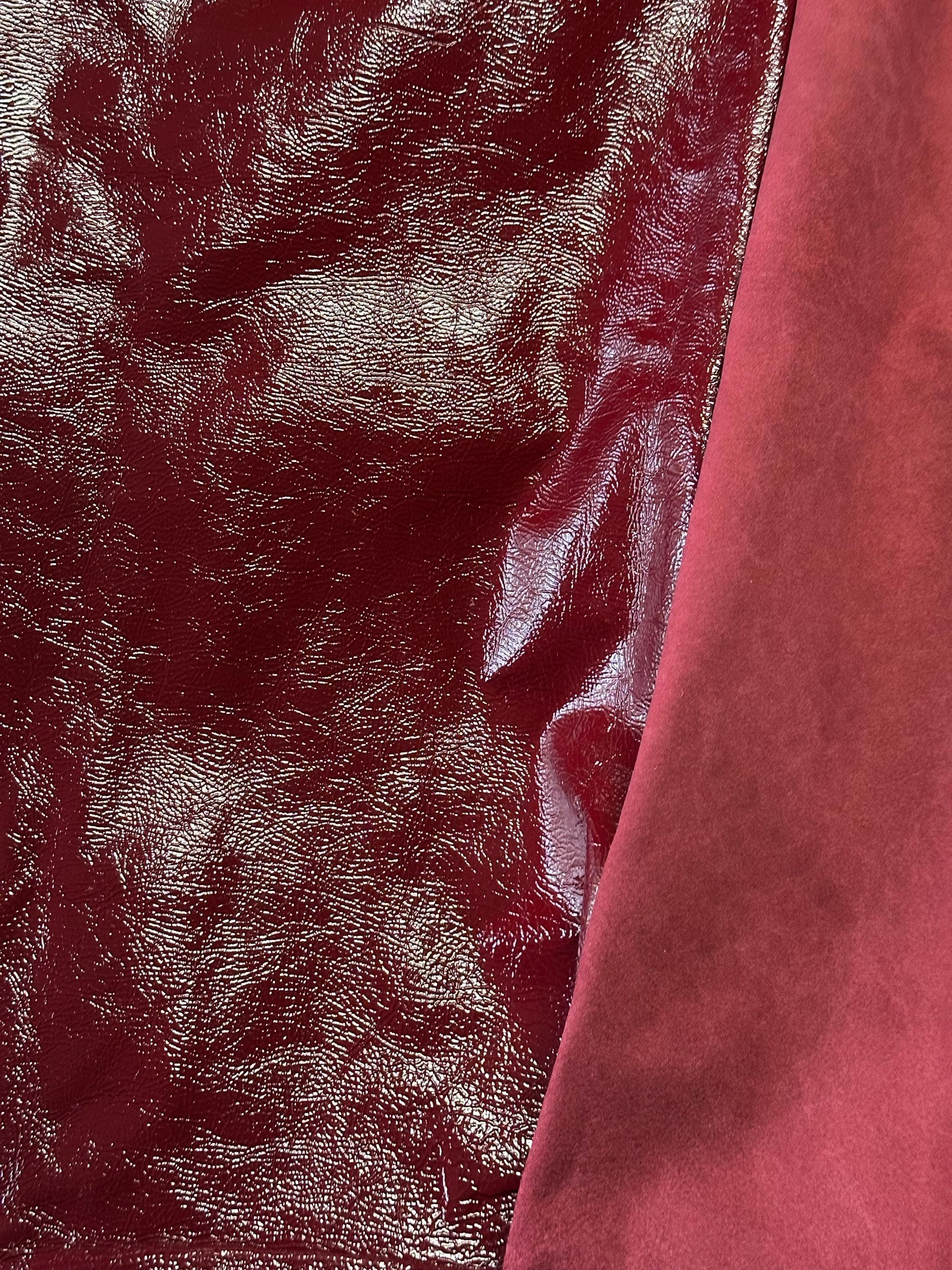 Superb dark red naplack leather hide, glossy patent cowhide, soft wrinkled calfskin