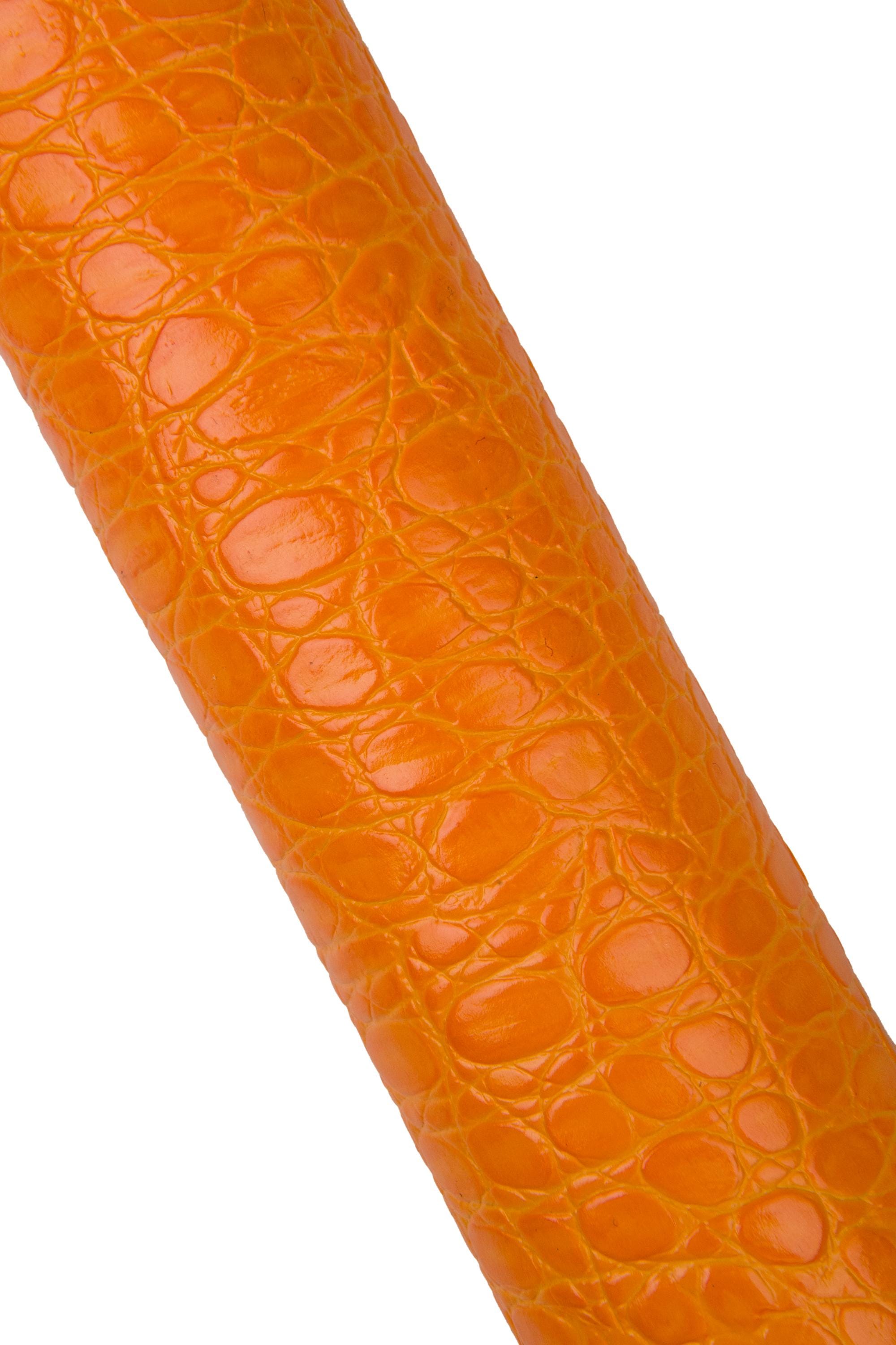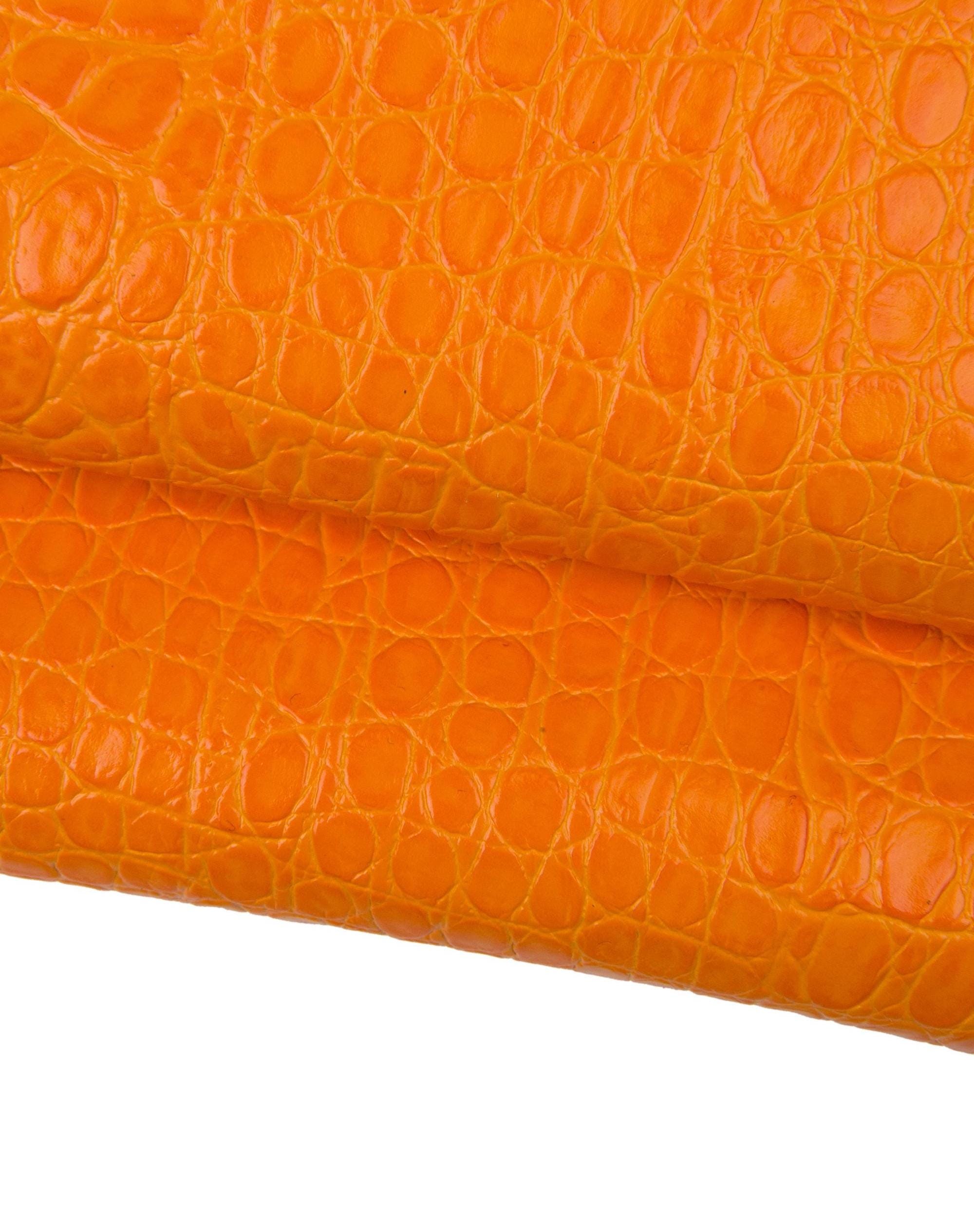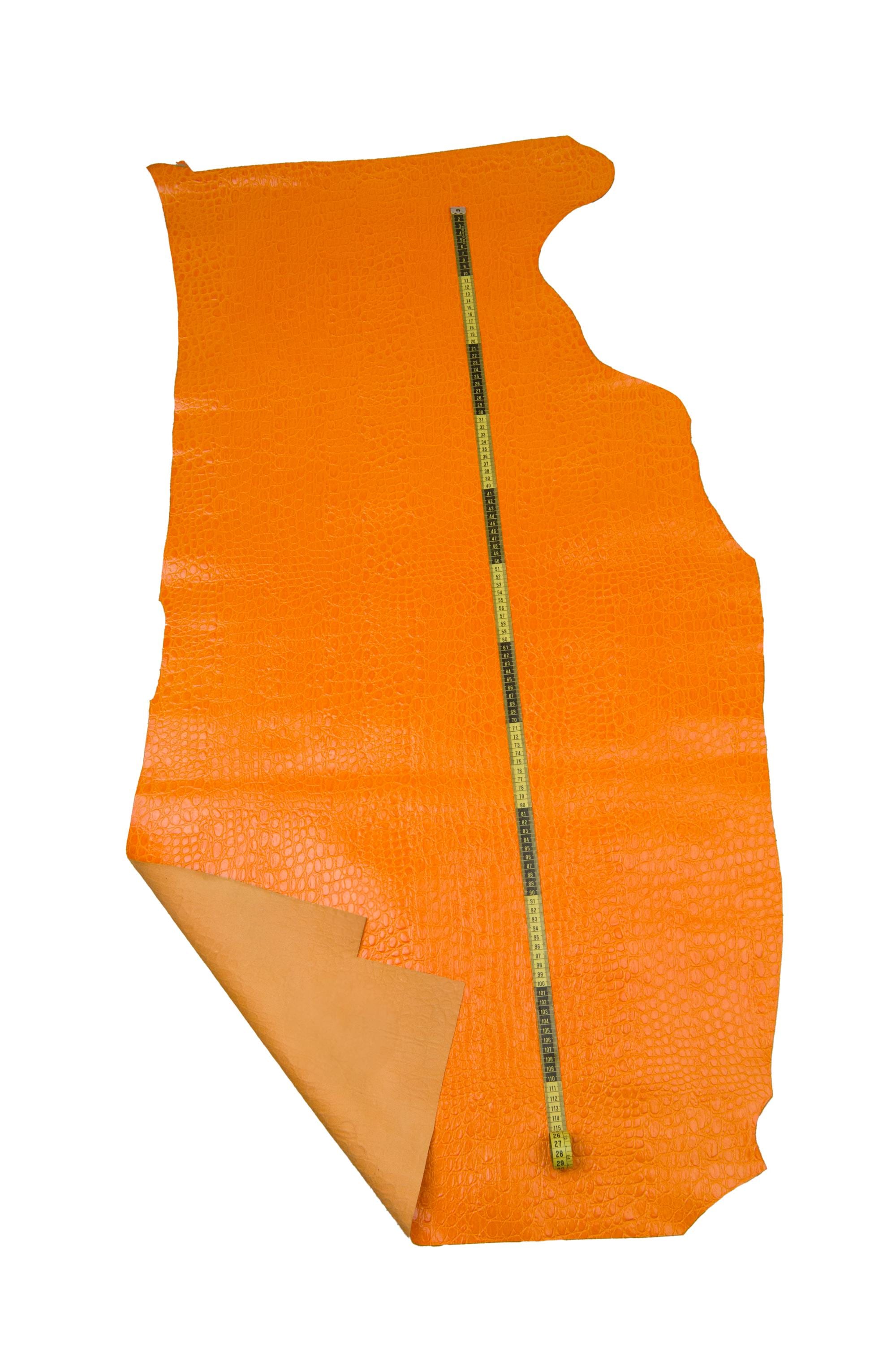 Beautiful orange crocodile embossed leather hide, glossy stiff calfskin, top quality printed cowhide for crafting.