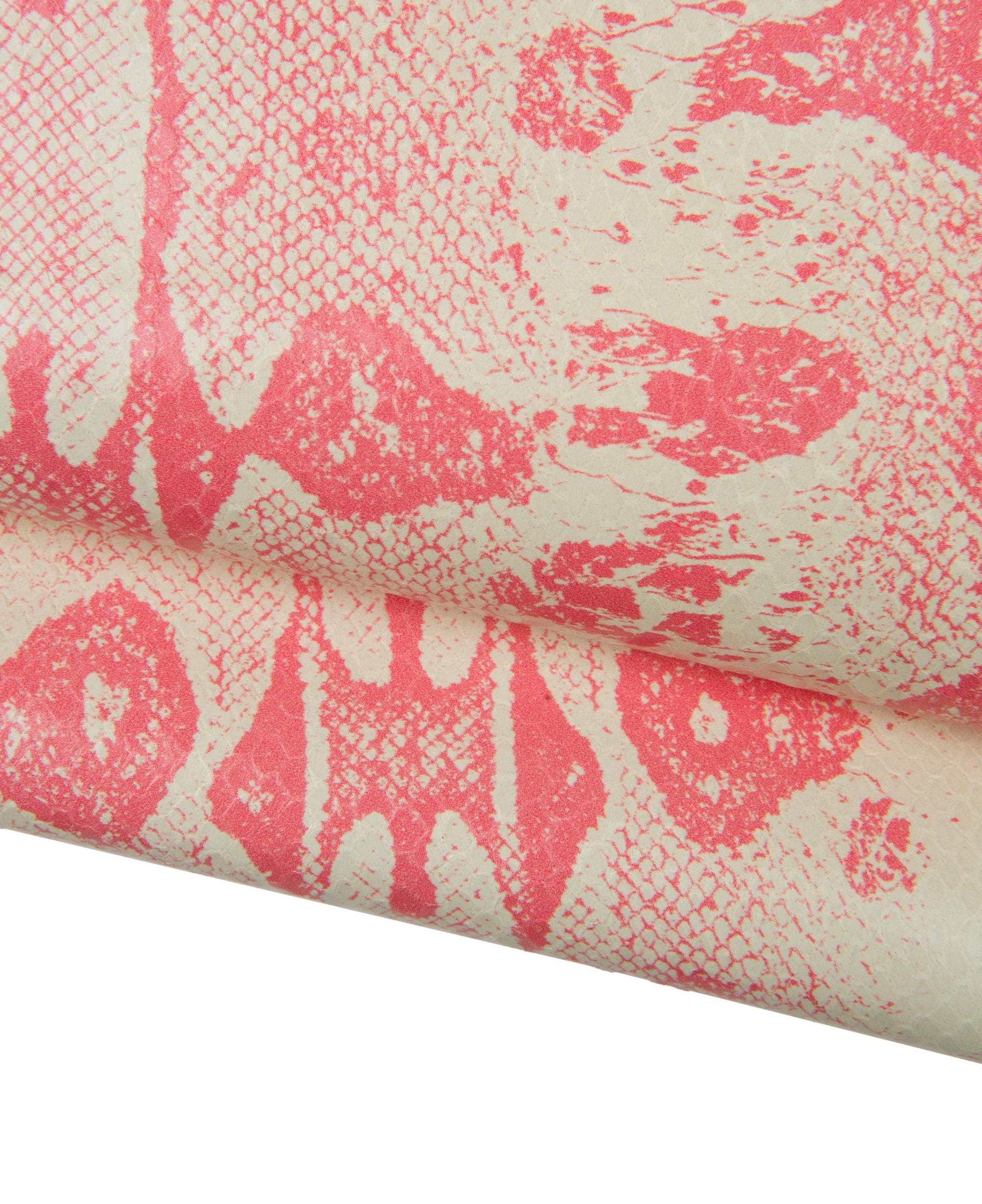 Gorgeous pink - cream reptile leather hide, python snake printed cowhide, glossy soft textured calfskin for hobbyists.