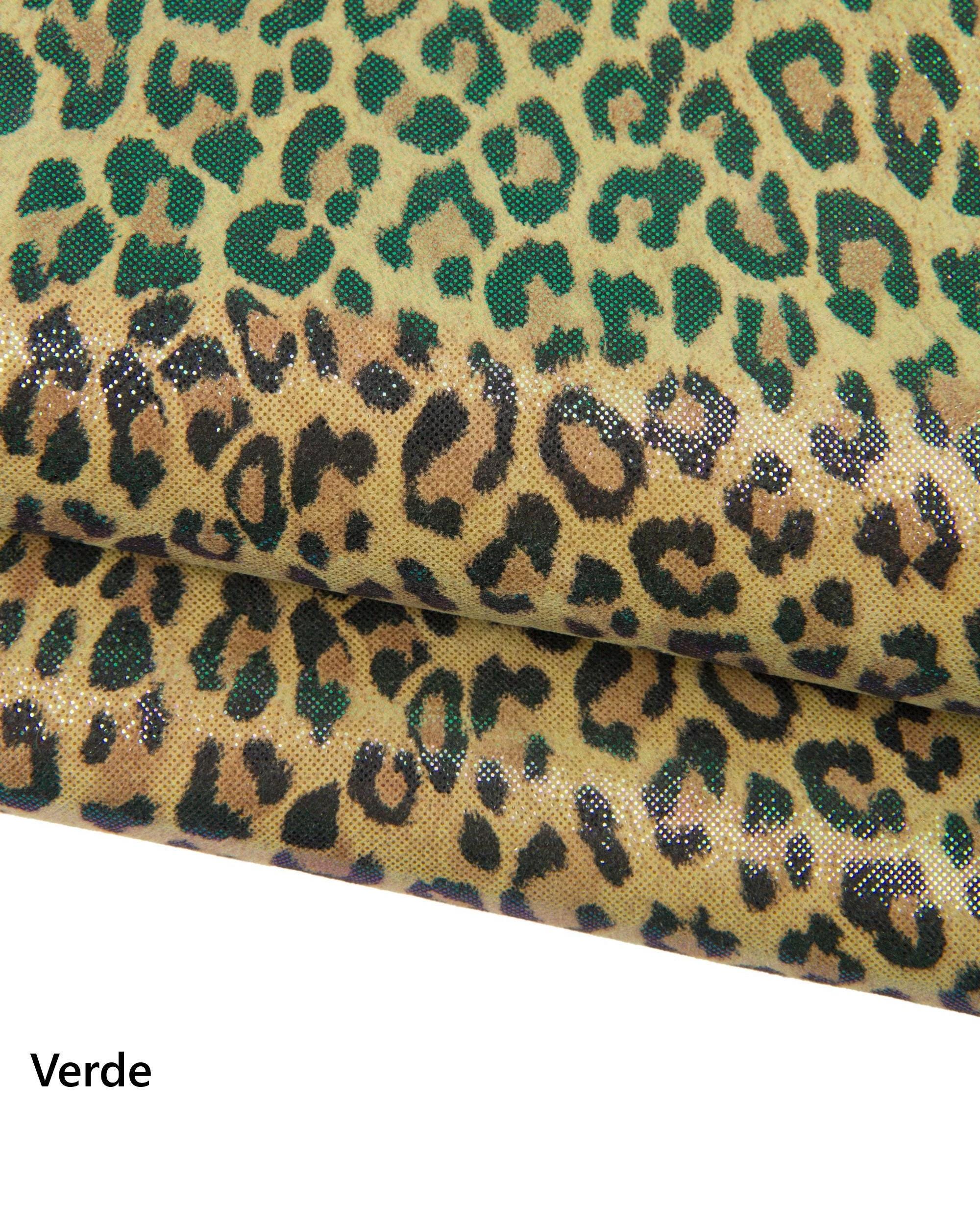 Fantastic holographic leopard printed skin, cheetah textured suede goatskin, metallic animal pattern on hide for DIY projects.