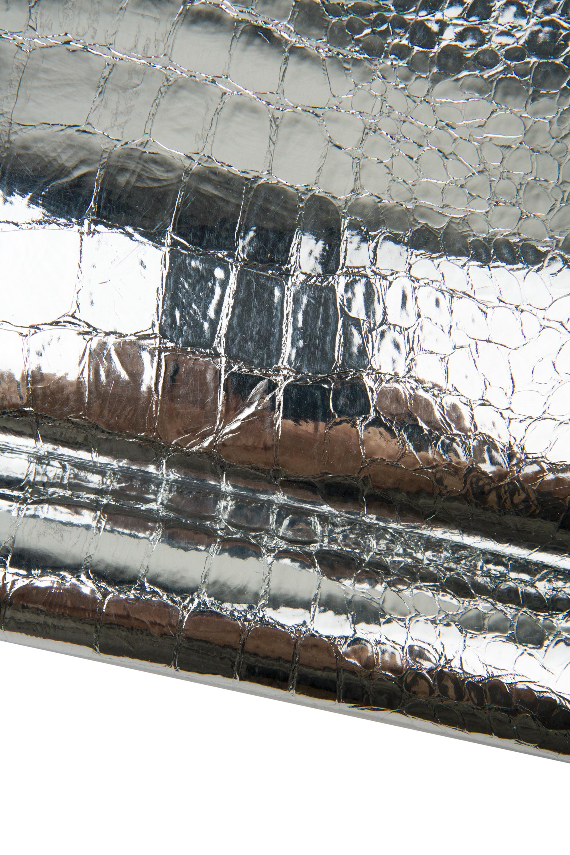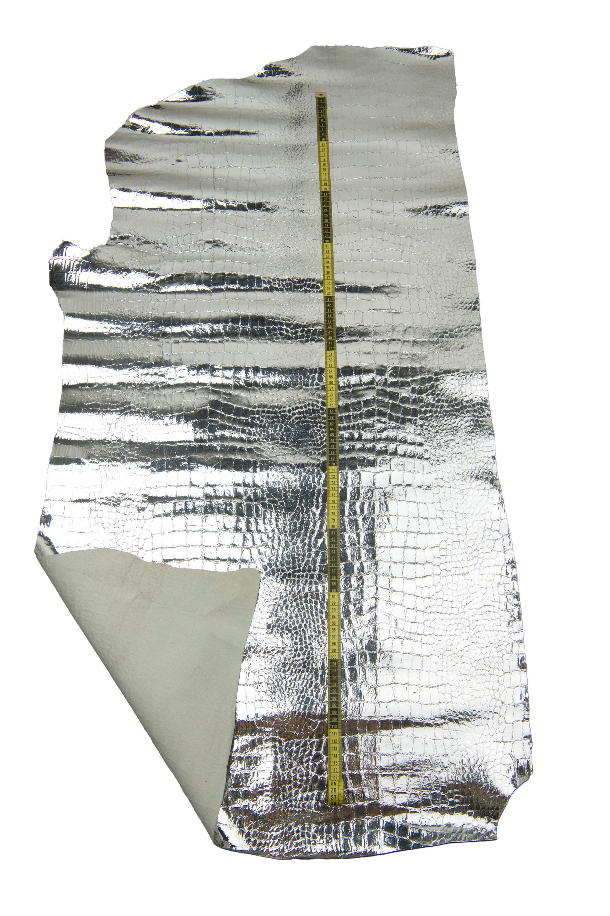 Fabulous silver crocodile embossed leather hide, metallic animal printed cowhide, calfskin for crafting.