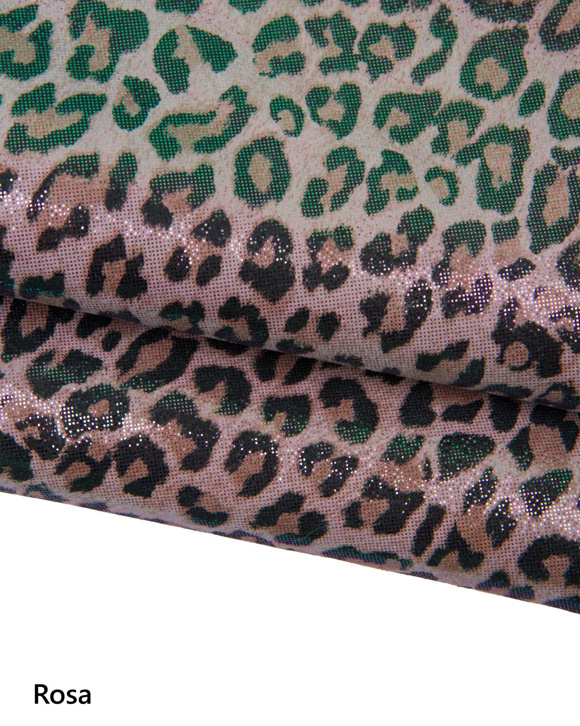 Fantastic holographic leopard printed skin, cheetah textured suede goatskin, metallic animal pattern on hide for DIY projects.