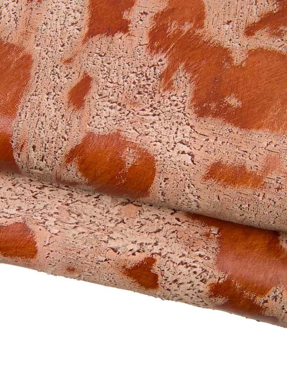 Amazing brown super vintage leather skin, cork - like aged, distressed goatskin, sporty leather for hobbyists.