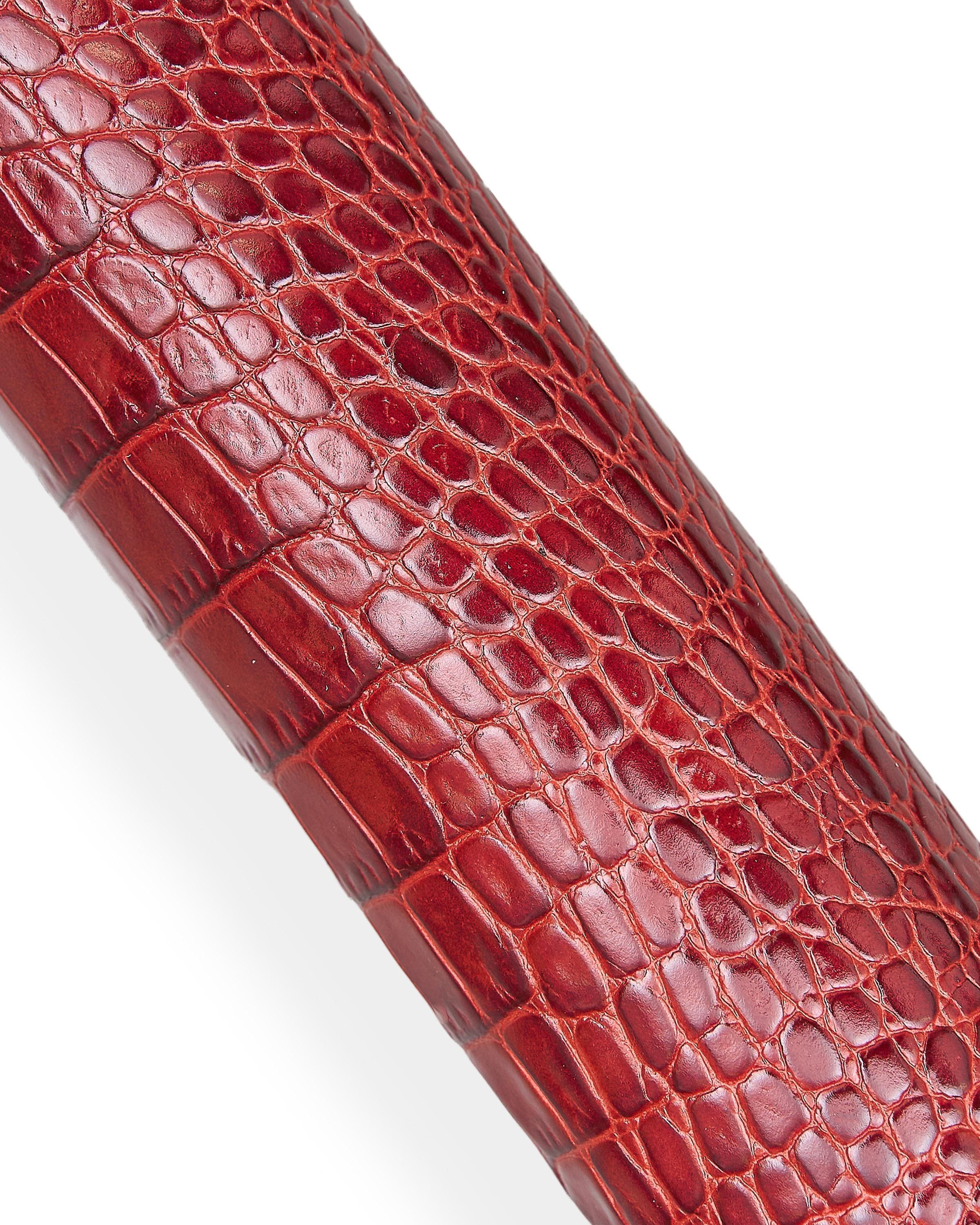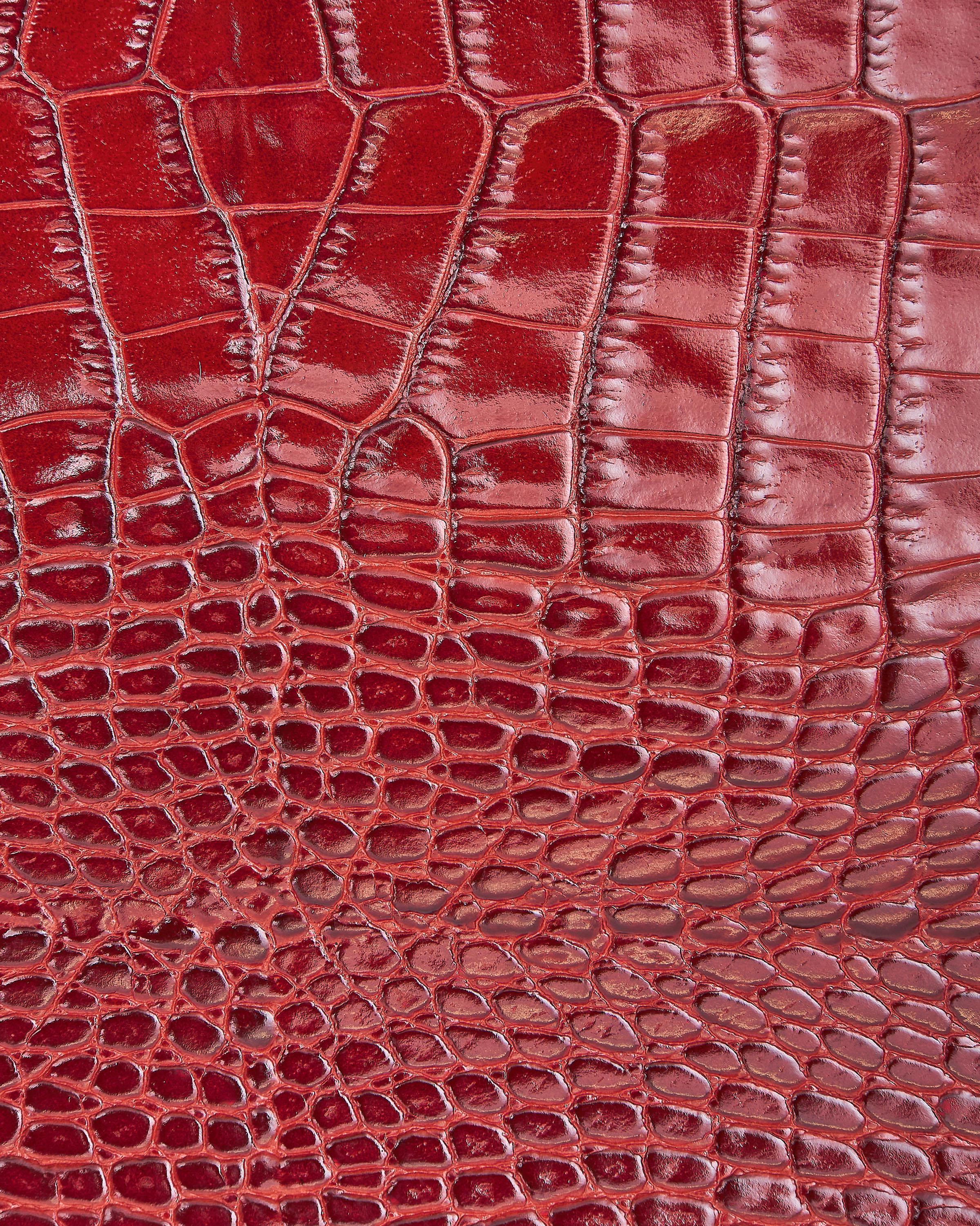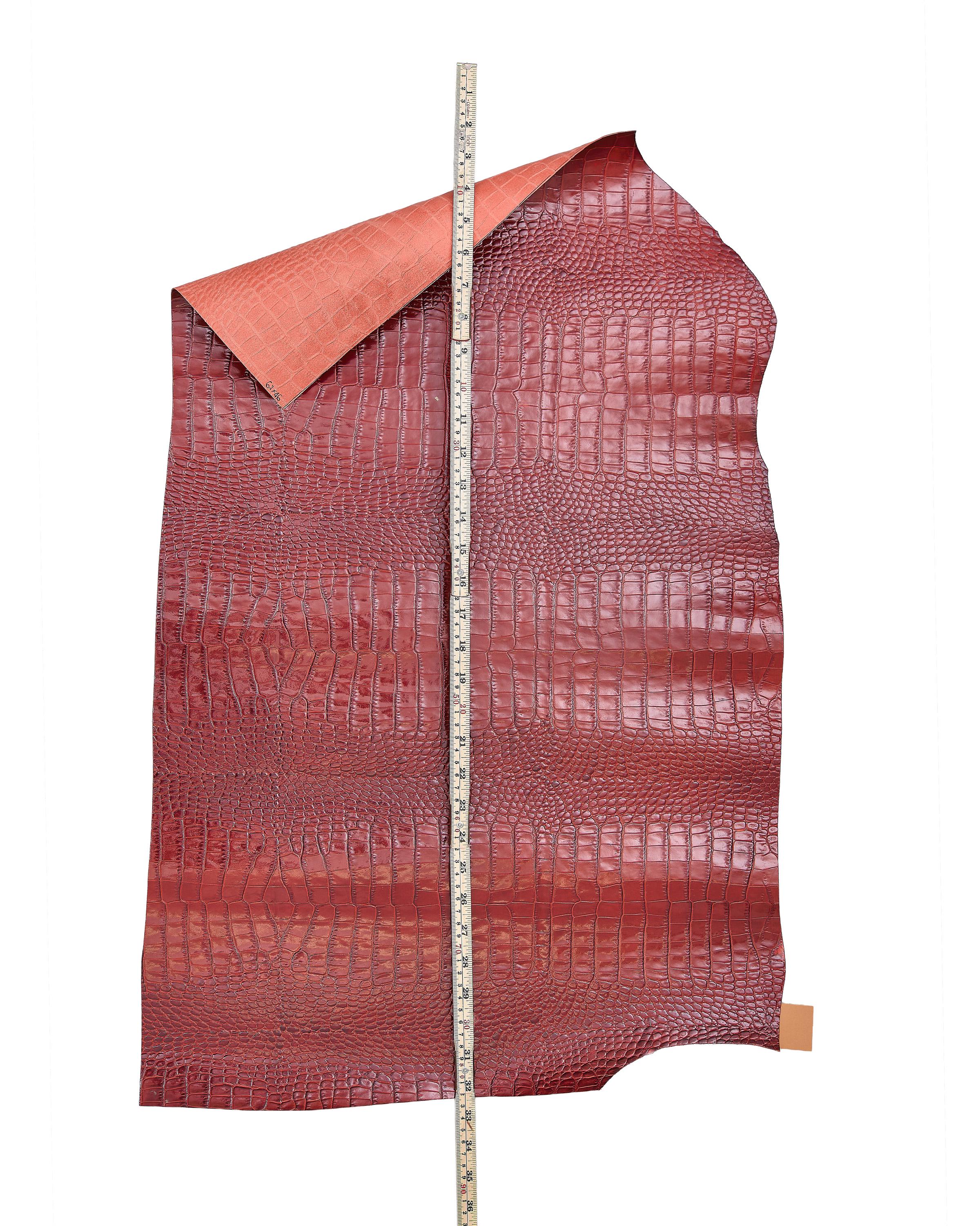 Fantastic brick red crocodile embossed leather hide, luxurious alligator printed cowhide, glossy stiff calfskin for crafters.