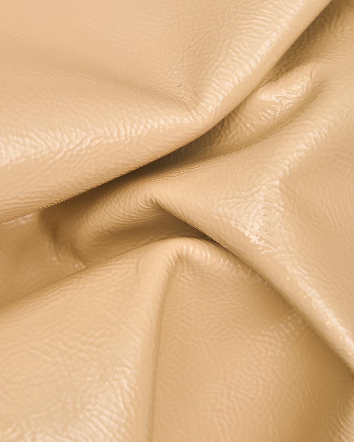 Wonderful beige patent leather hide, wrinkled patent cowhide, glossy soft calfskin.