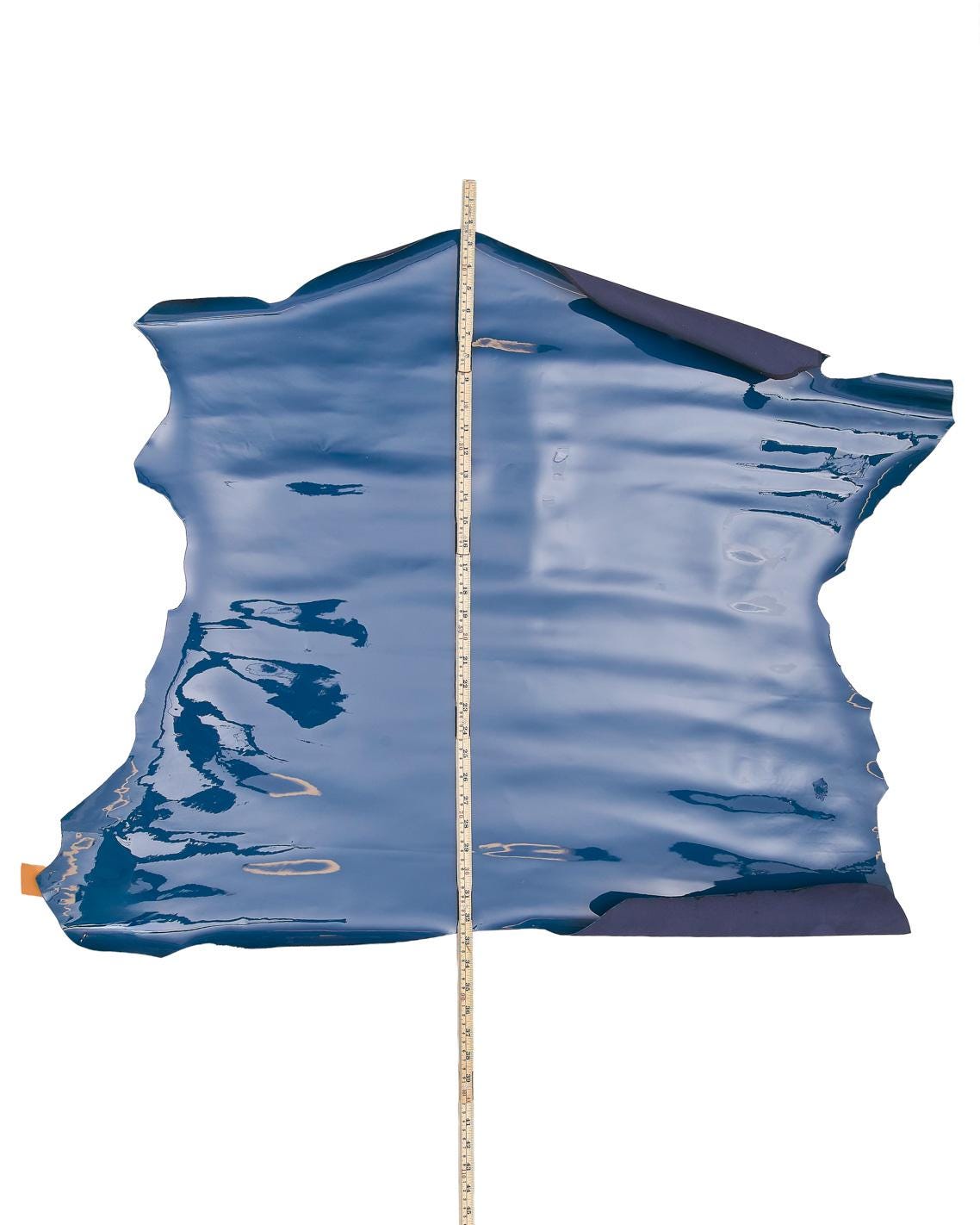 Wonderful blue patent leather skin, smooth glossy goatskin, full grain hide for diy projects, medium softness.