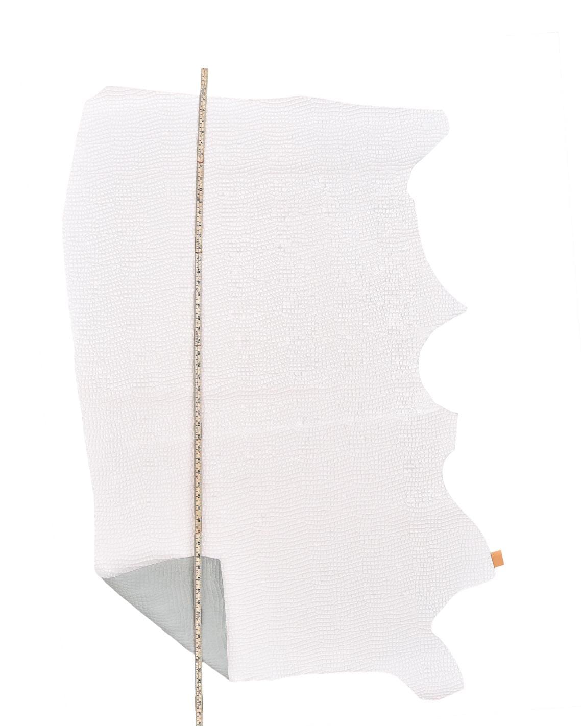 Wonderful white glossy crocodile embossed leather hide, elegant printed calfskin, medium softness.