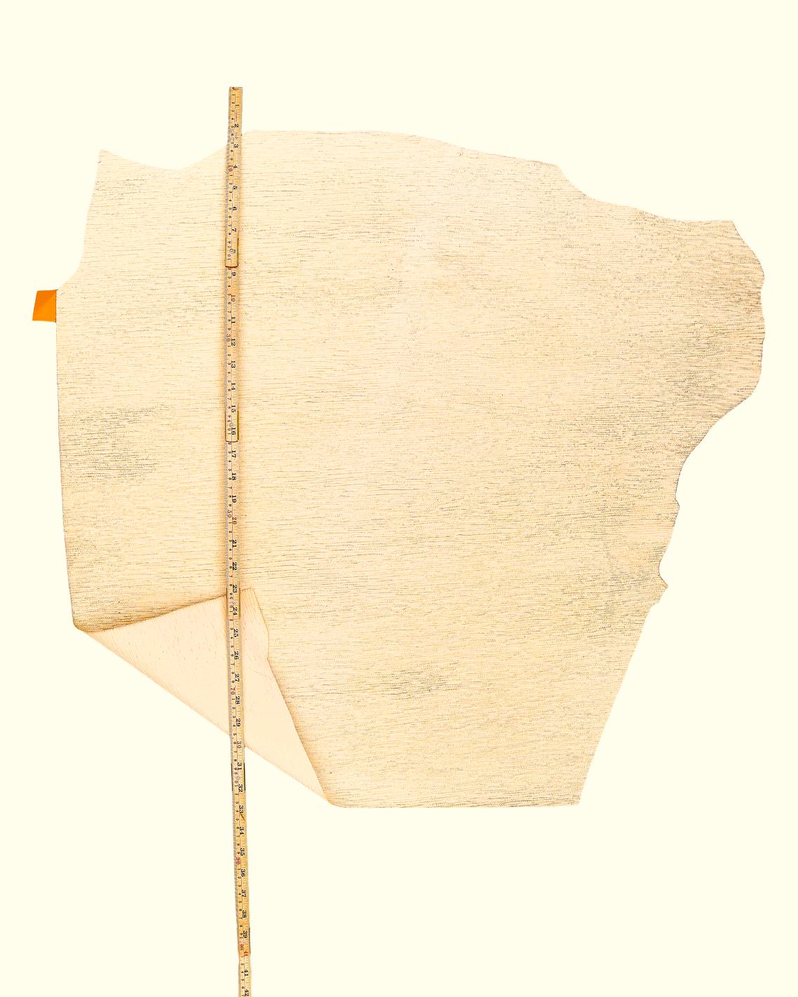 Particular braid printed leather hide, cream cowhide - gold glitter, golden metallic soft calfskin for hobbyists.