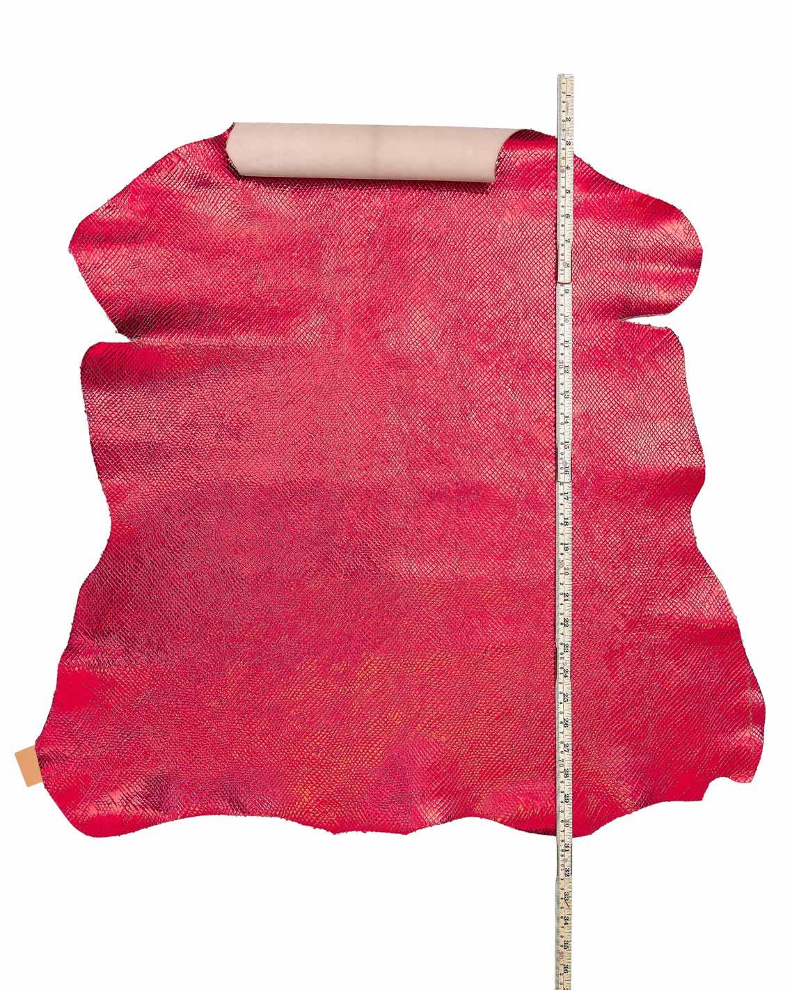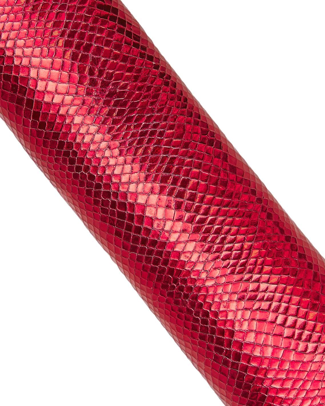 Fabulous red metallic python leather skin, glossy reptile printed goatskin, soft bright snakeskin for crafters.