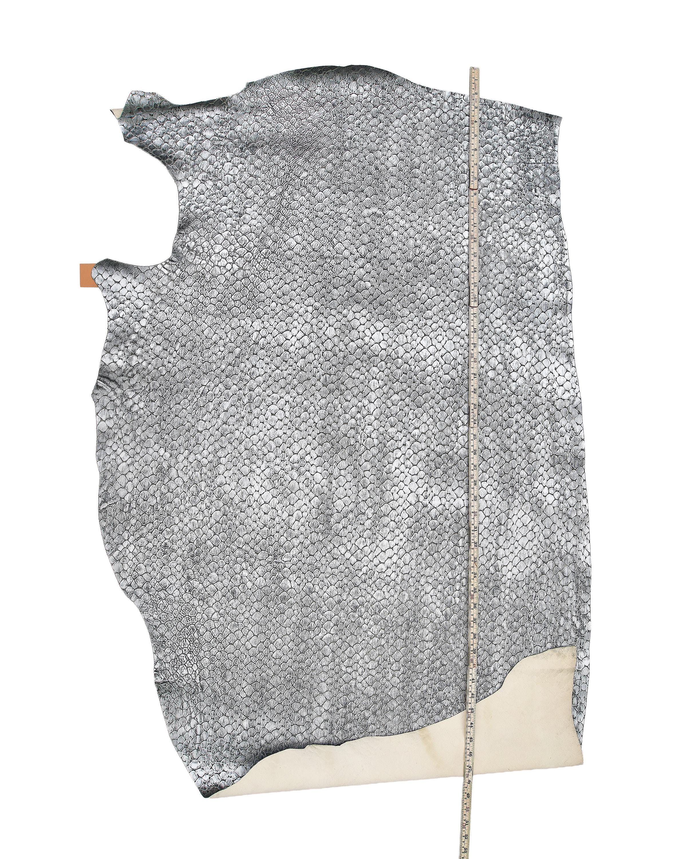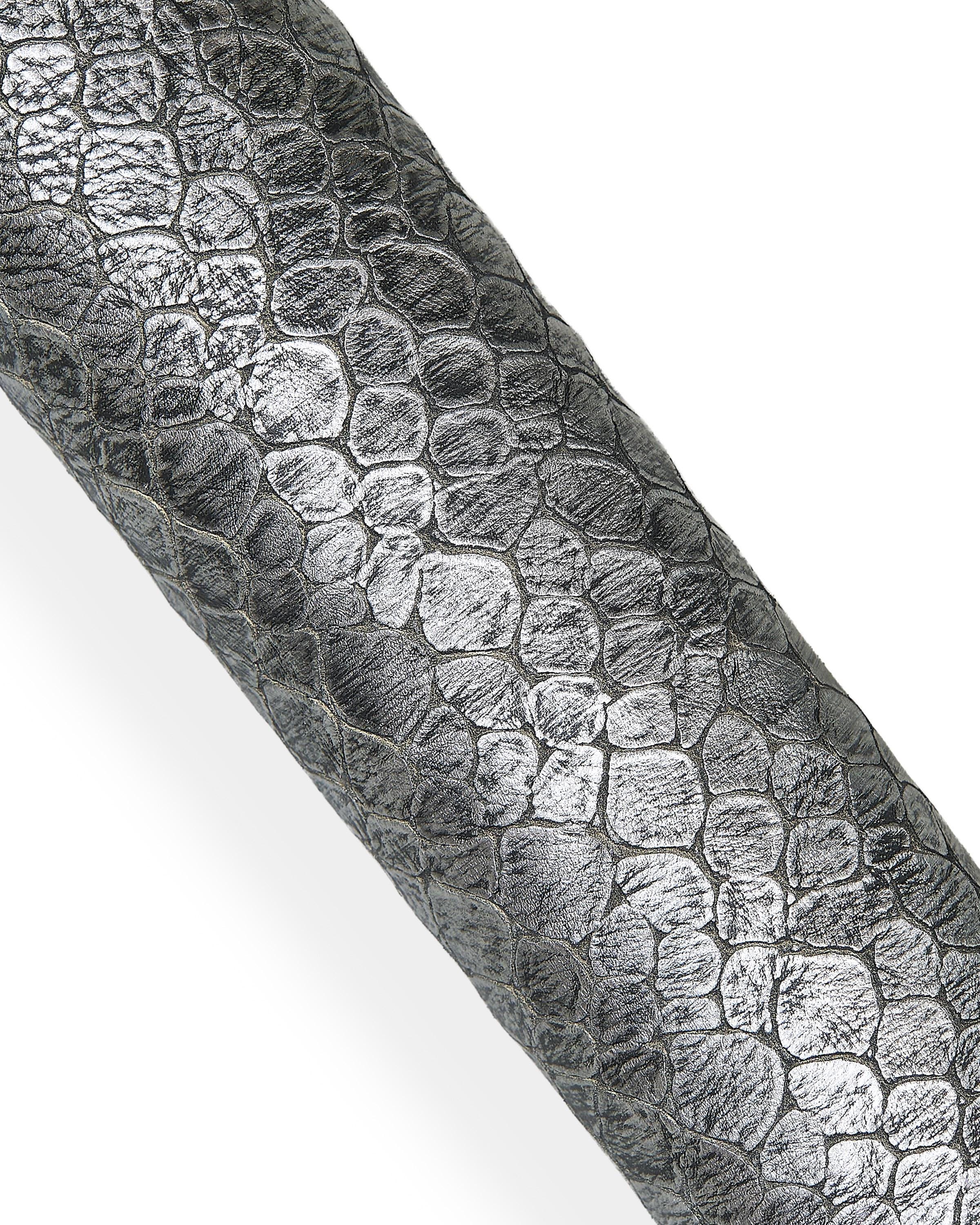 Special steelmetal crcodile embossed leather hide, grey soft metallic cowhide, vintage aged calfskin for DIY projects.