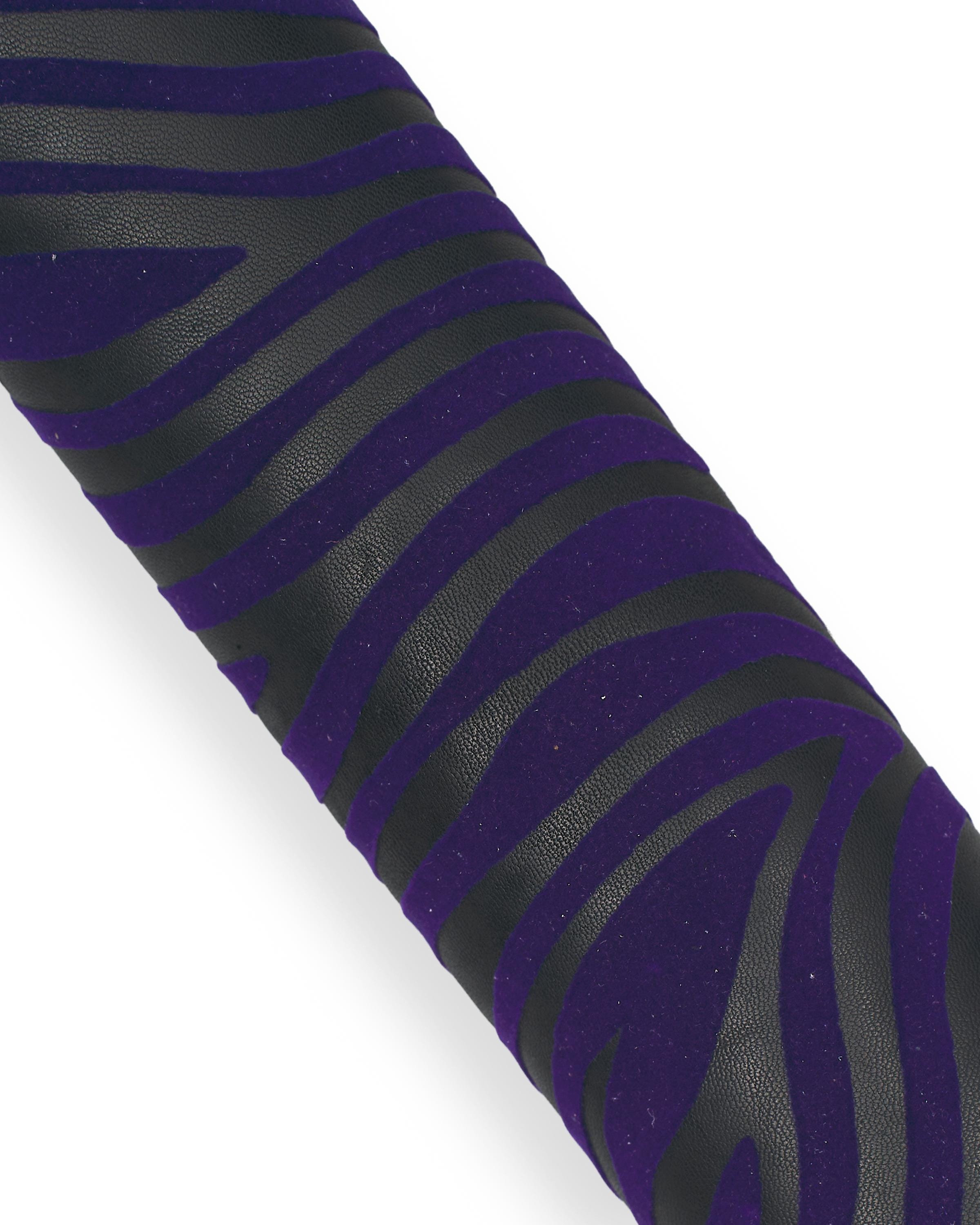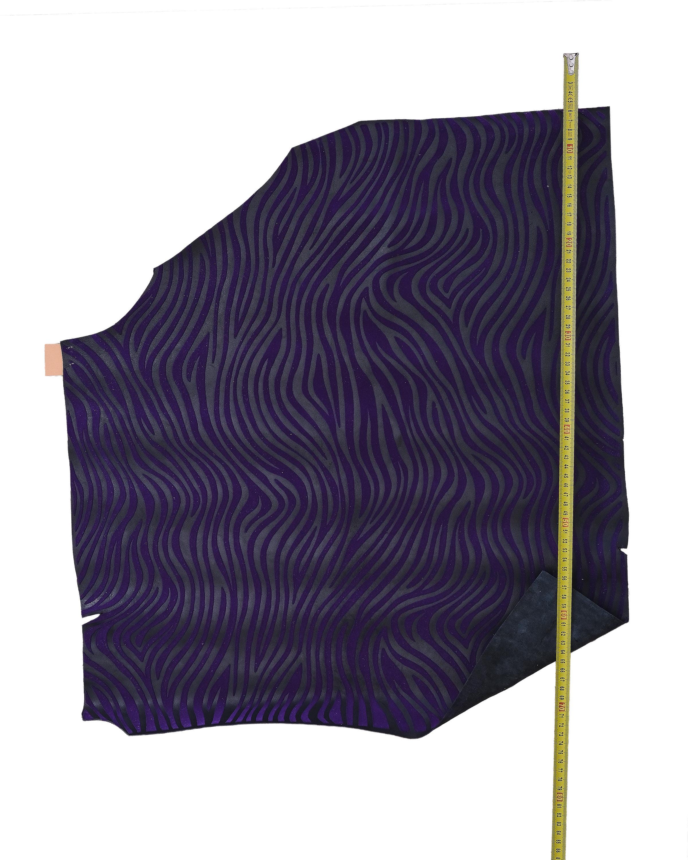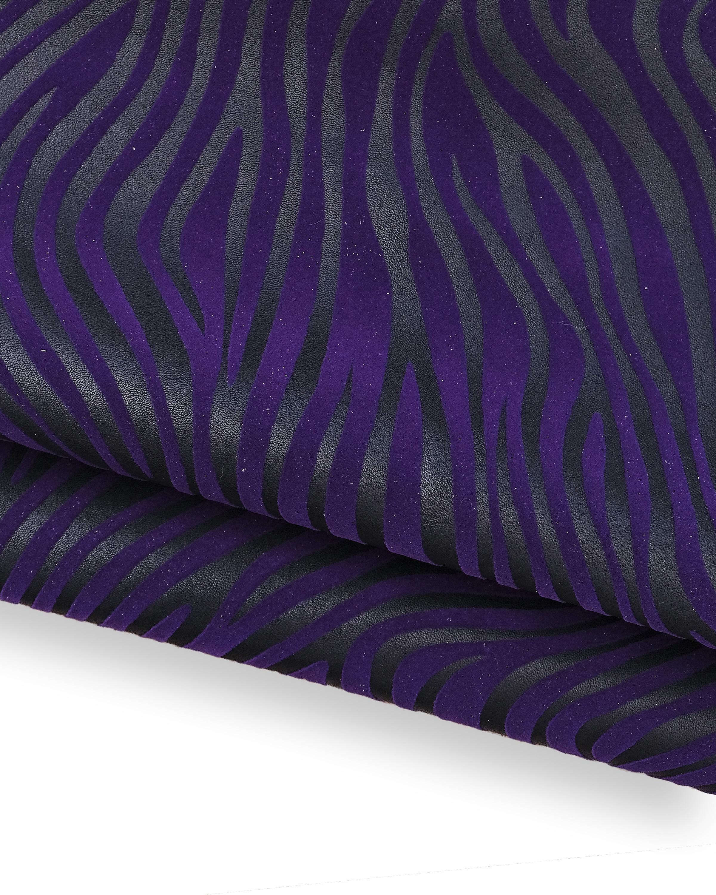 Fabulous purple and black goatskin with zebra flock print, soft.