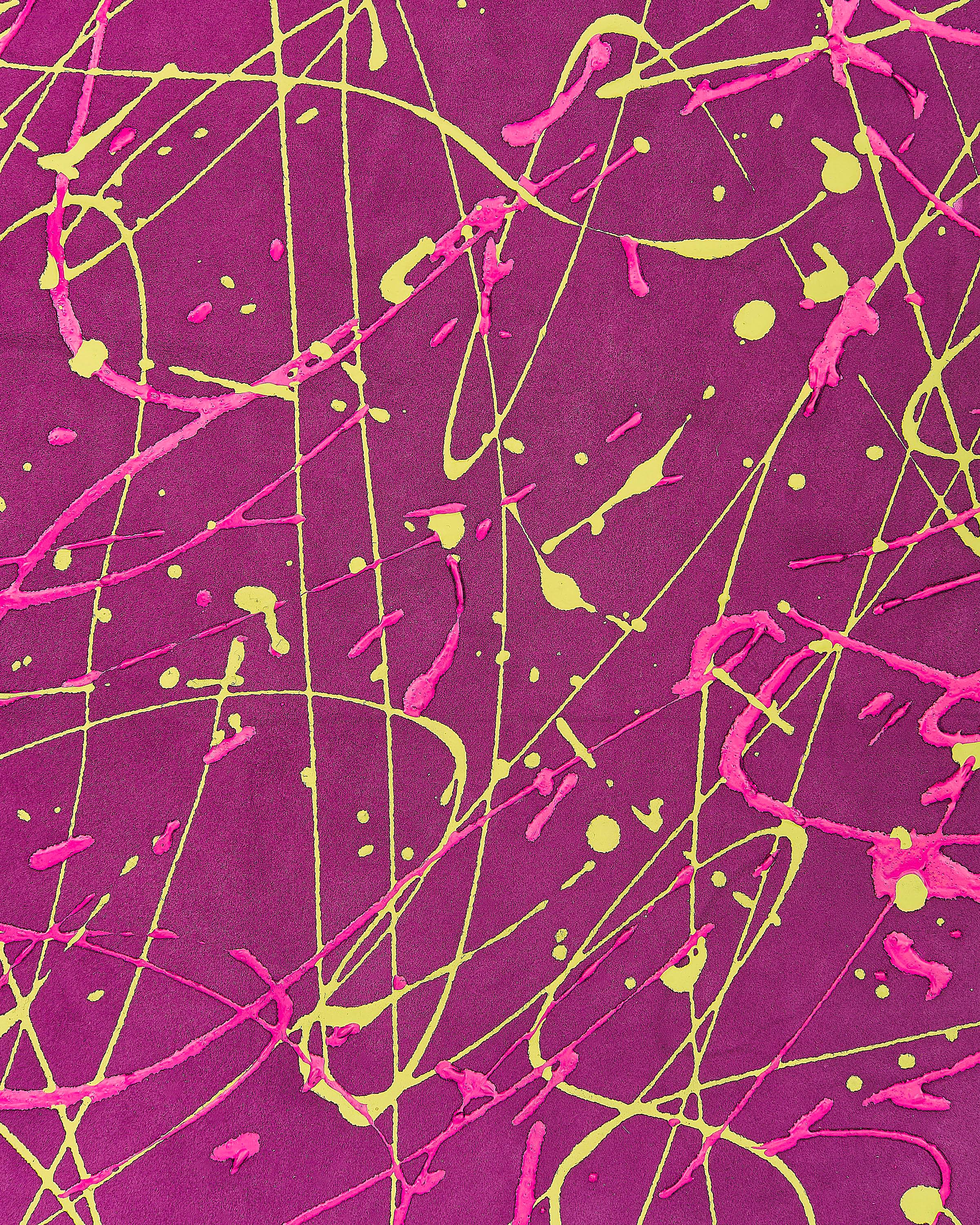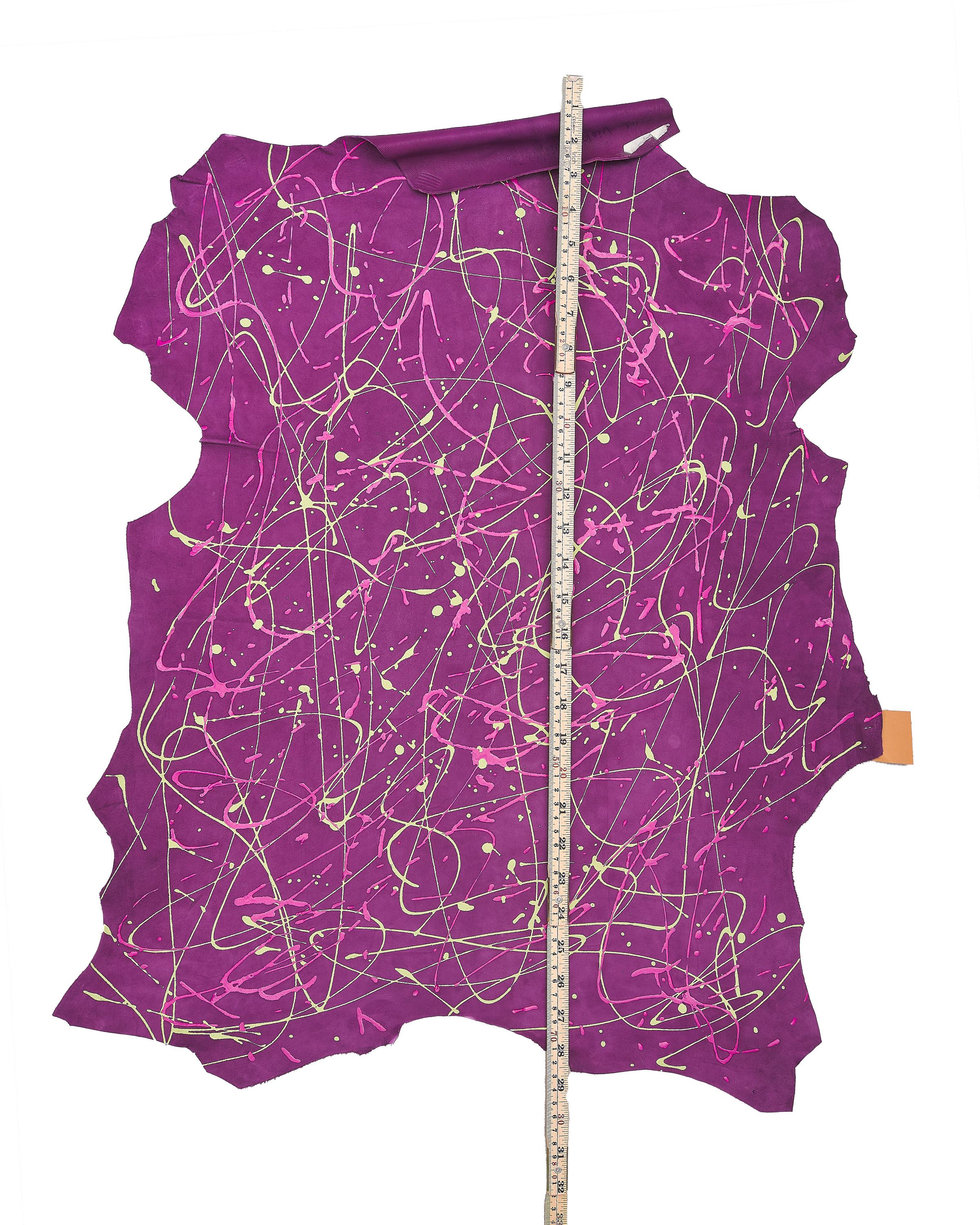 Outstanding purple - green hand made leather skin, schetch - pollock print on suede goatskin, unique leather for hobbyists.