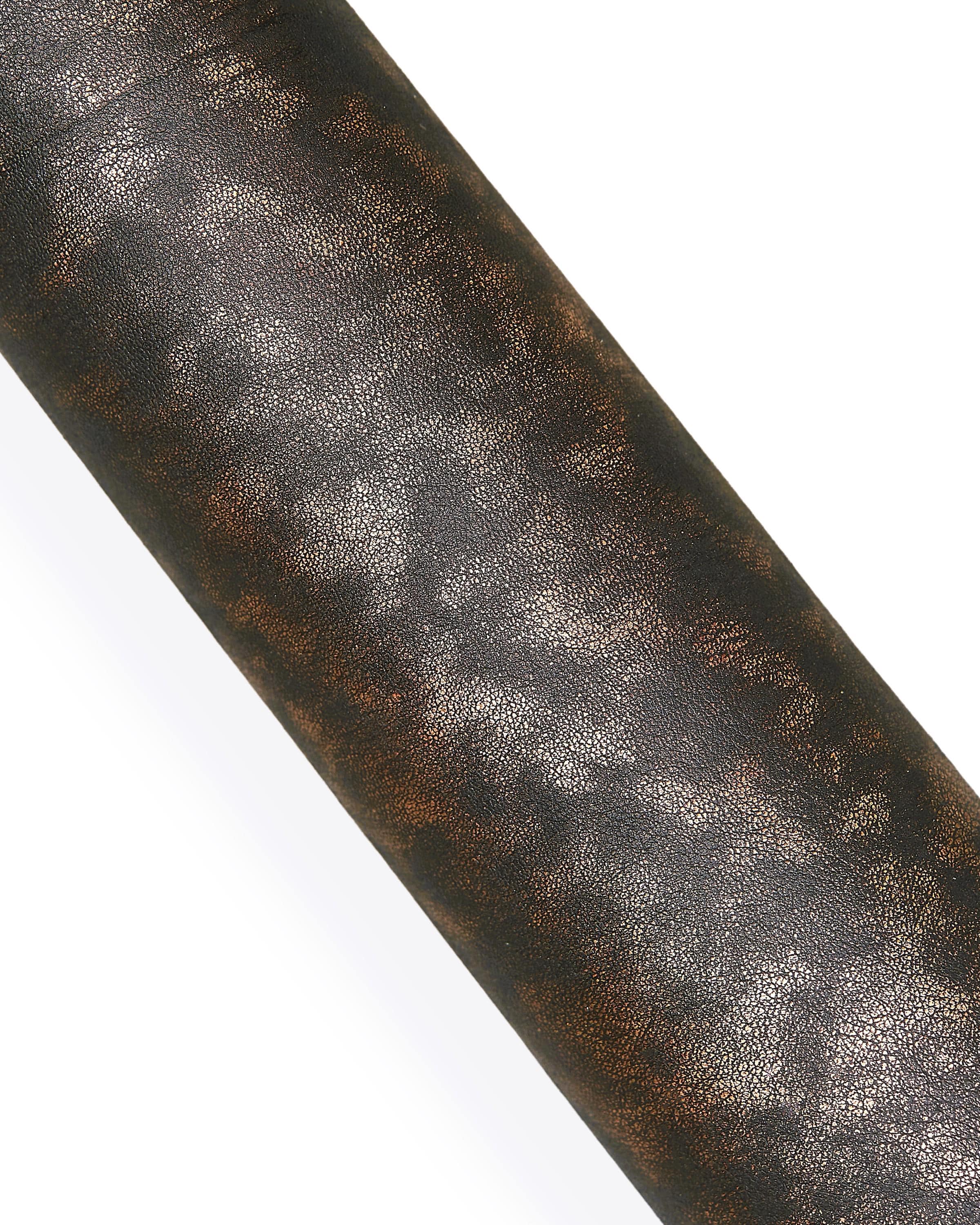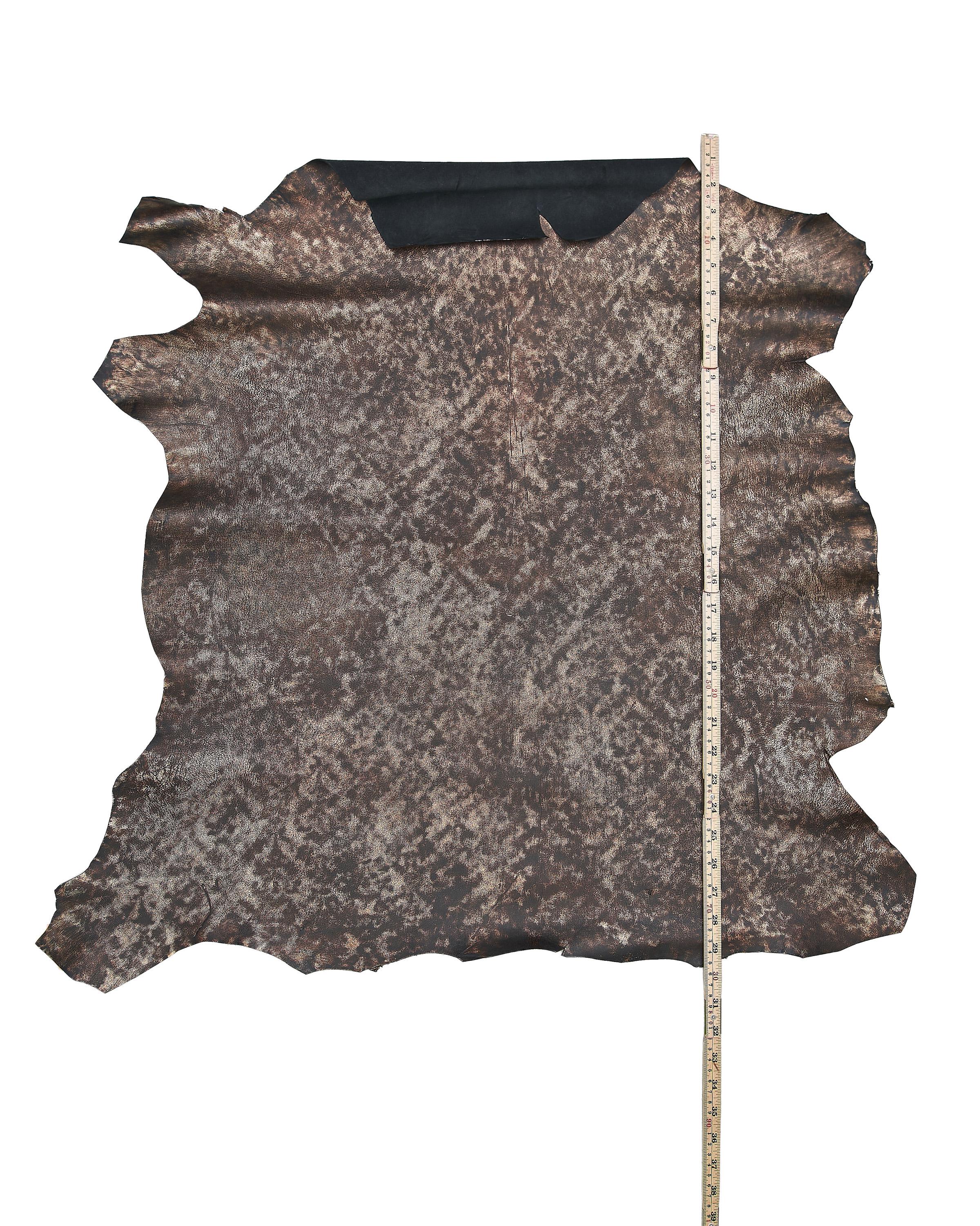 Stunning bronze - black spotted leather skin, soft metallic goatskin, aged vintage finish on hide.