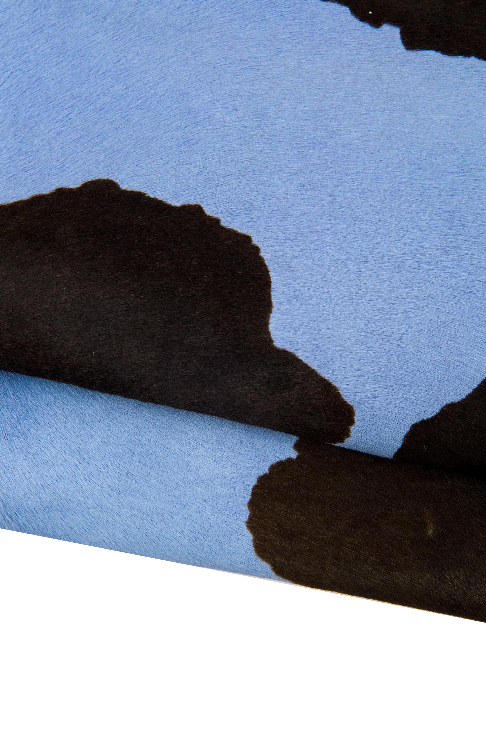 Rare cow printed hair on leather hide, light blue - brown animal texture on soft pony calfskin, ideal for crafters .