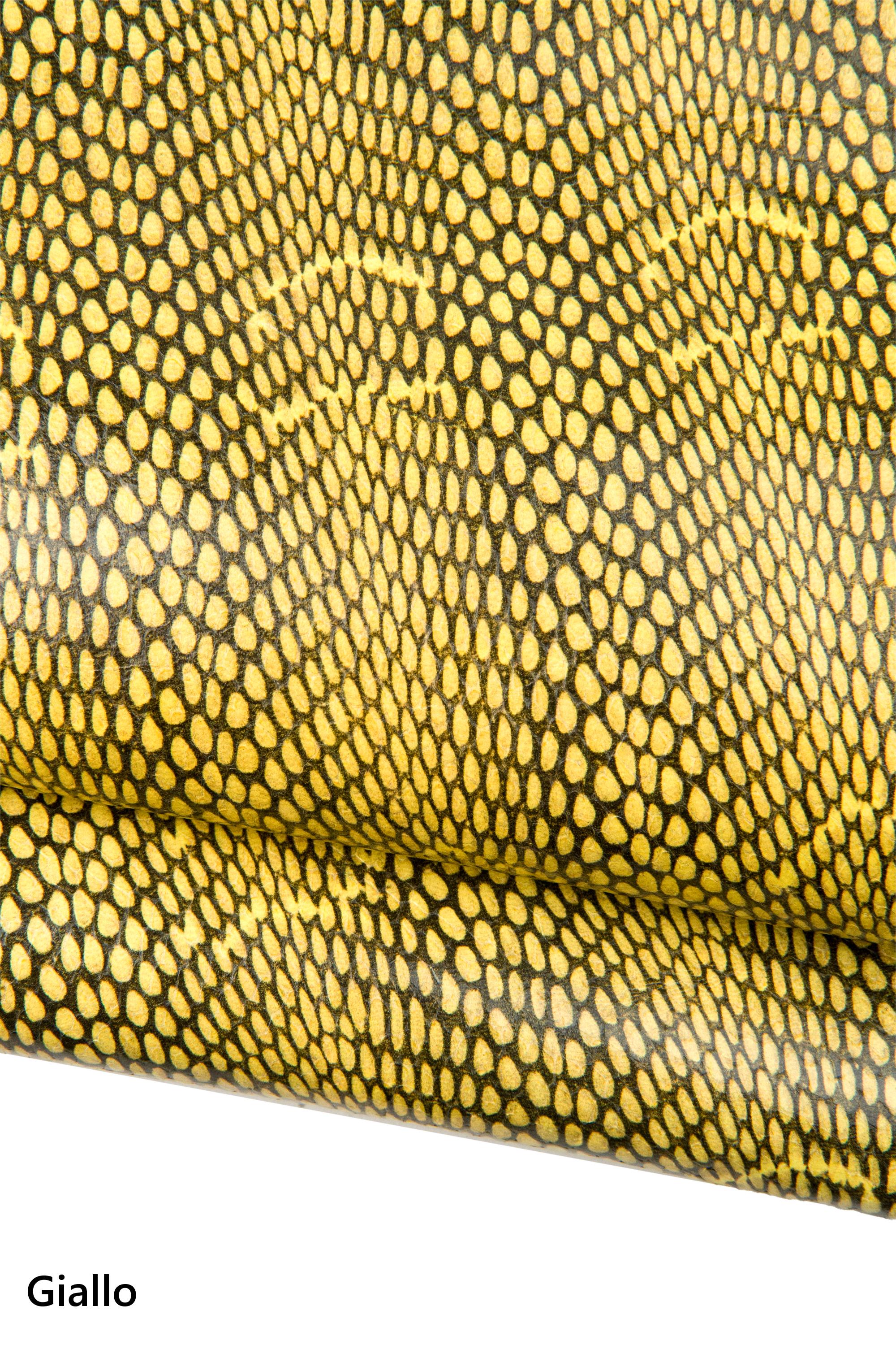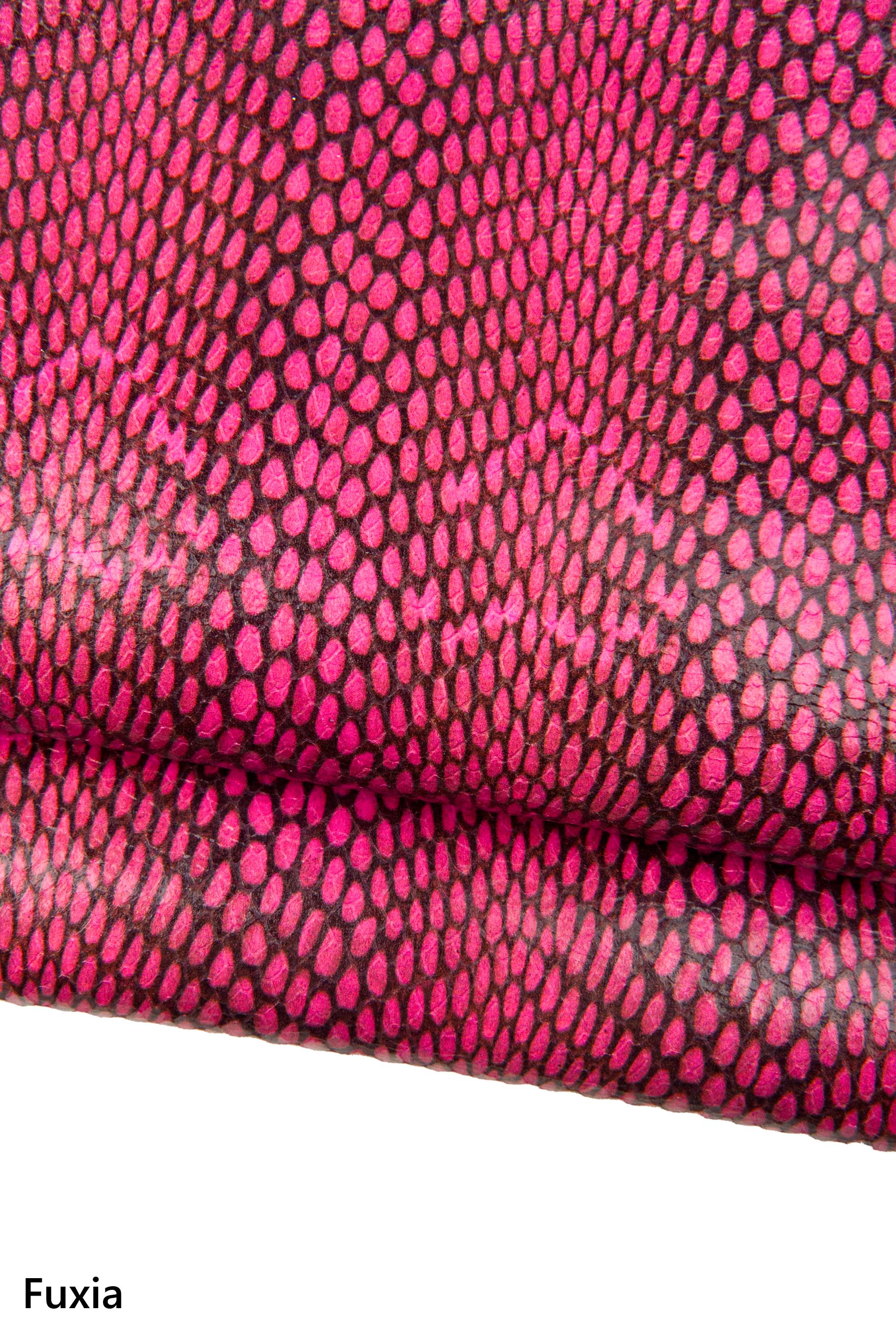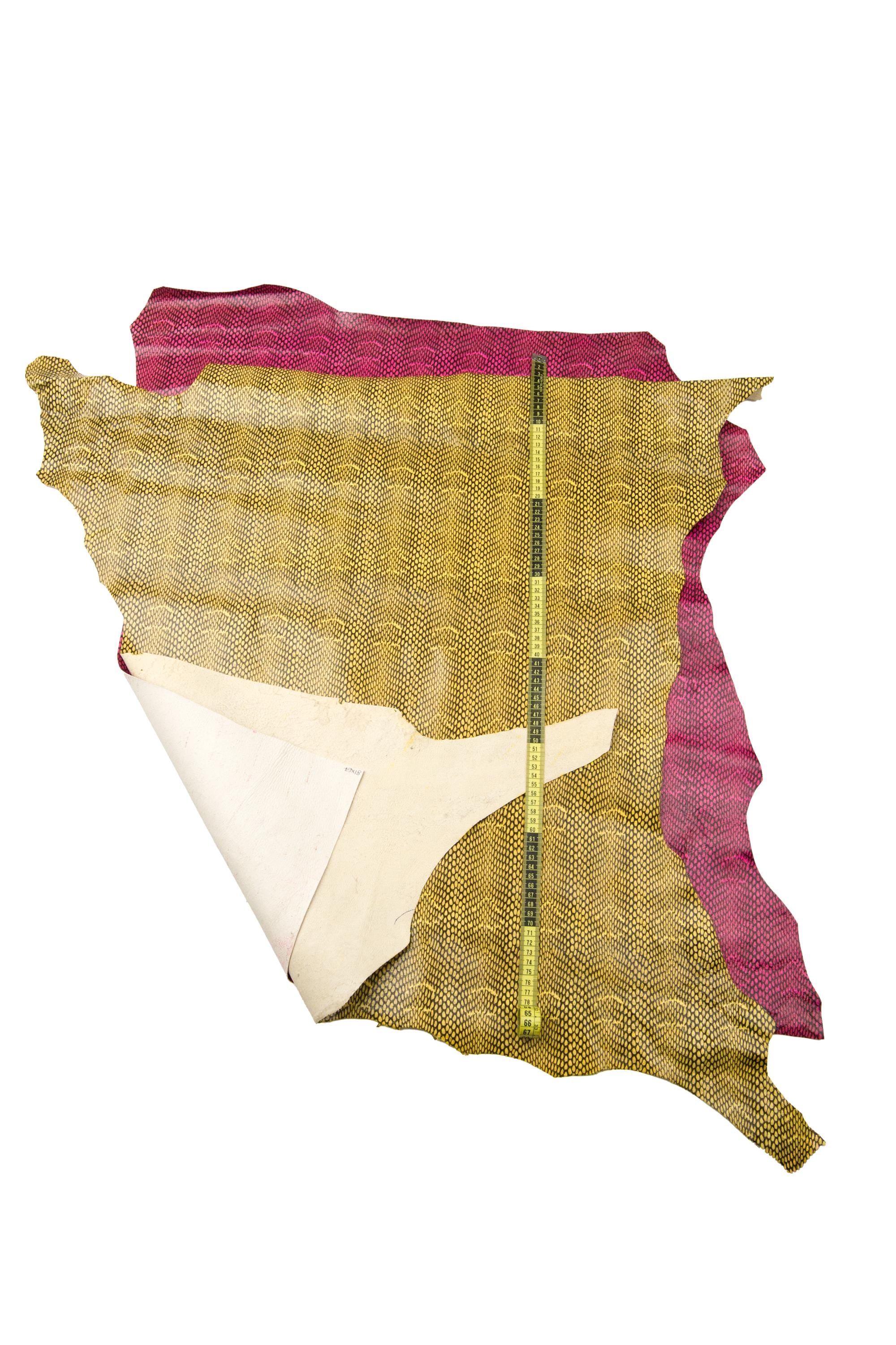 Incredible reptile printed leather skin, fuxia / yellow glossy snake textured goatskin, soft snakeskin for DIY projects.