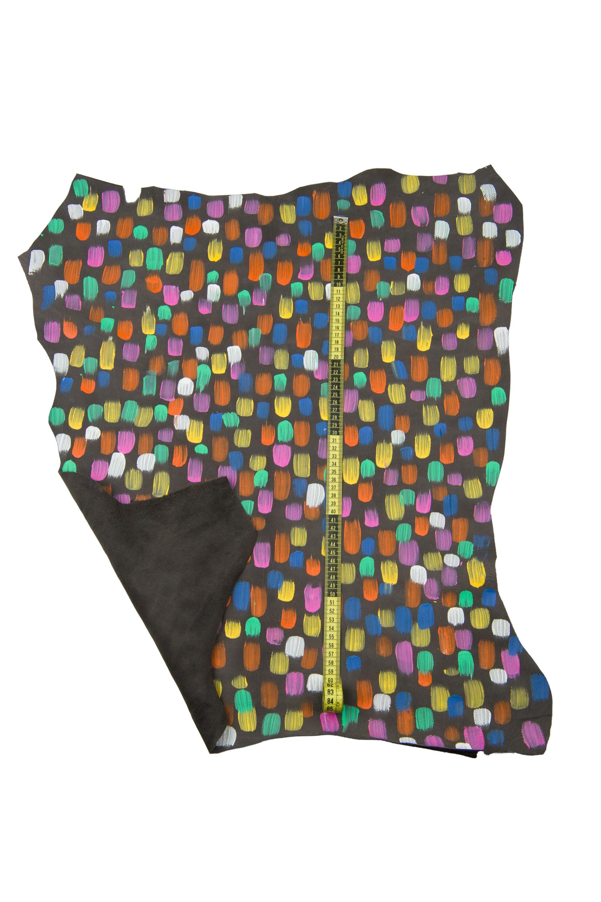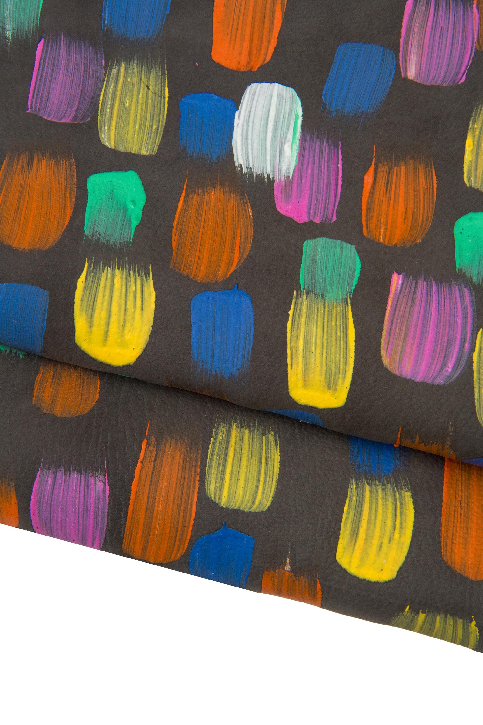 Stunning peculiar multicolor leather skin, hand painted super soft goatskin, artistic matt hide for hobbyists.