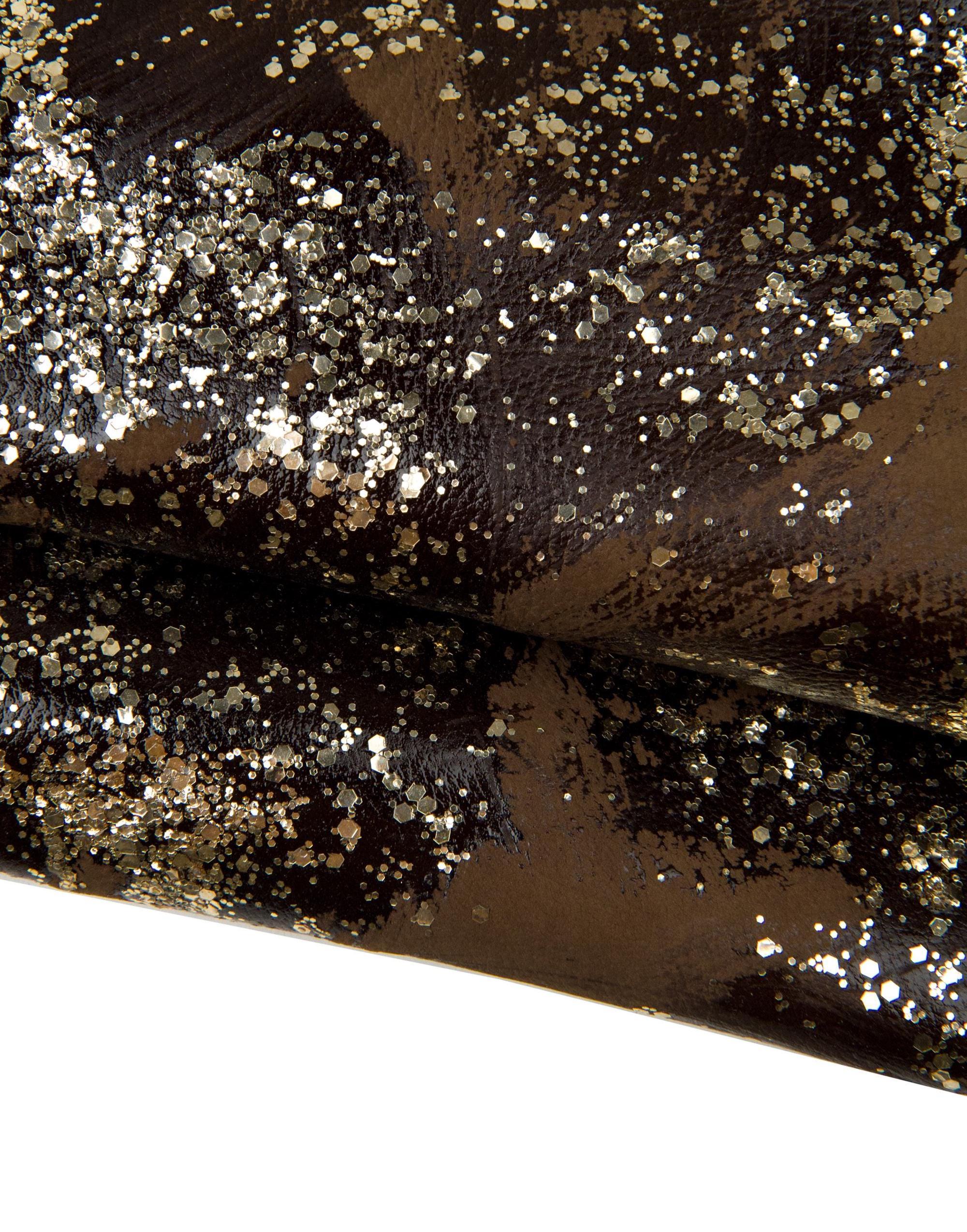 Outstanding brown artistic leather skin - gold glitter, hand - decorated suede nubuck goatskin, metallic soft hide for diy projects.