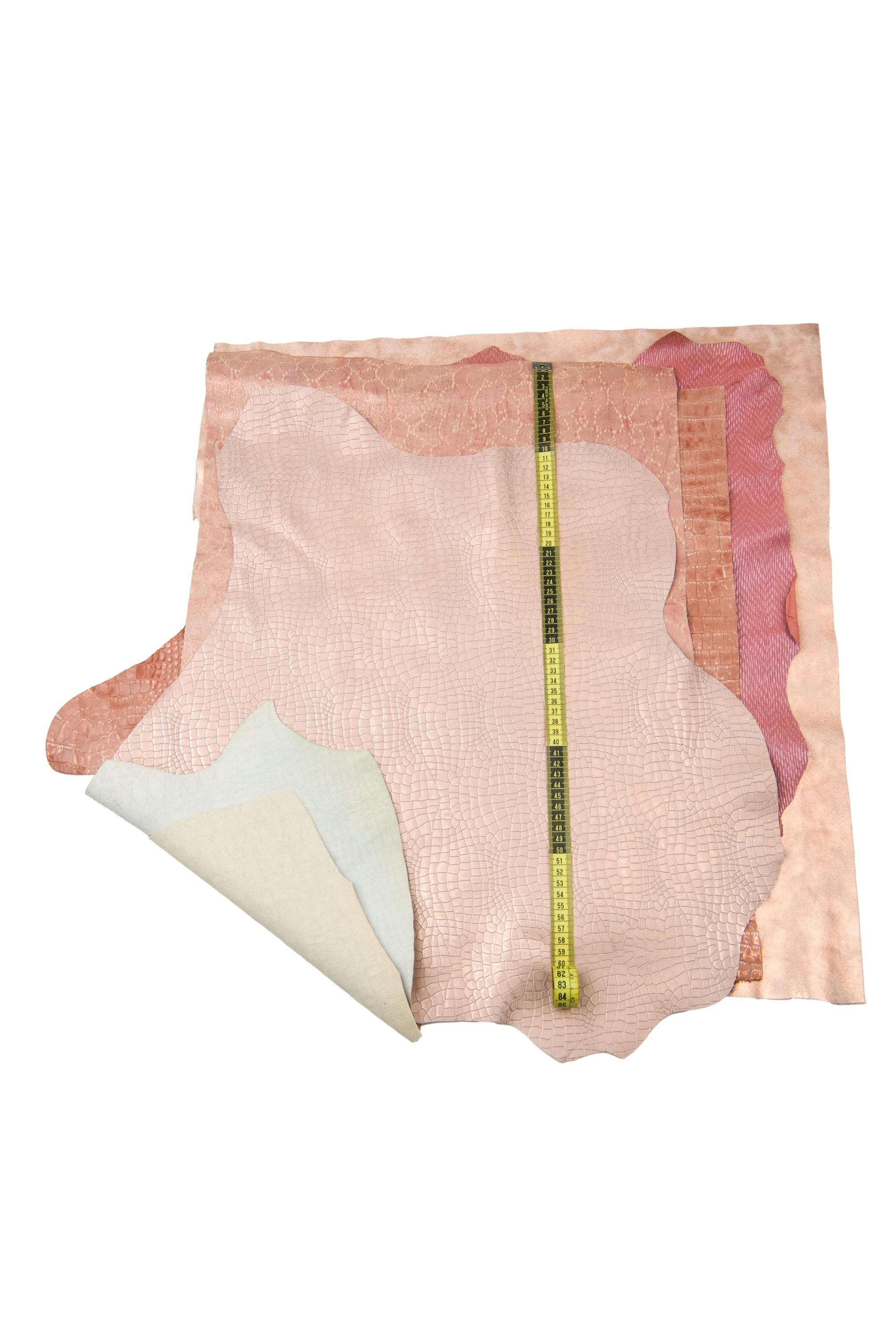 Outstanding bundle of 5 pink luxurious leather skins, metallic printed matching goatskins as per picture, ideal for crafting.
