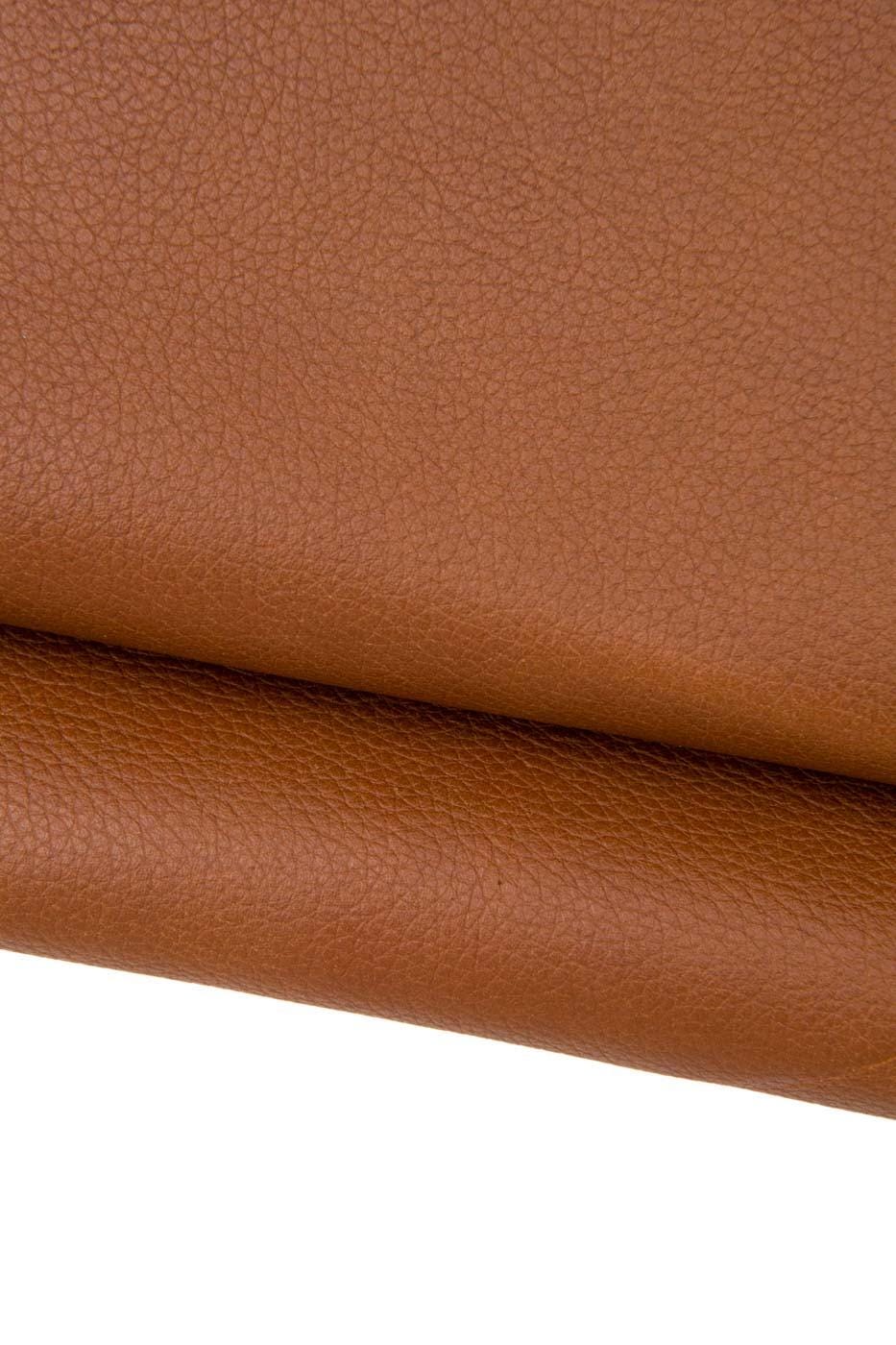 Incredible tan pebble grain printed cowhide, brown soft semi glossy leather hide, natural thick calfskin.