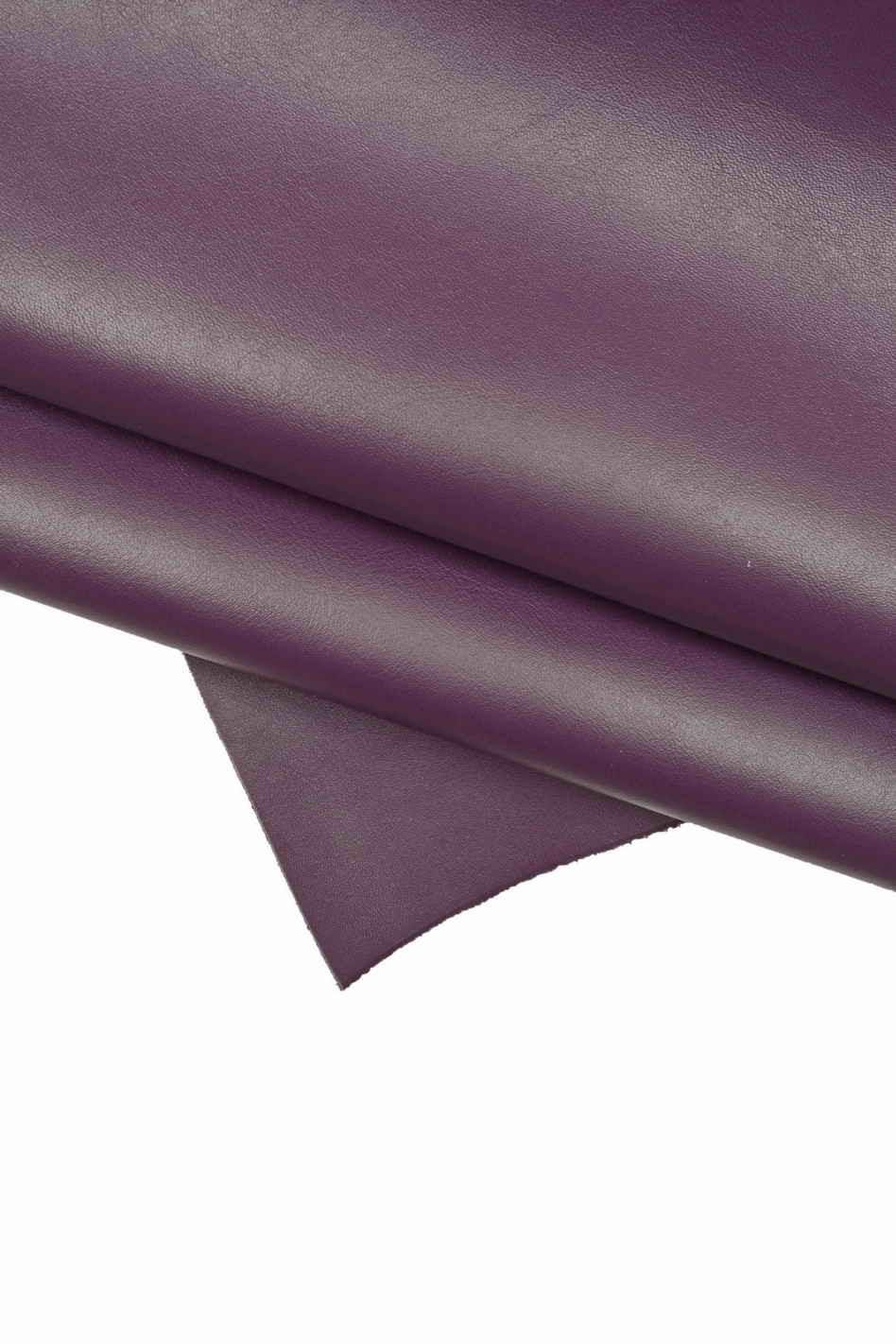 Particular purplish burgundy leather hide, smooth soft solid color cowhide, classic natural calfskin.