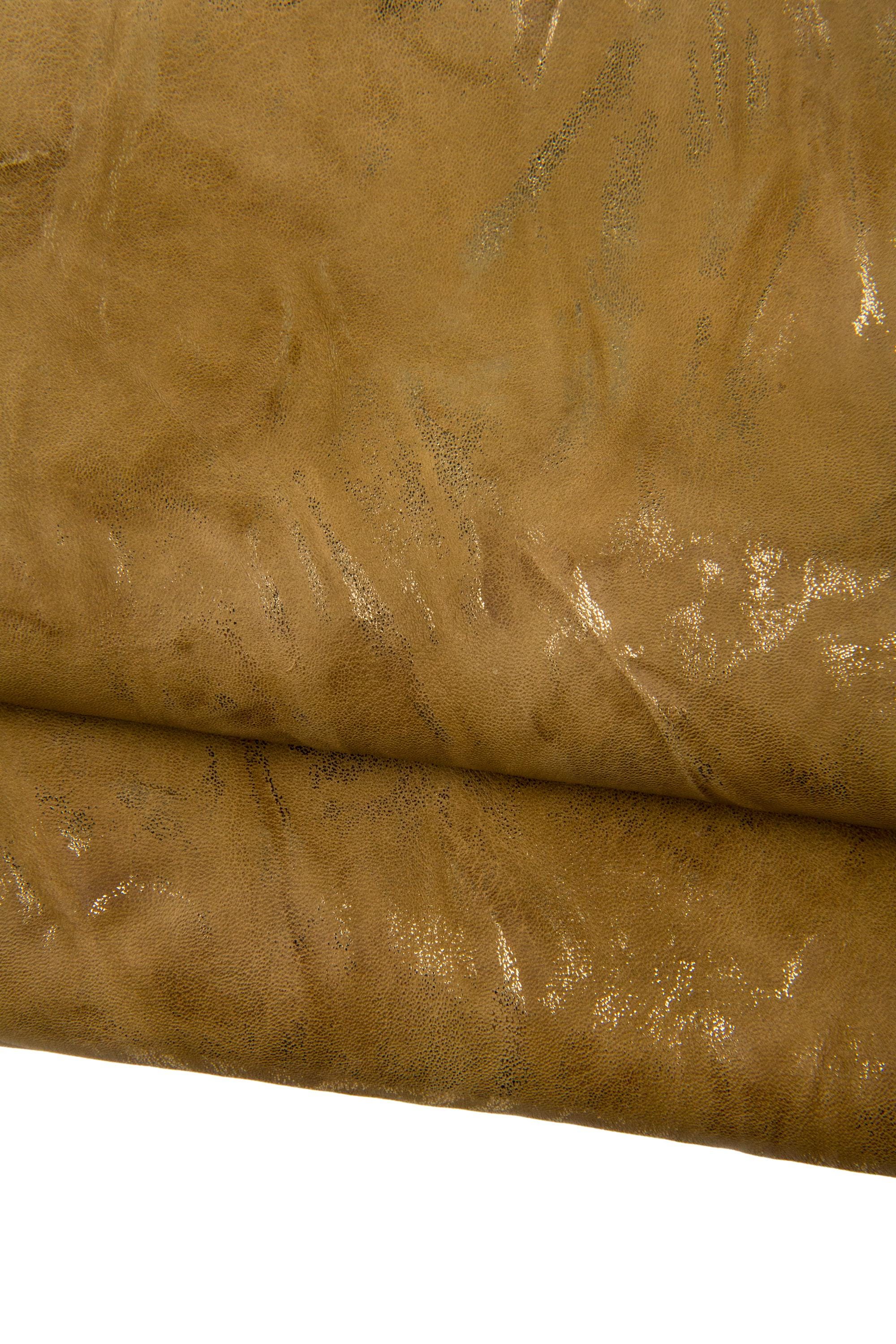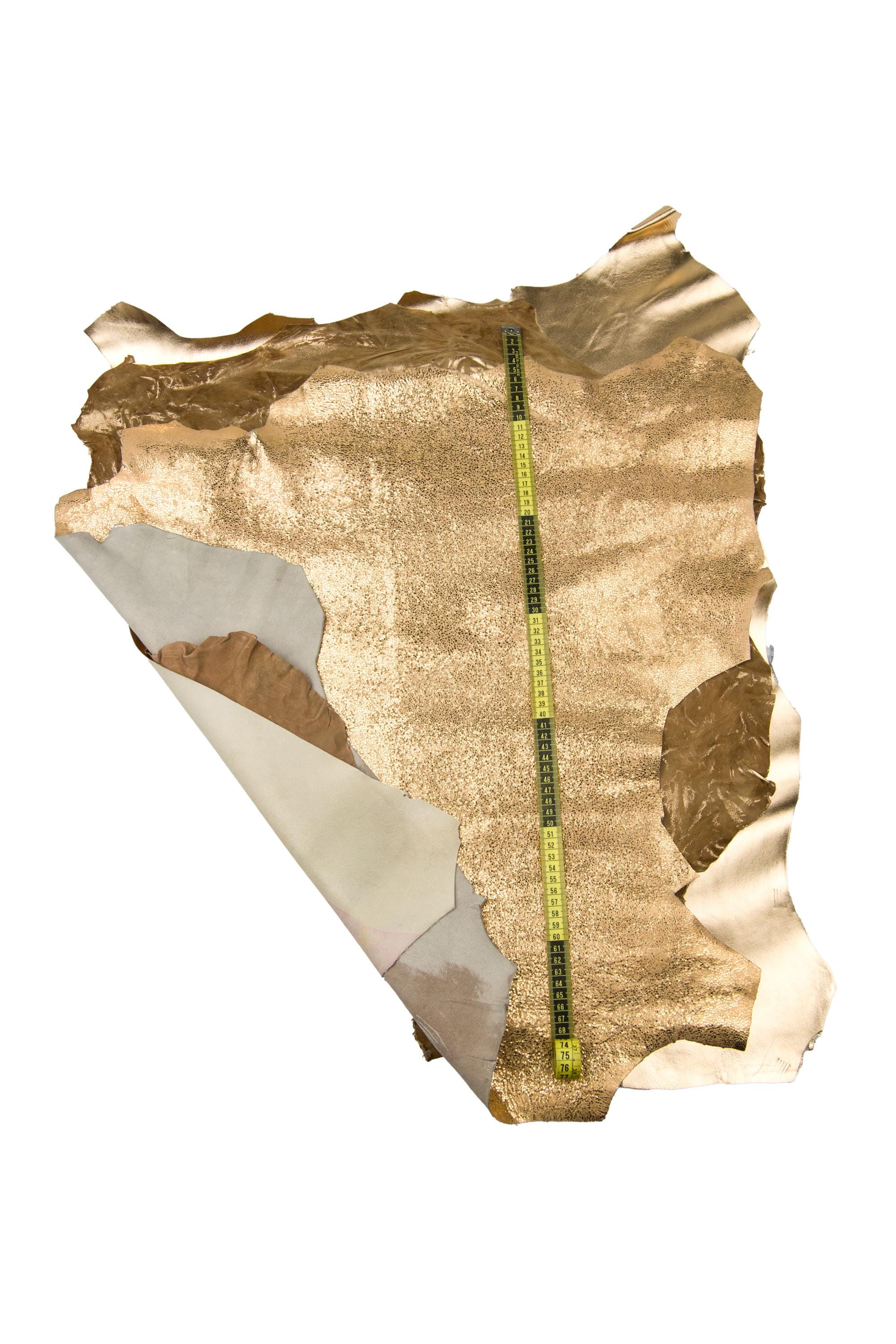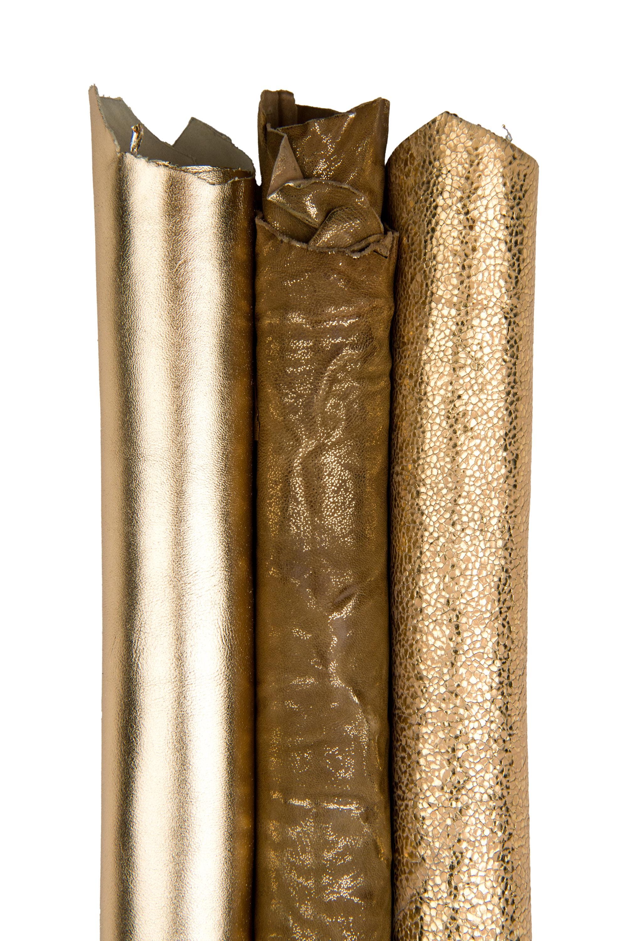 Wonderful set of 3 light gold, beige leather skins, sporty metallic printed goatskins, top quality soft bright materials, as per picture.