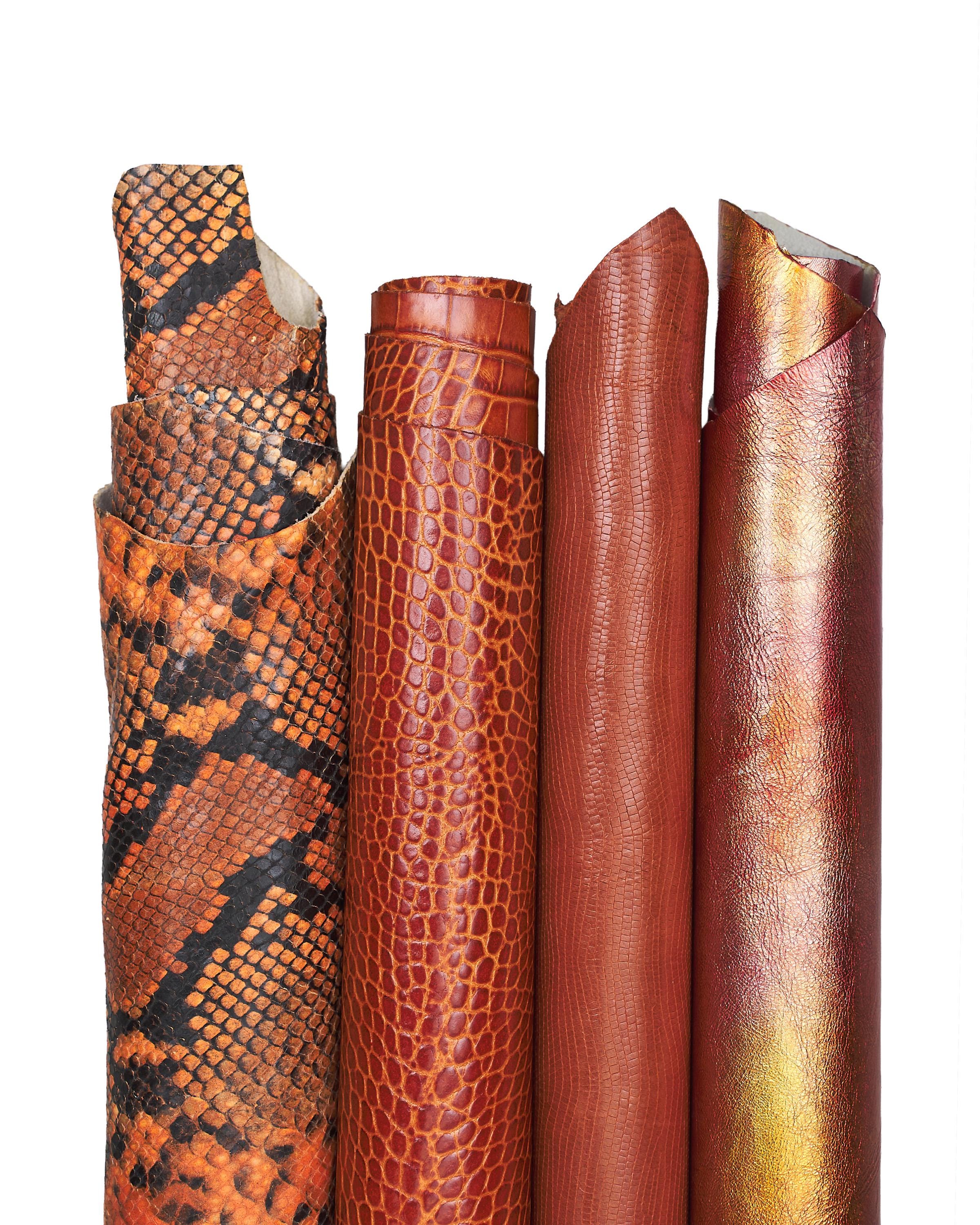 Stunning lot of 4 matching orange hides, metallic and printed reptile skins for hobbyists.