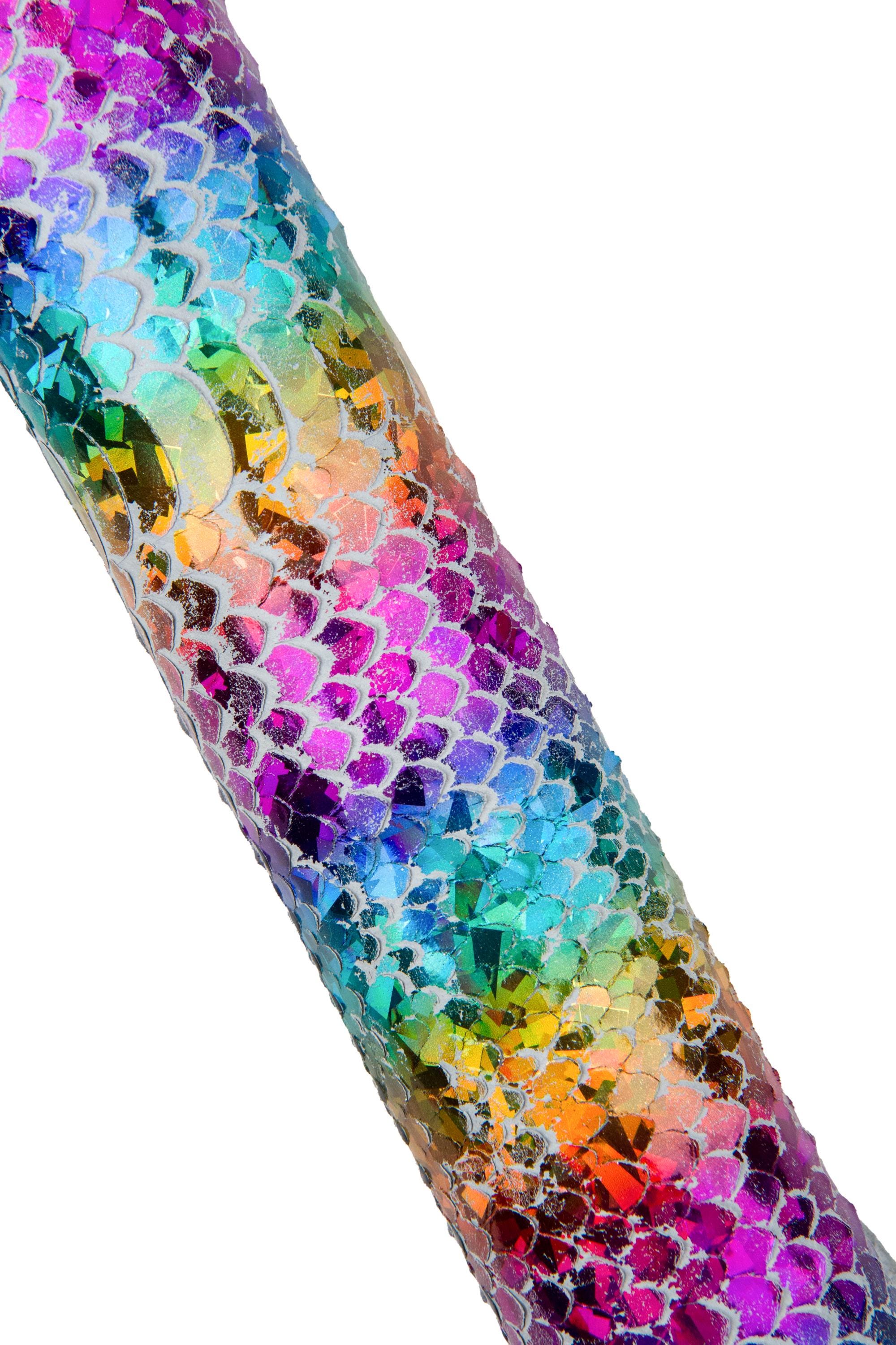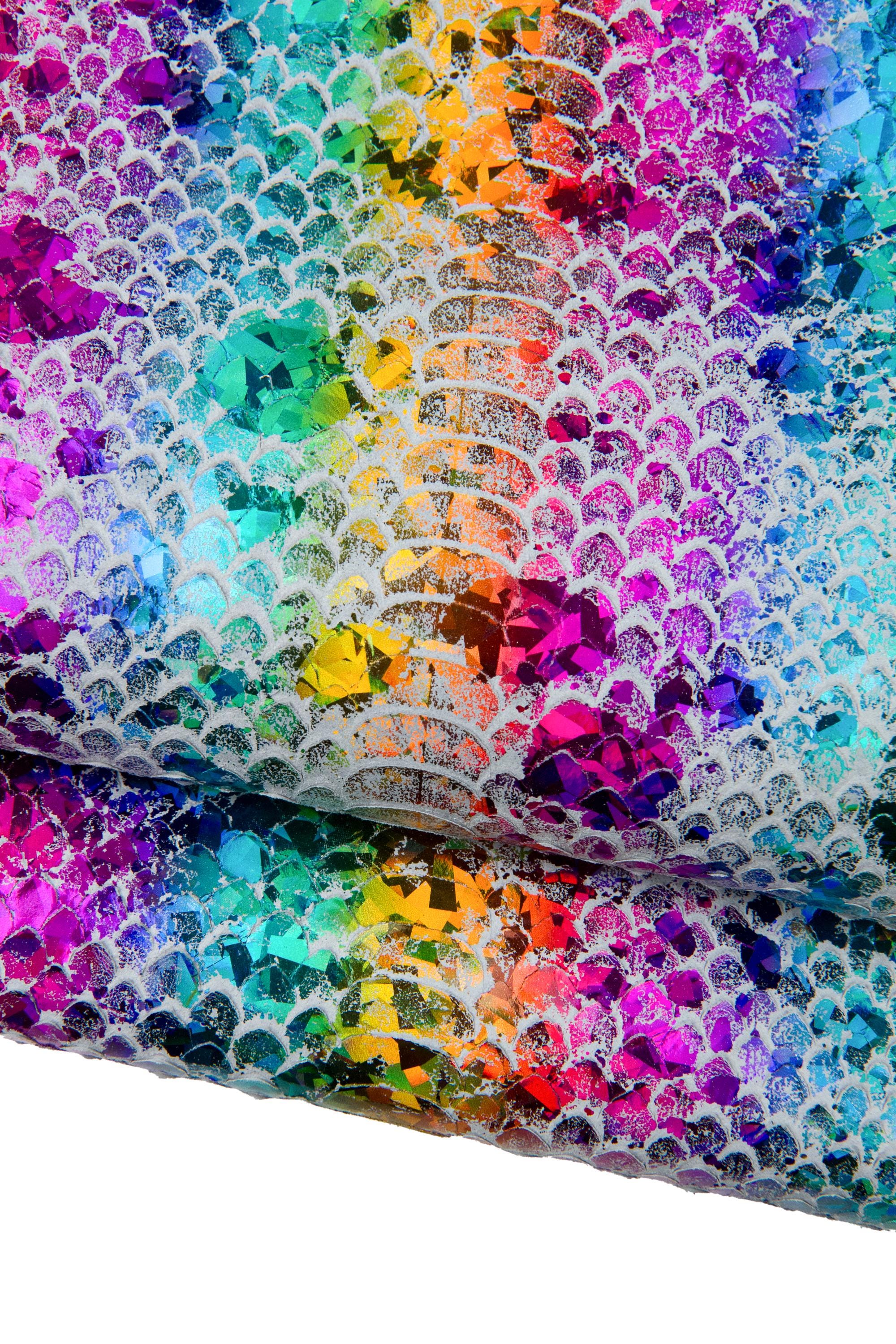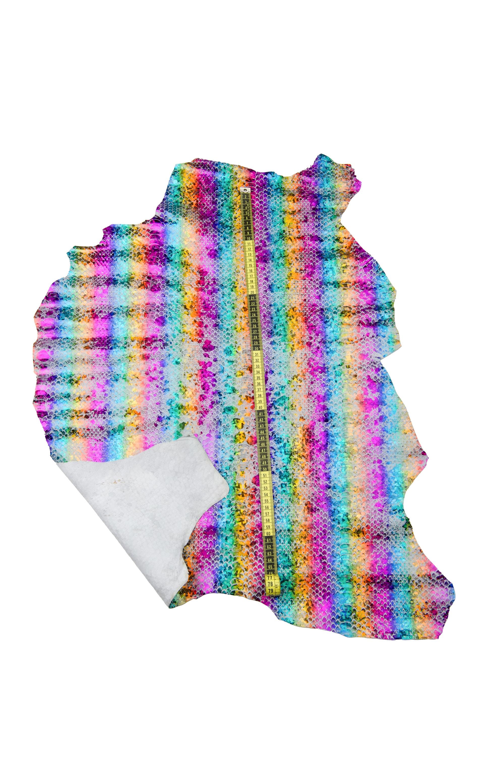 Outstanding iridescent multicolor python leather skin, capra laminata stampa rettile serpente, pellame metallizzato arcobaleno.