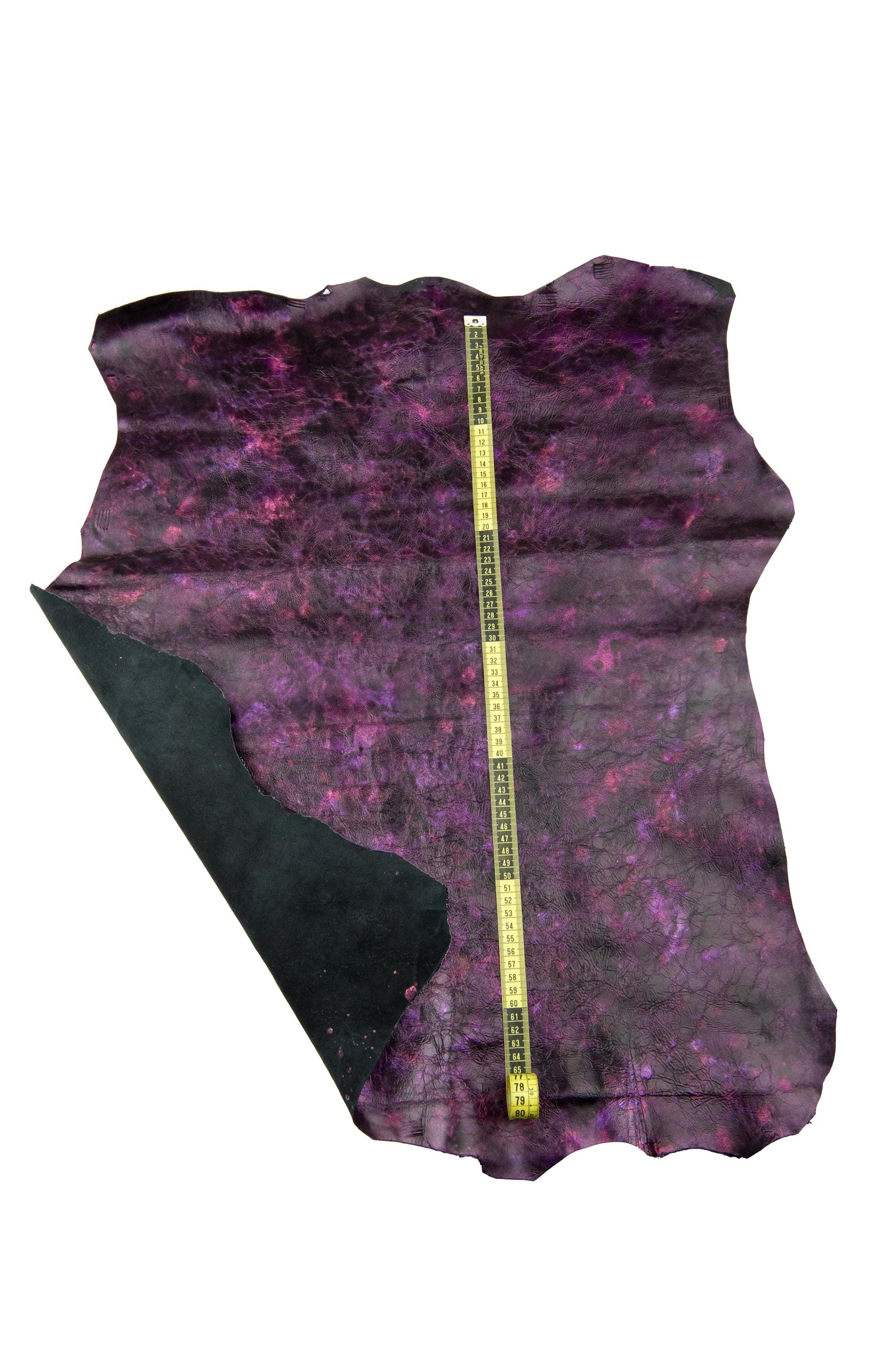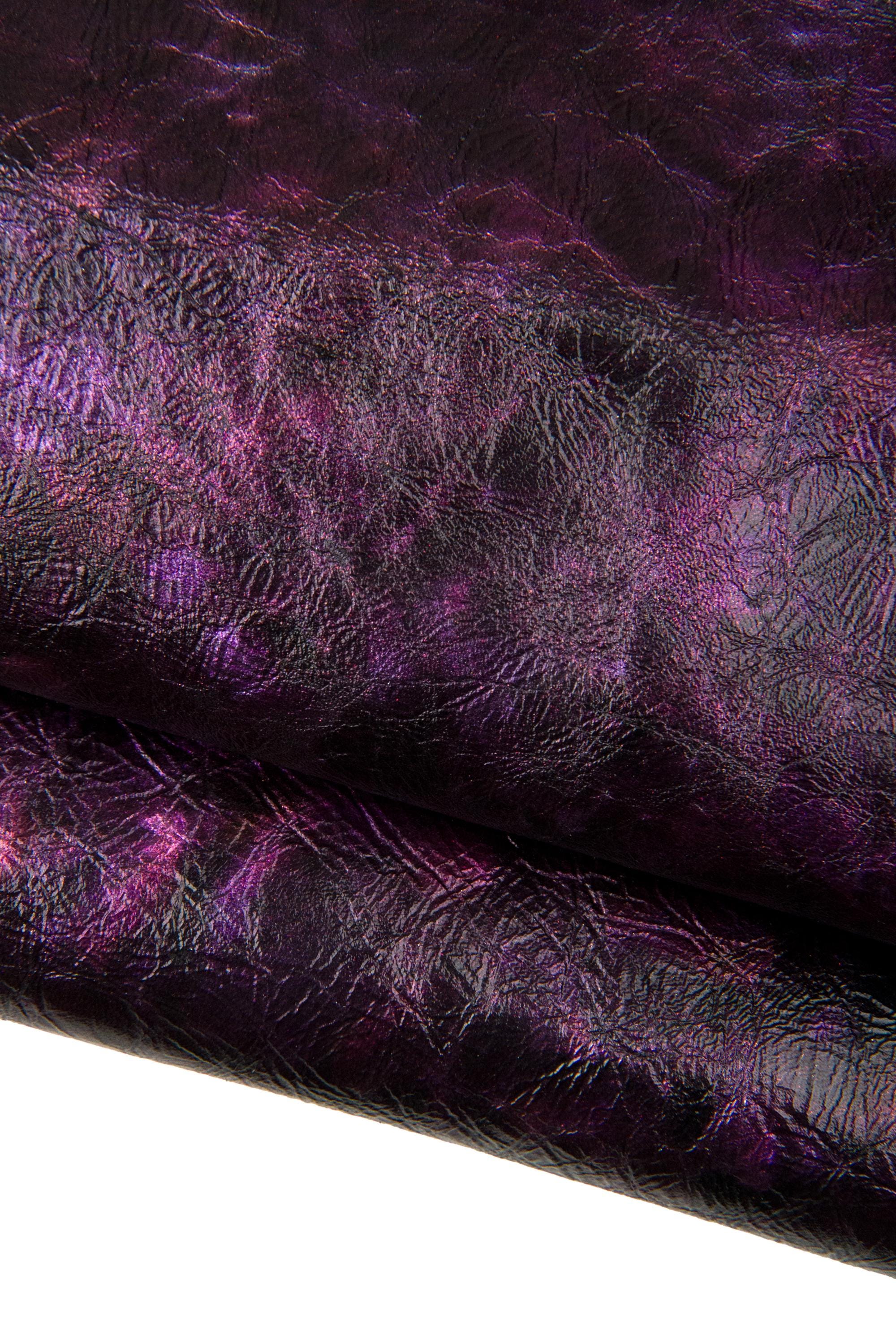Superb purple glossy leather skin, vintage wrinkled goatskin, soft shaded sporty hide for diy projects.