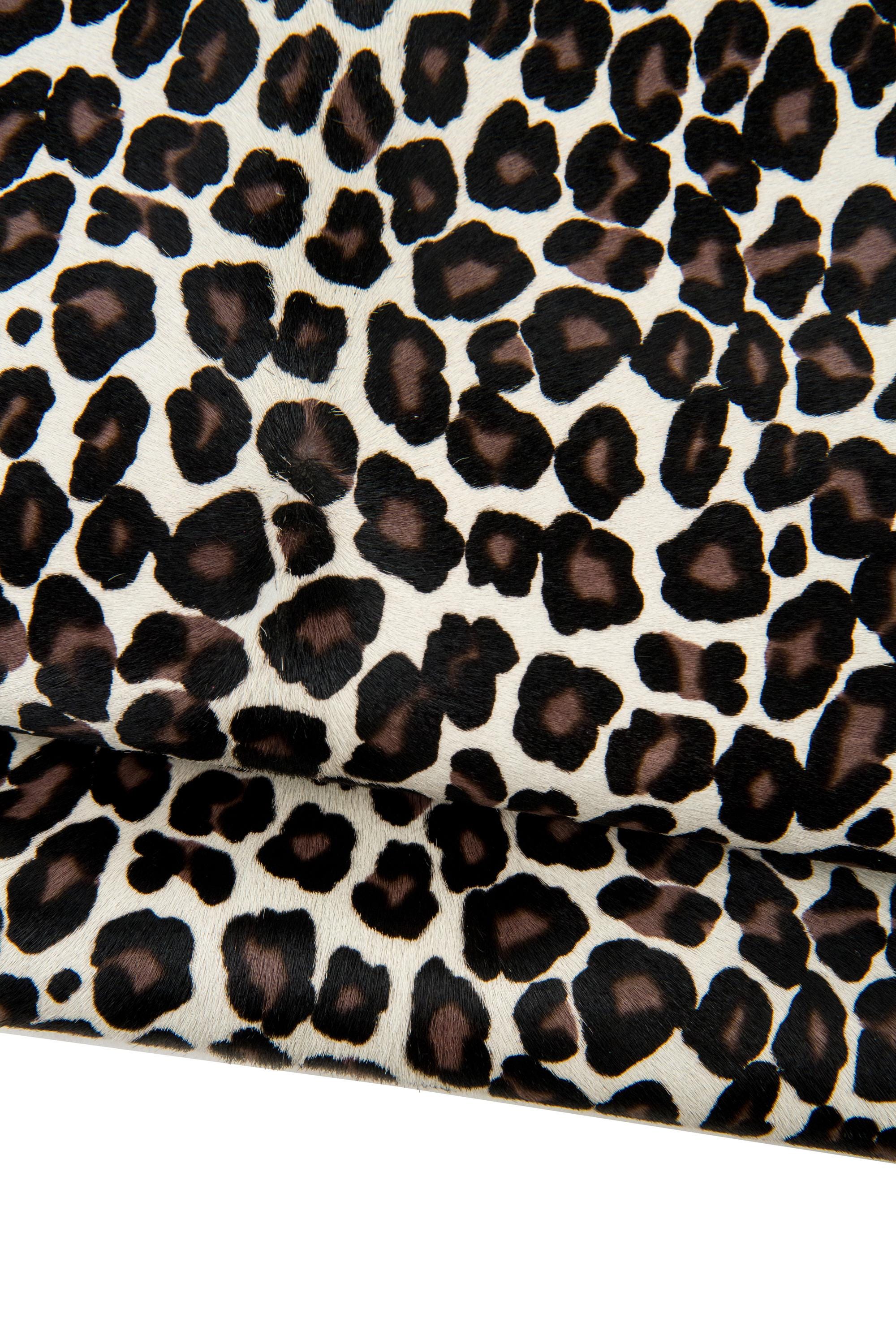 Outstanding leopard printed hair on leather hide, brown - black cheetah texture on cream pony calfskin, cowhide for crafting.