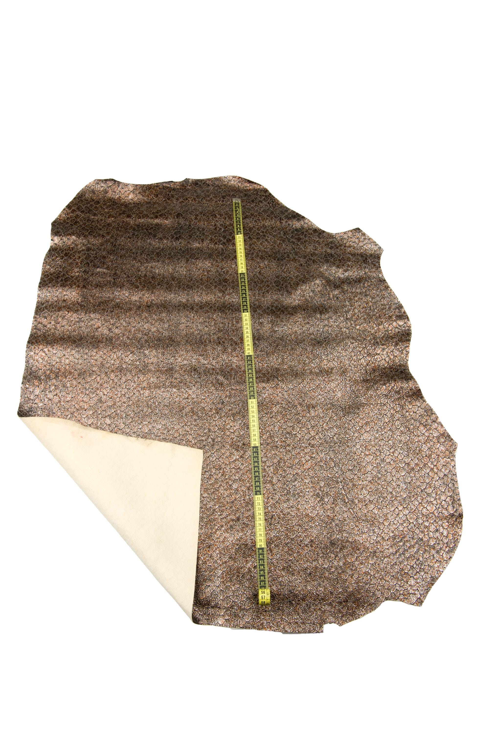 Beautiful brown crocodile embossed leather hide, glossy soft metallic calfskin, animal printed cowhide for crafting.