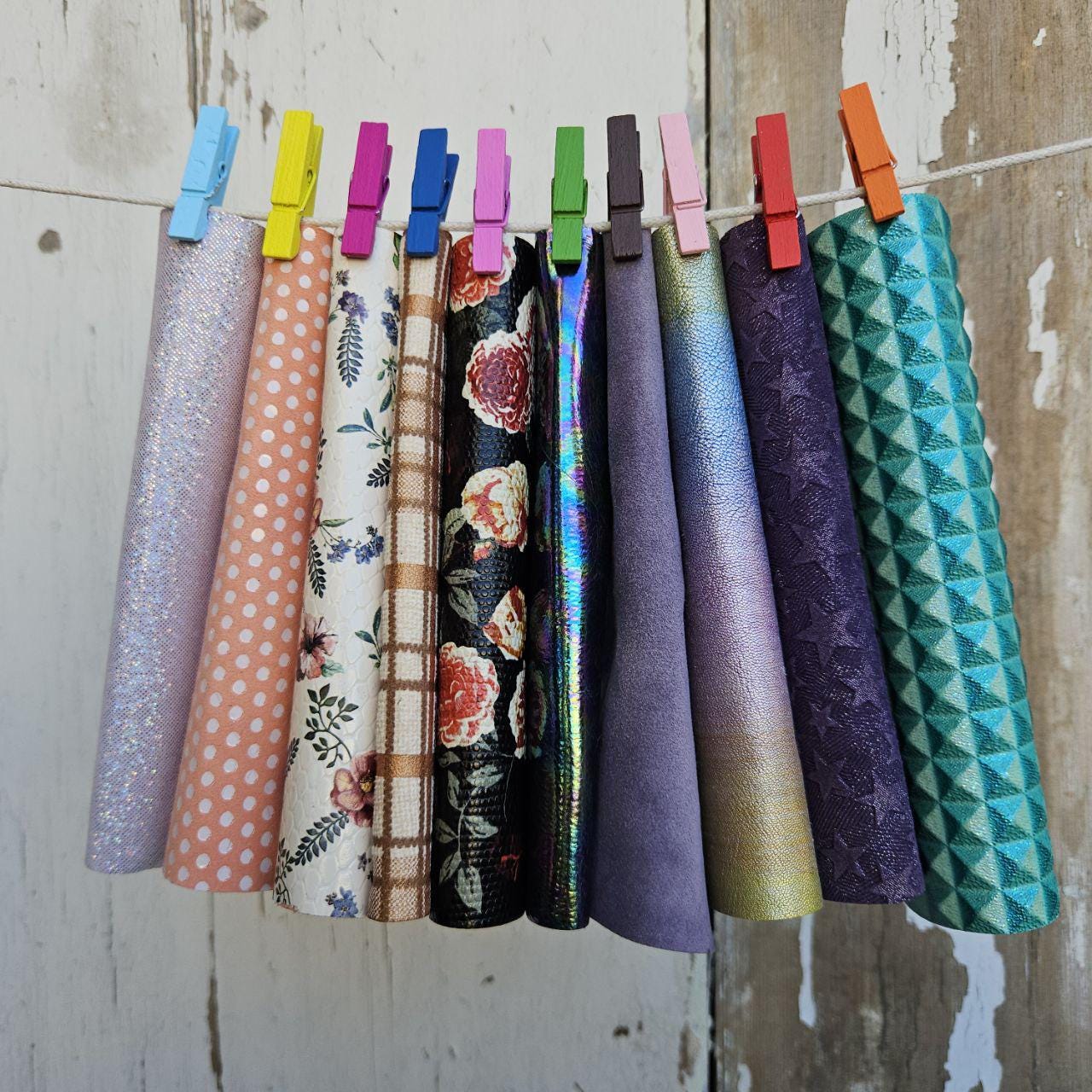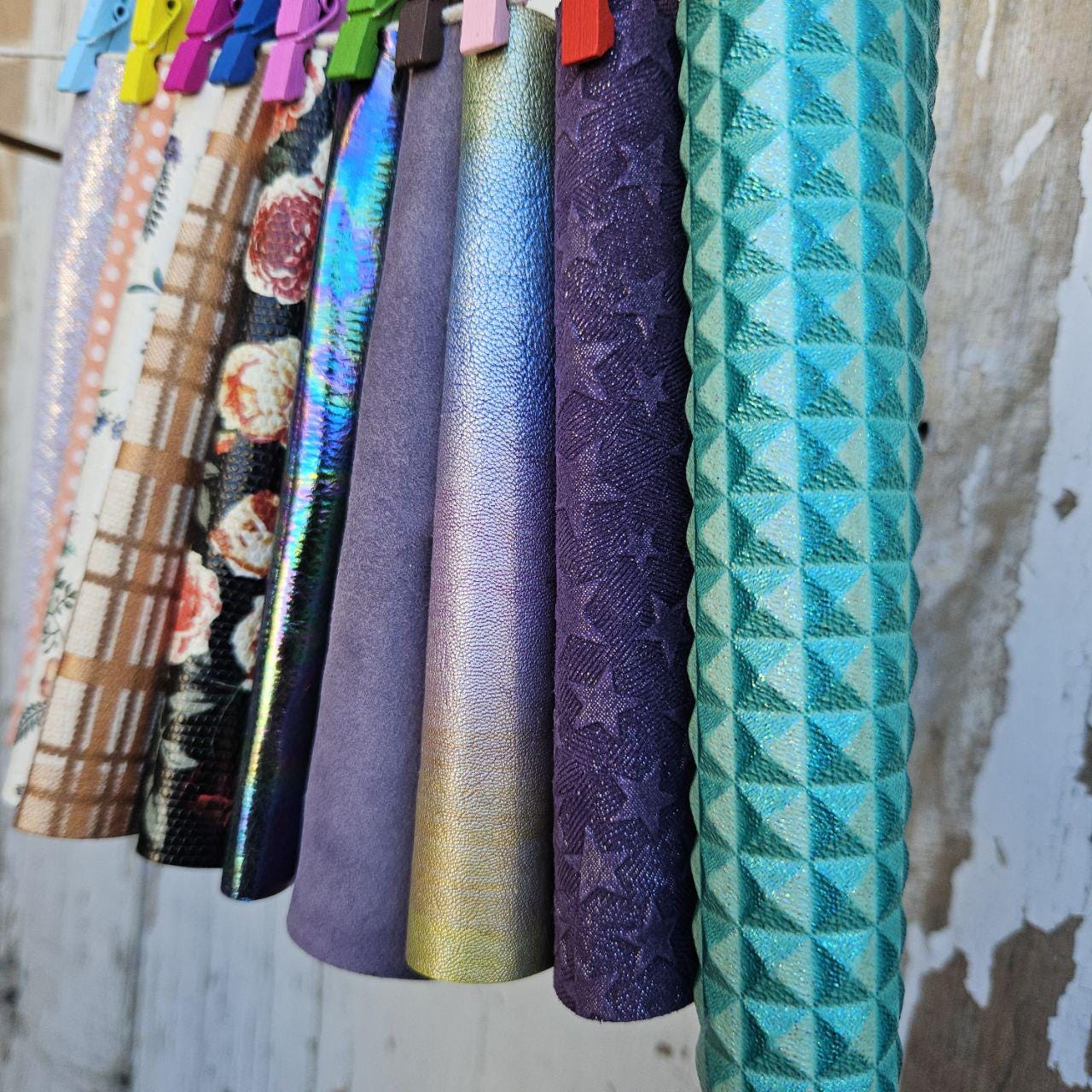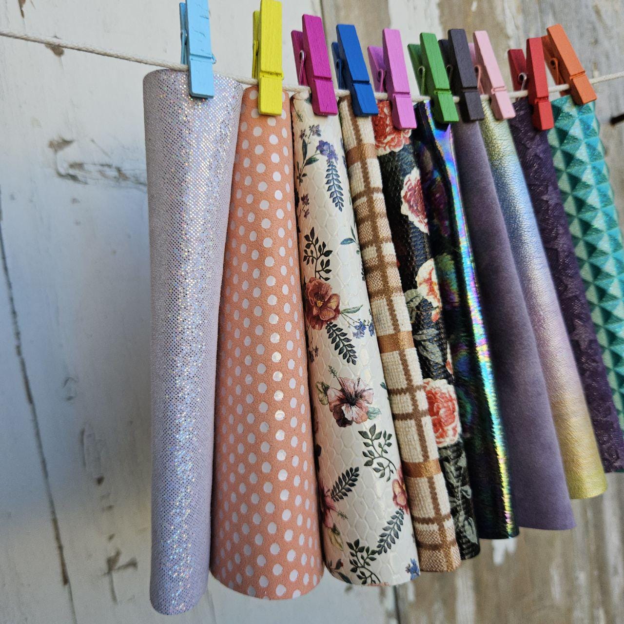 Gorgeous fancy leather pieces for lovers of multicolor and abstract textures as polka dots, flowers, stars, holographic and solid colors for your creations!