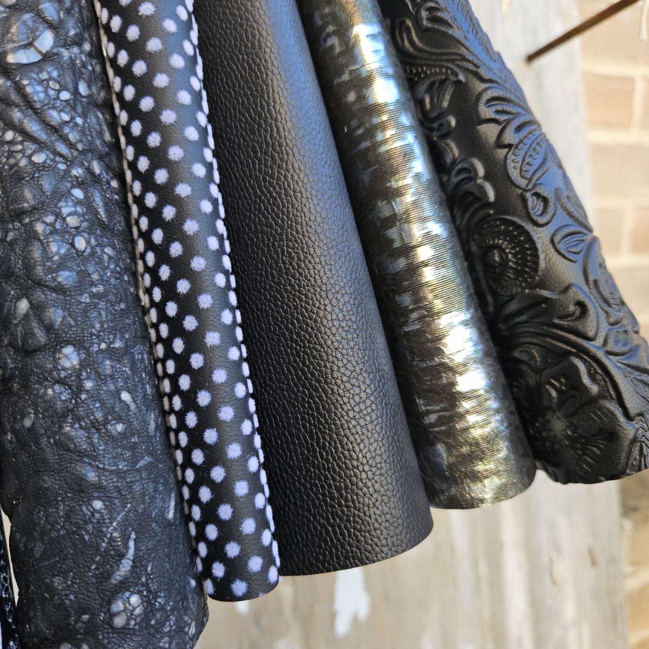 Gorgeous fancy leather pieces for lovers of gold, cream and brown tones and floral, holographic, geometric and abstract textures for your creations!