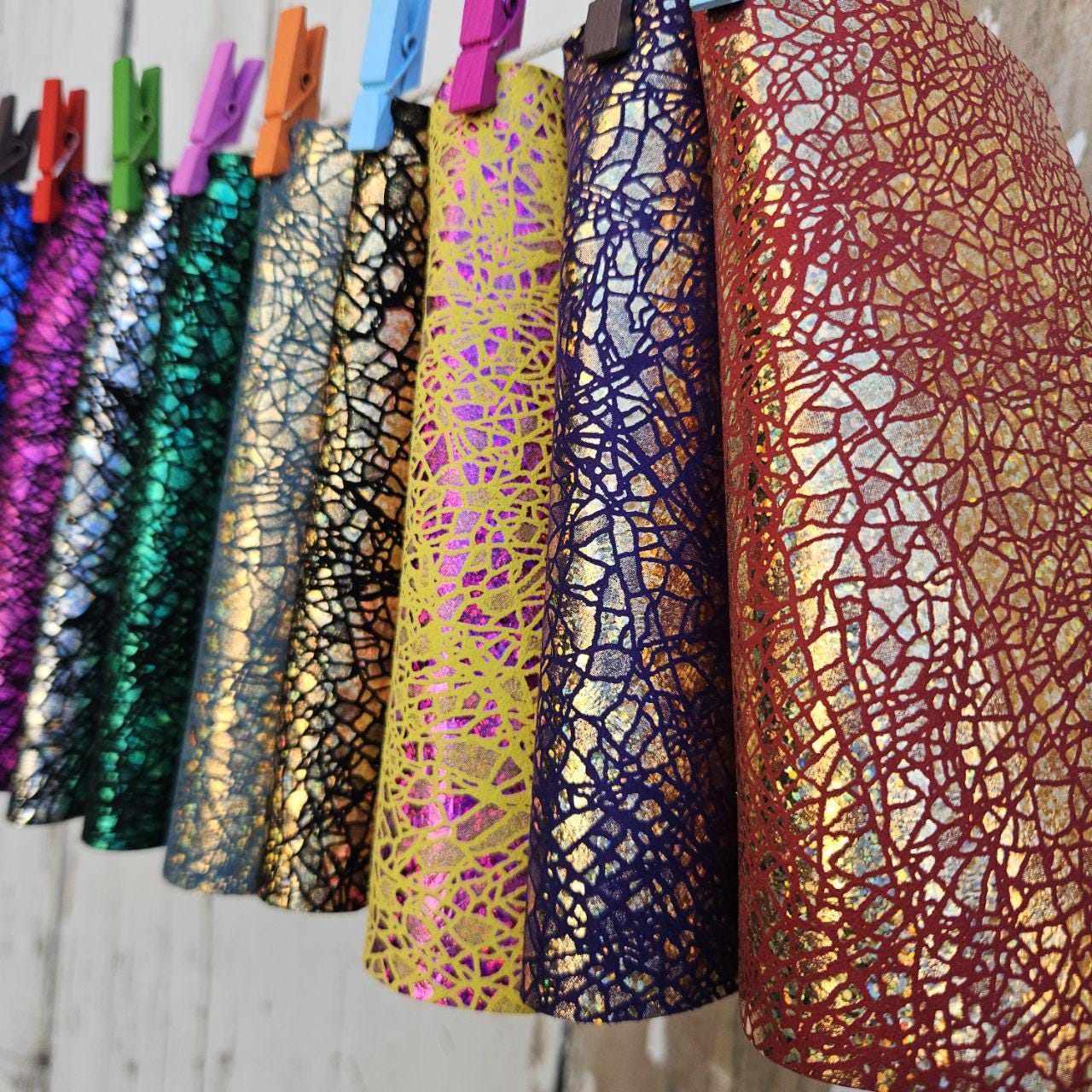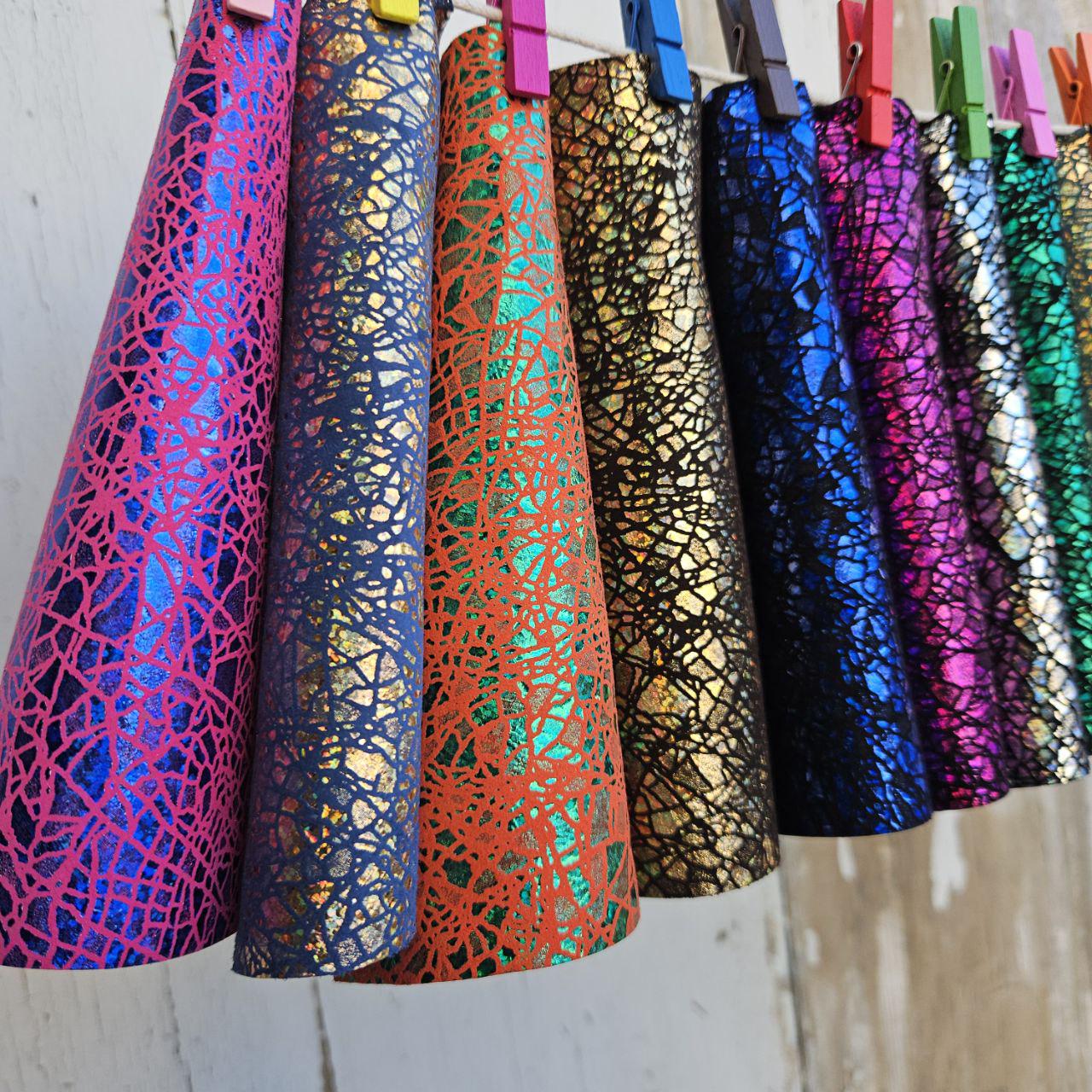 Gorgeous fancy leather scraps for lovers of multicolor metallic crackled textures!