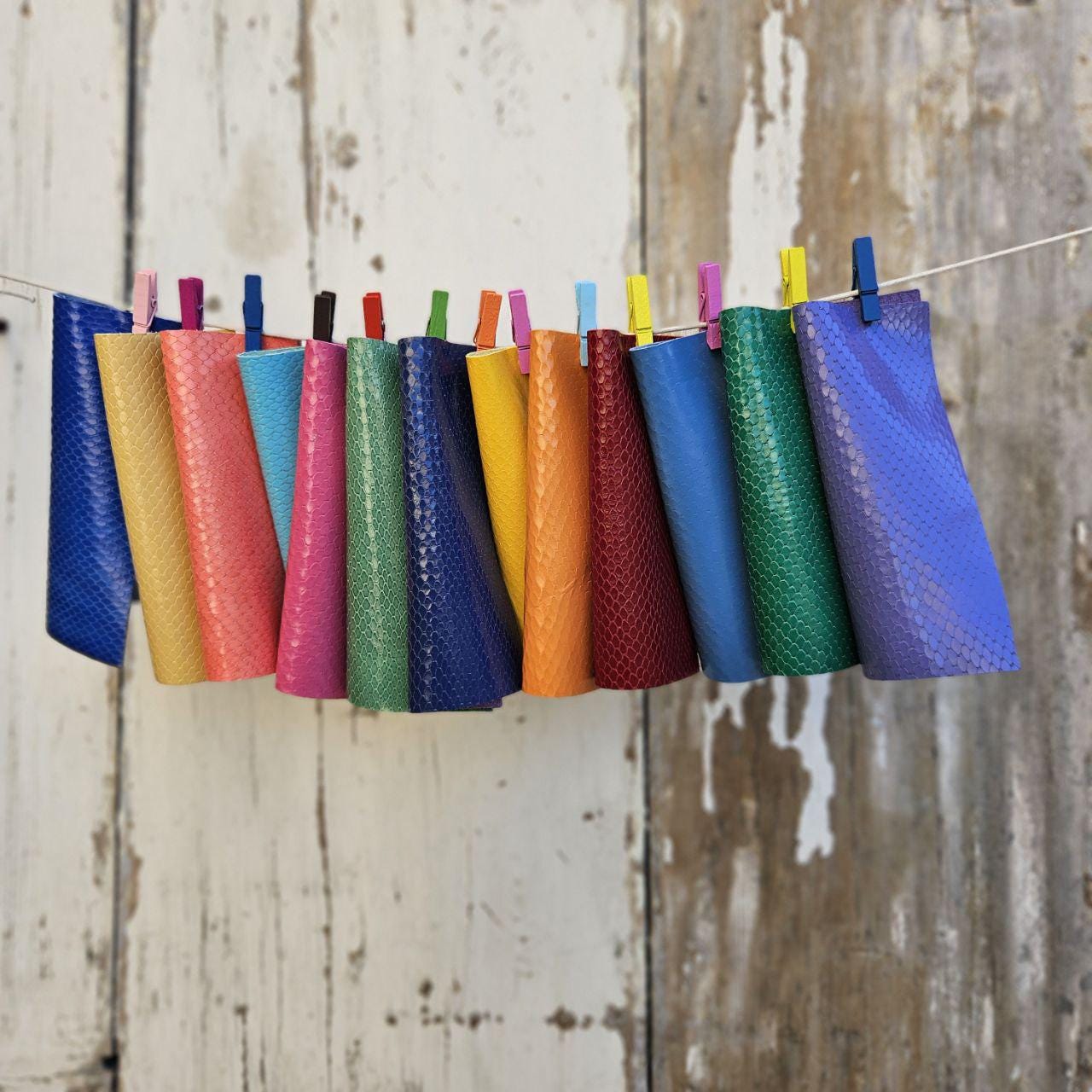 Gorgeous fancy leather scraps for lovers of multicolor python textures!